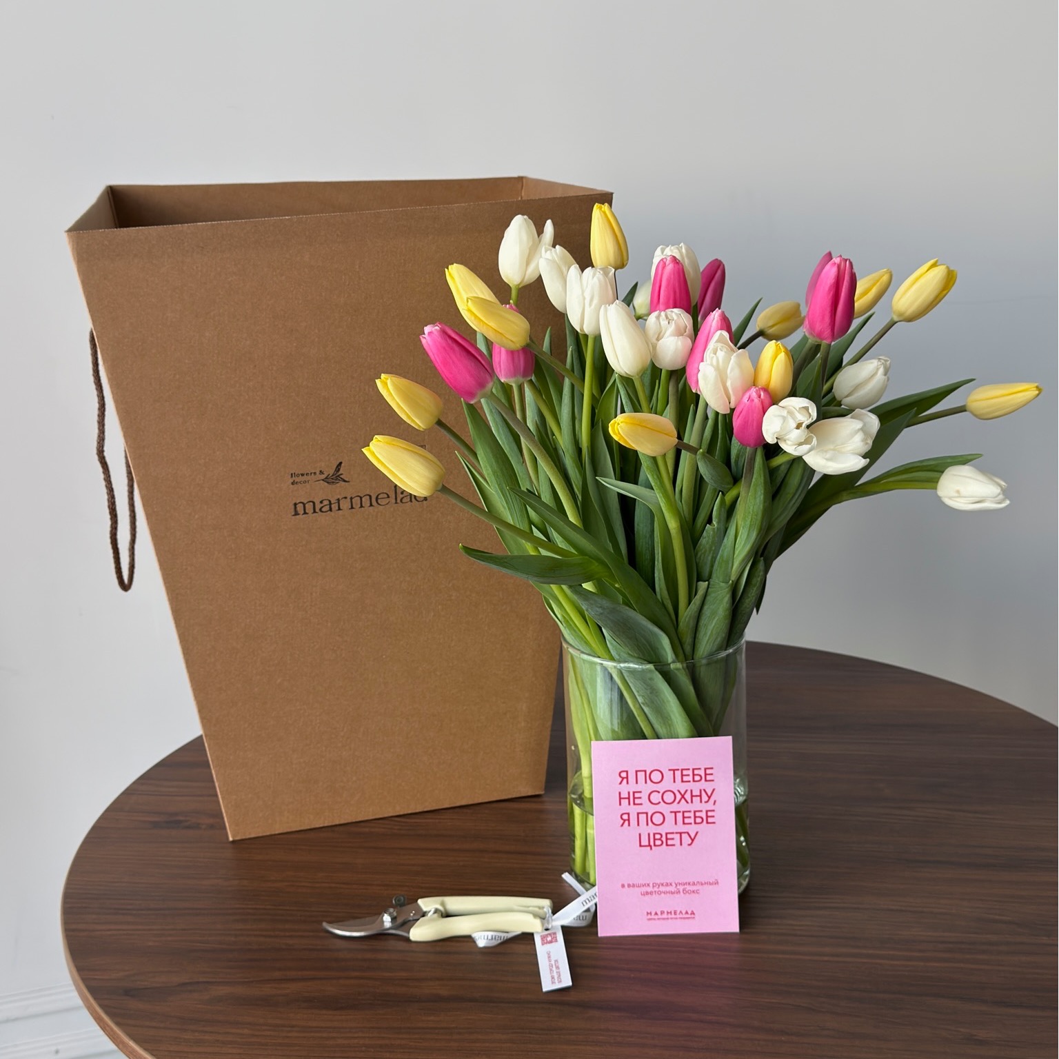 а заказу доступны - белые, красные, желтые, ярко и нежно розовые, фиолетовые, лимонные тюльпаны с крупным бутоном от 6см