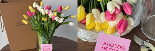 Проверка качества осуществляется в момент передачи букета - если во время вручения цветы будут несвежими - мы заменим букет.