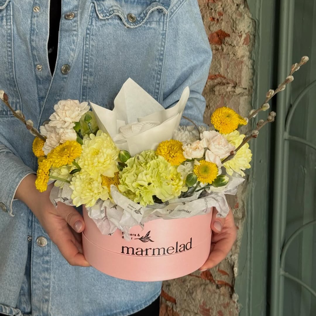 Вы можете собрать свой вариант — добавить к цветам декор и сладкие детали или выбрать готовое решение 🤍