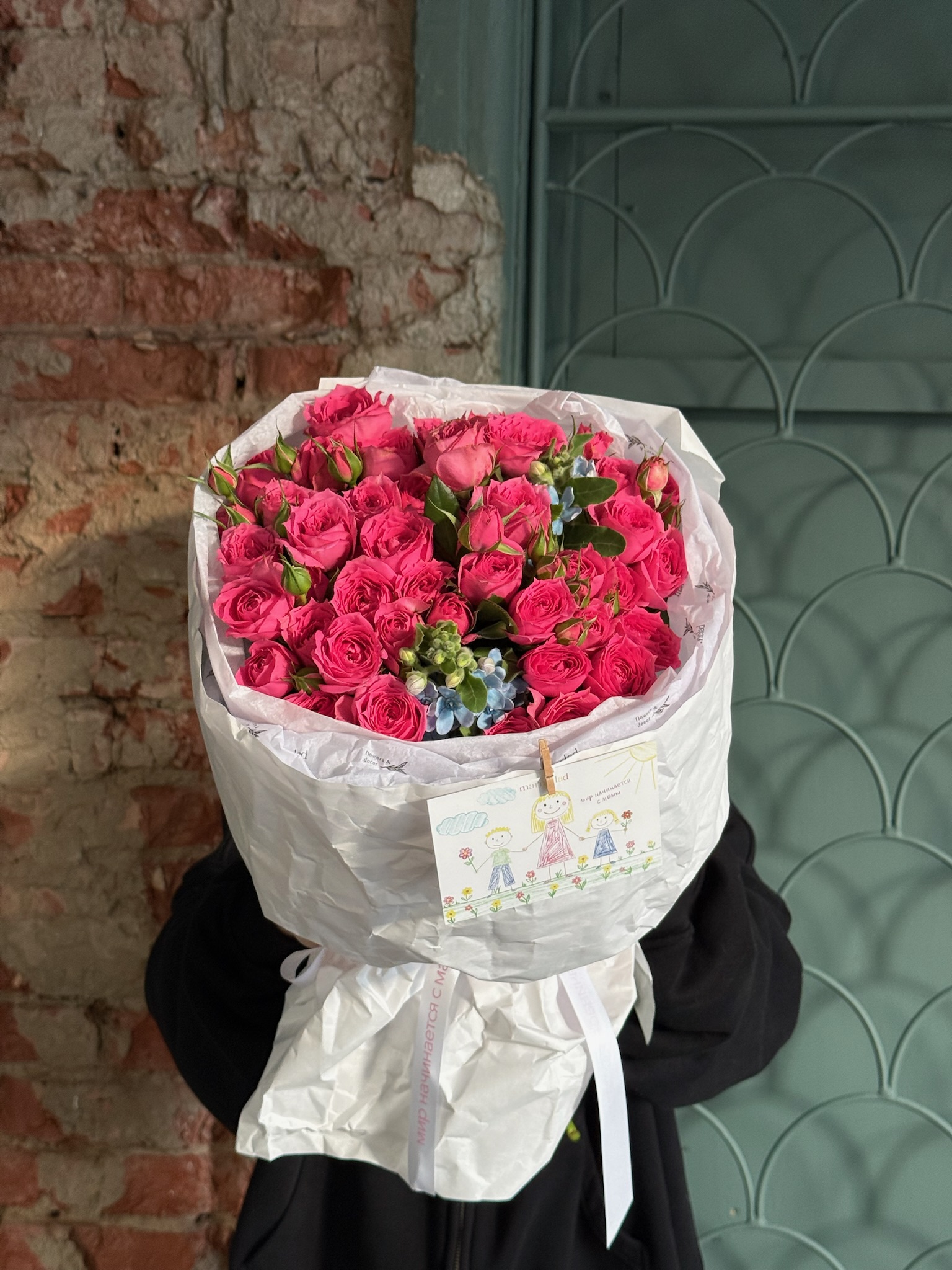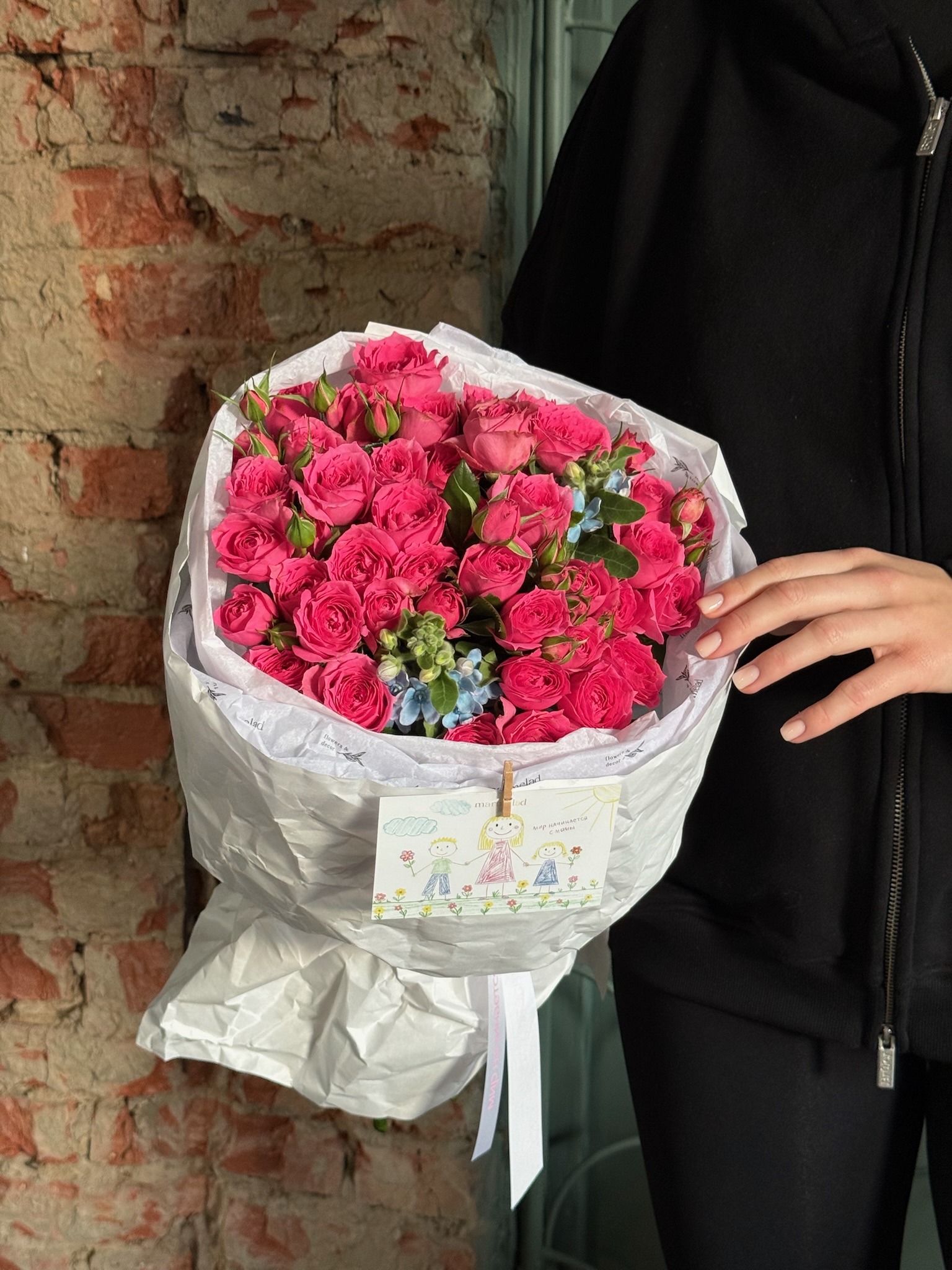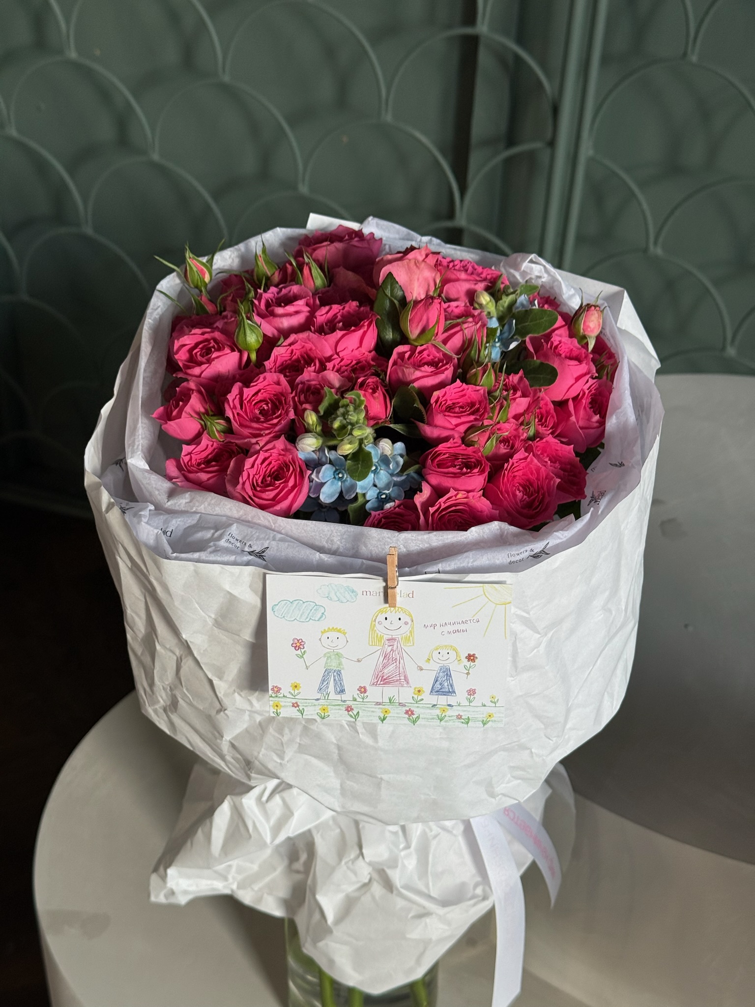 Мы пришлем вам фото готового букета, чтобы вы были уверены в своем заказе. Мы всегда стараемся чтобы фото не искажало размер и цвет