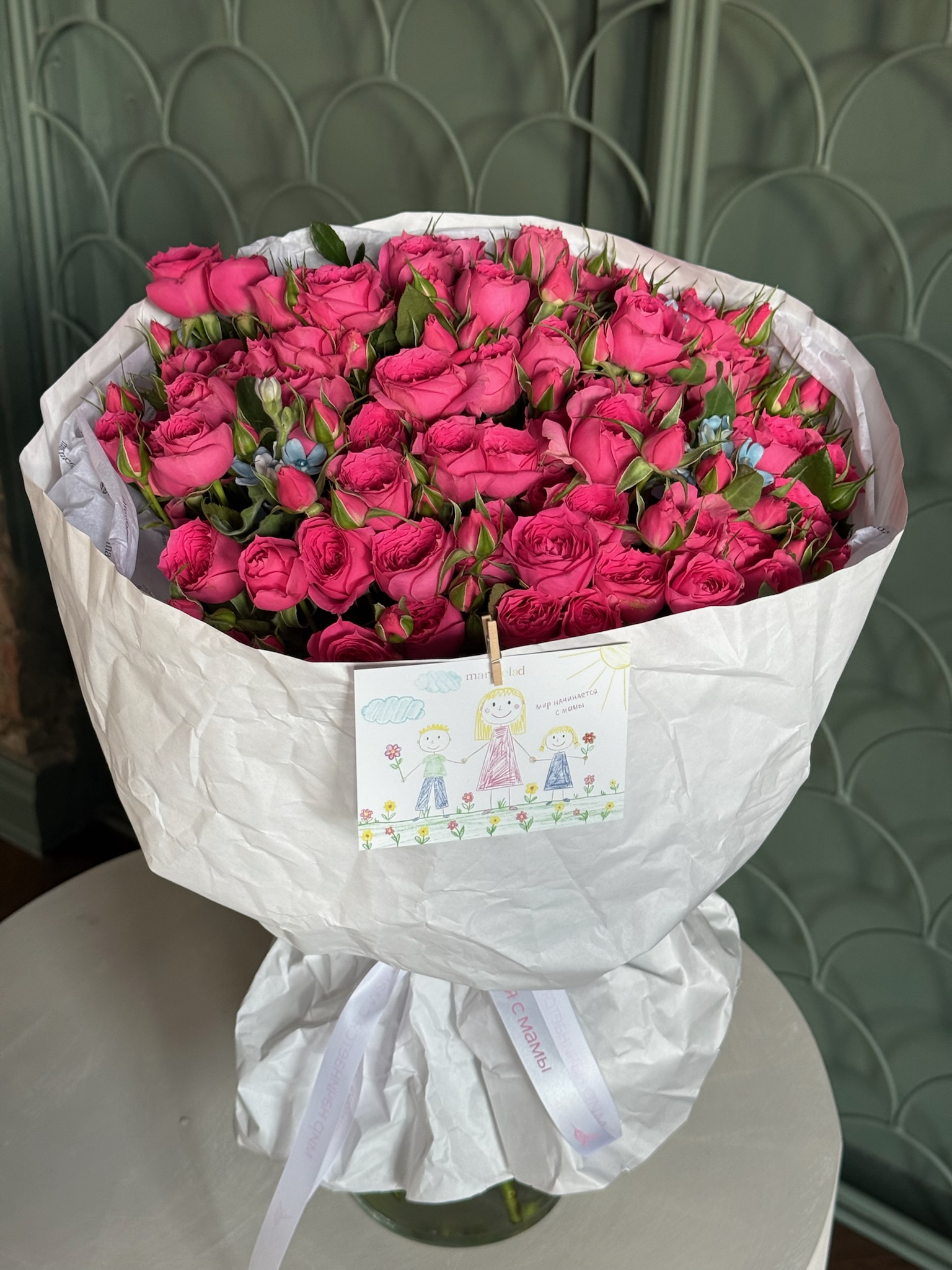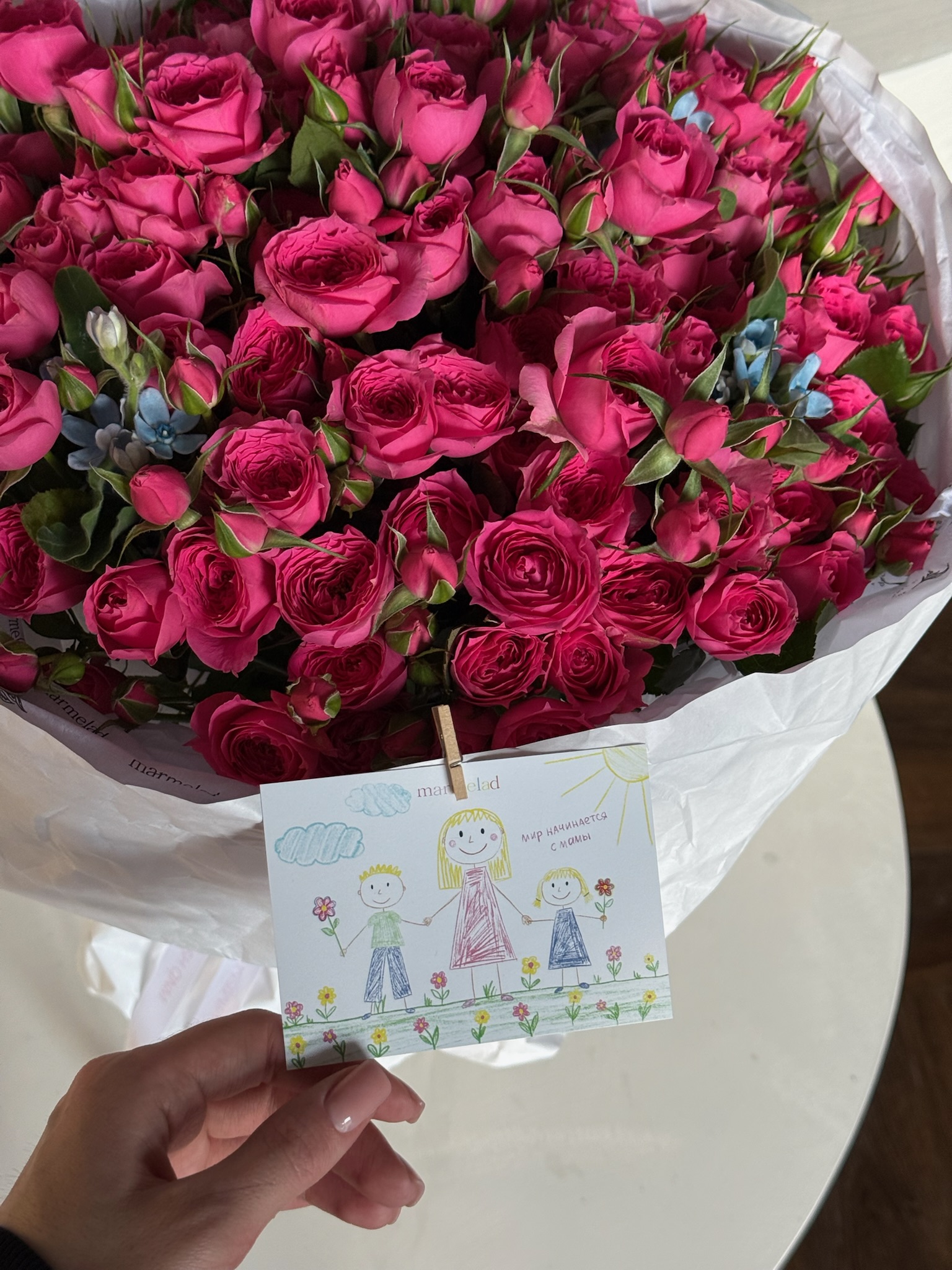 Мы пришлем вам фото готового букета, чтобы вы были уверены в своем заказе. Мы всегда стараемся чтобы фото не искажало размер и цвет