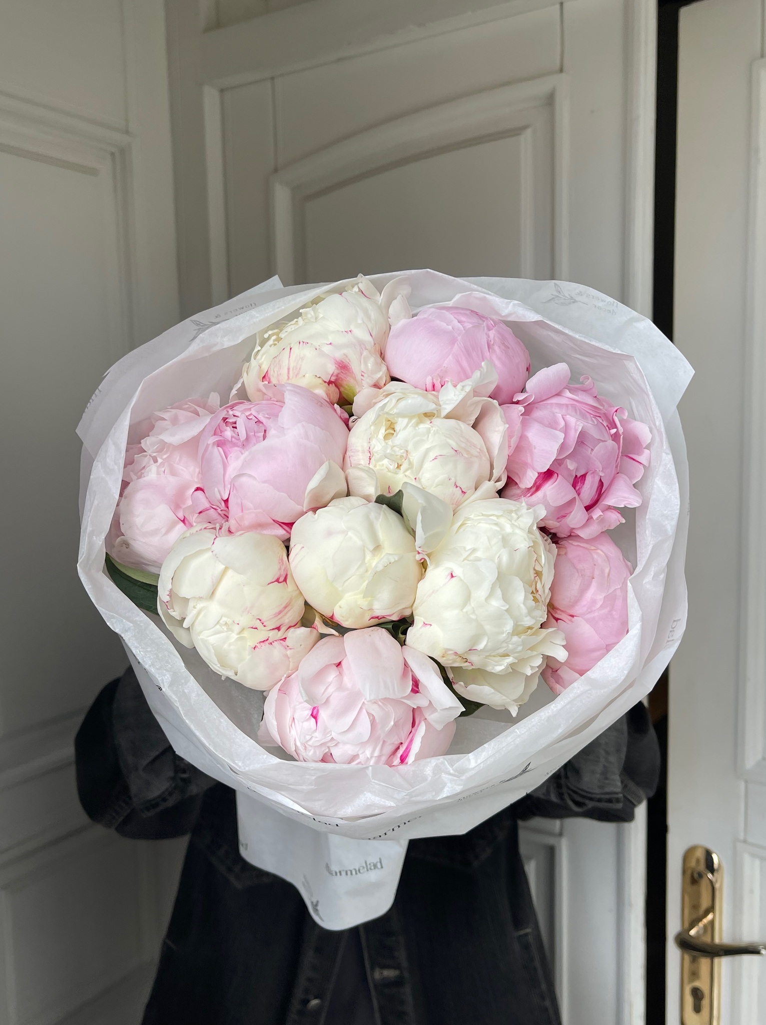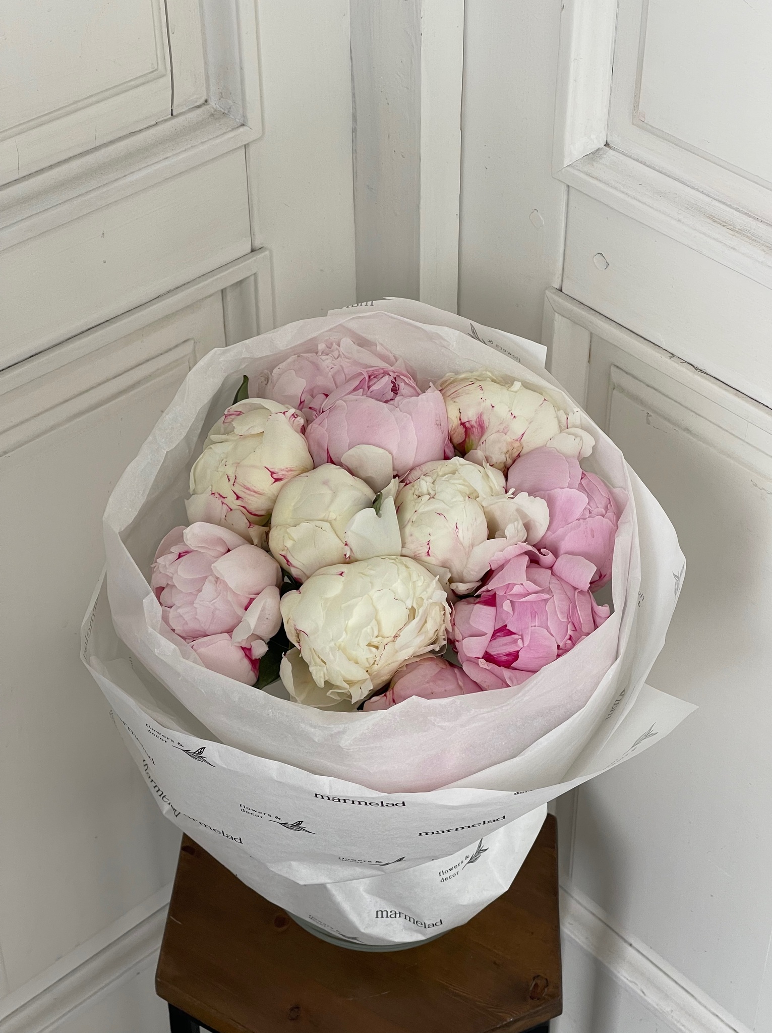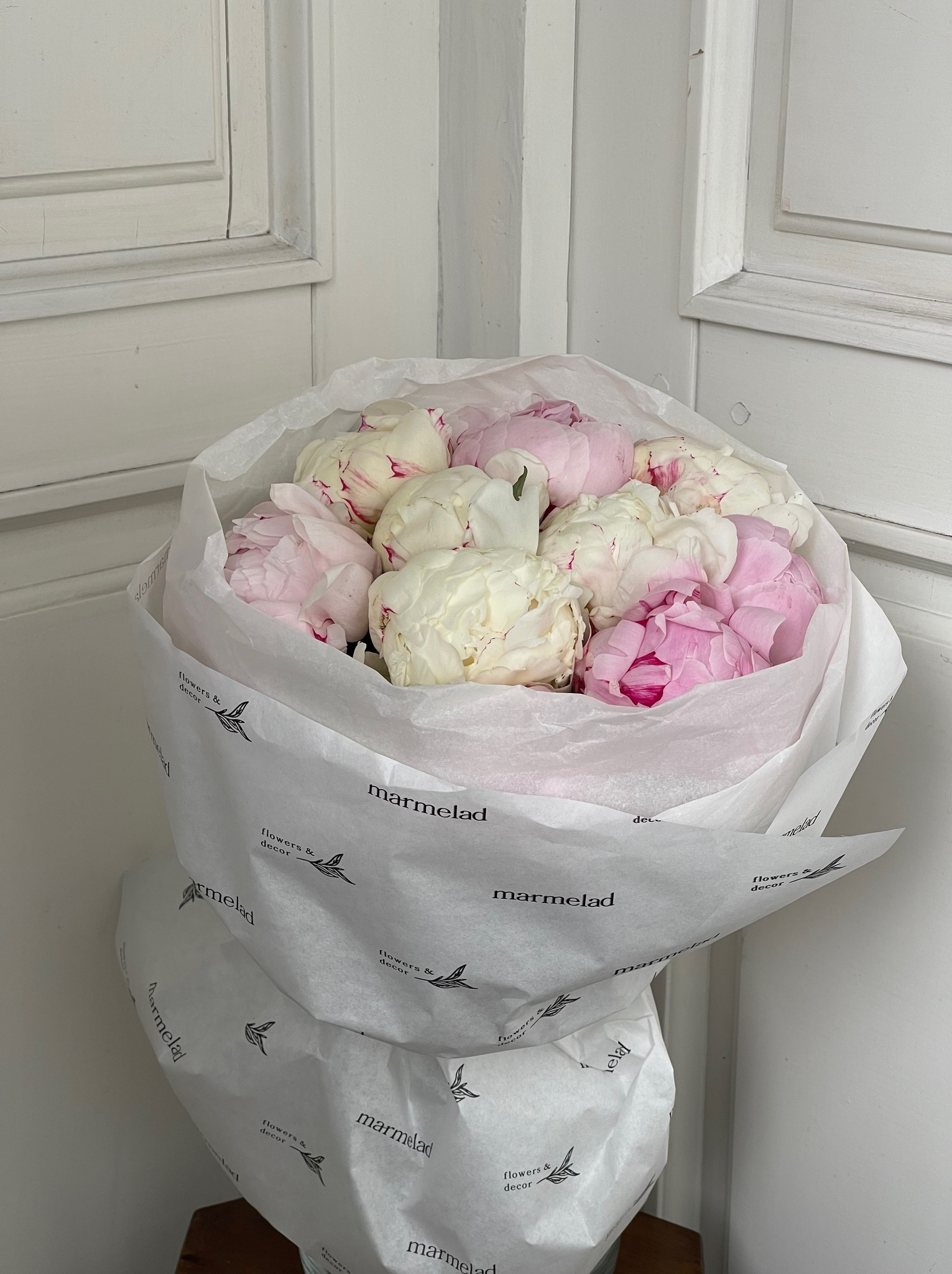 Букет 11шт белых и розовых пионов