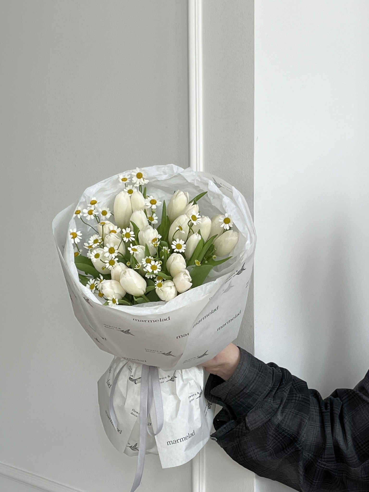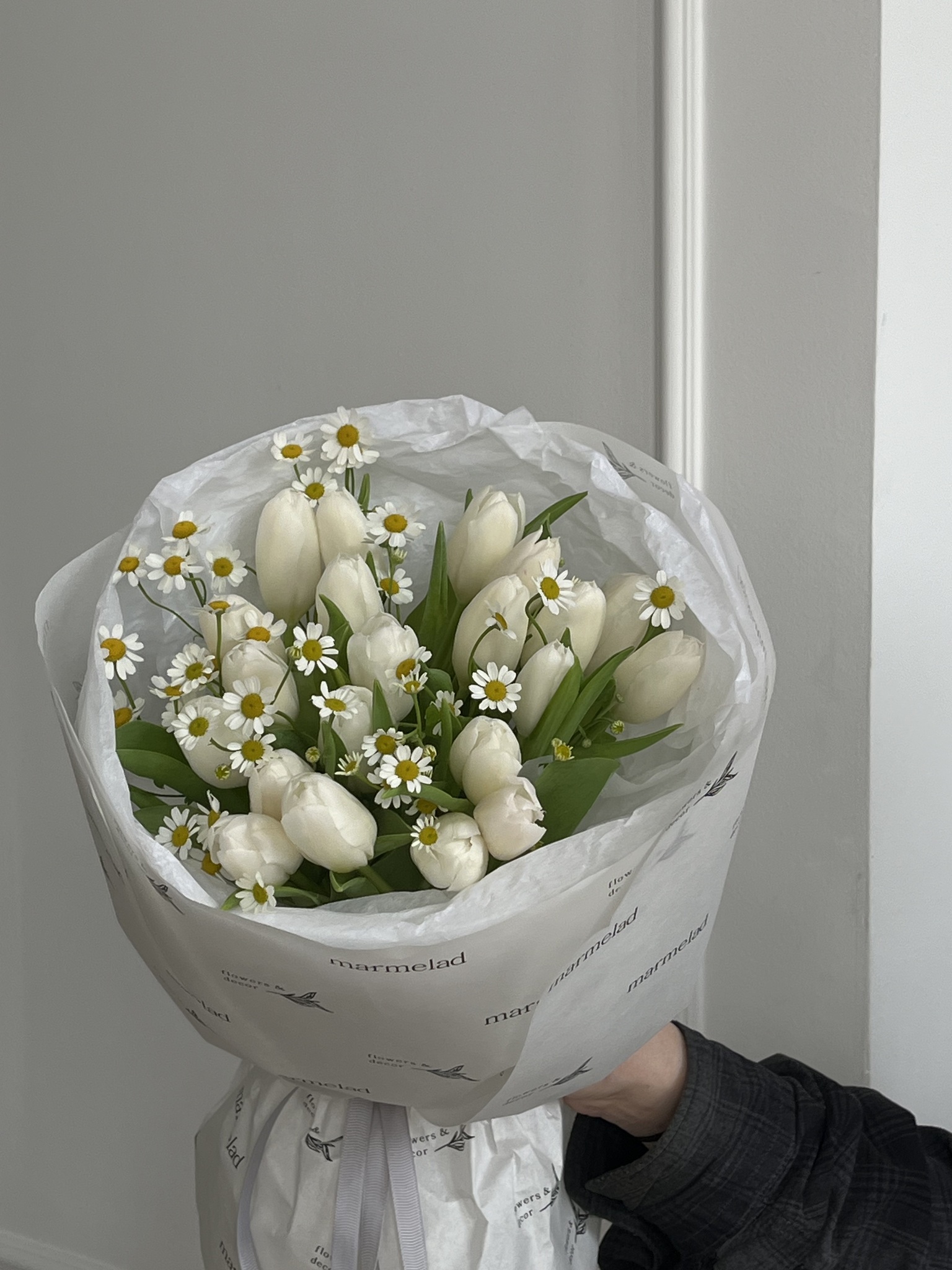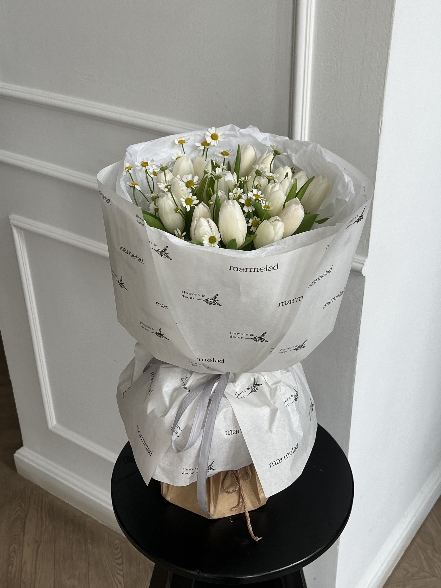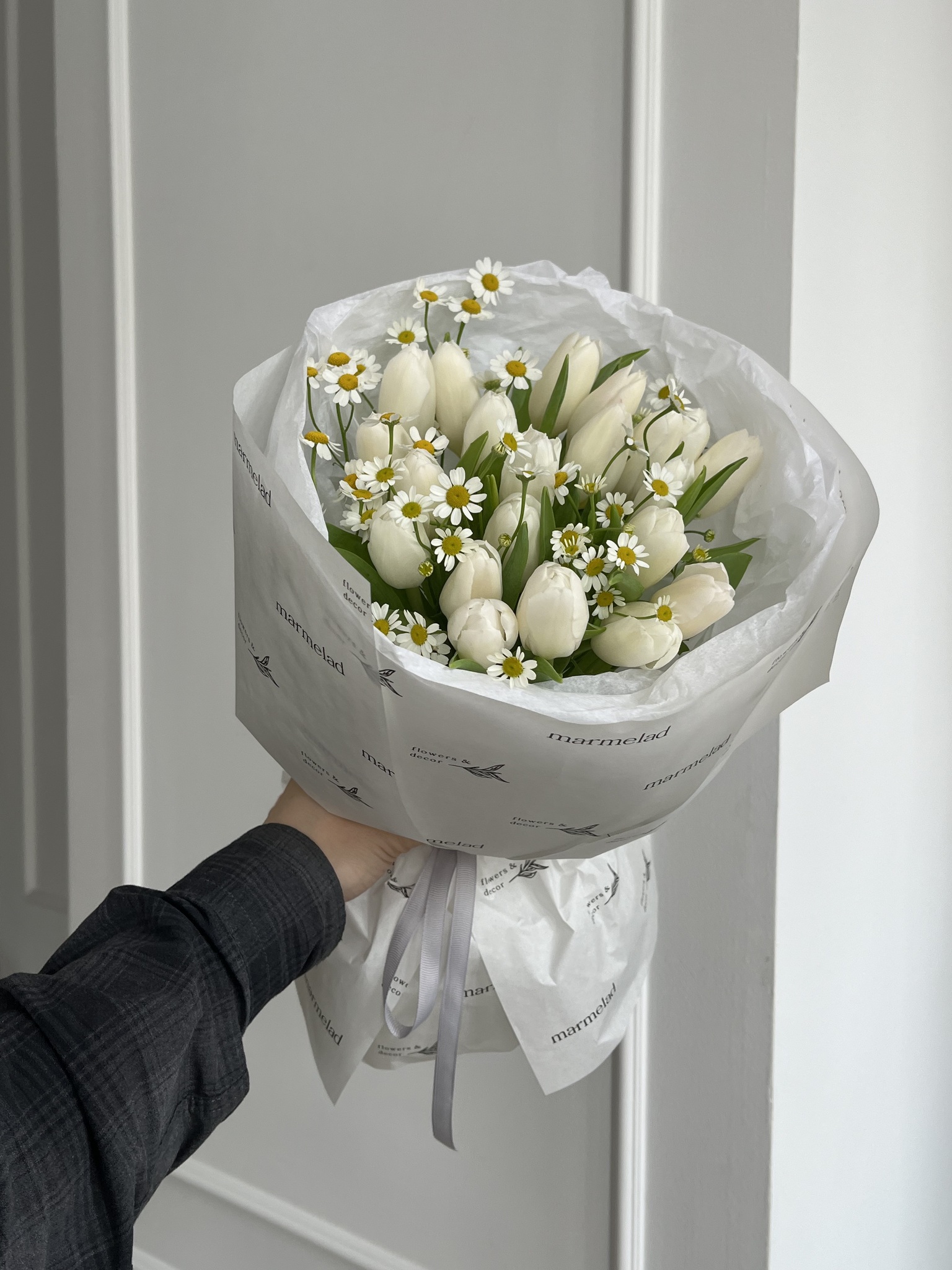 Мы пришлем вам фото готового букета, чтобы вы были уверены в своем заказе. Мы всегда стараемся чтобы фото не искажало размер и цвет