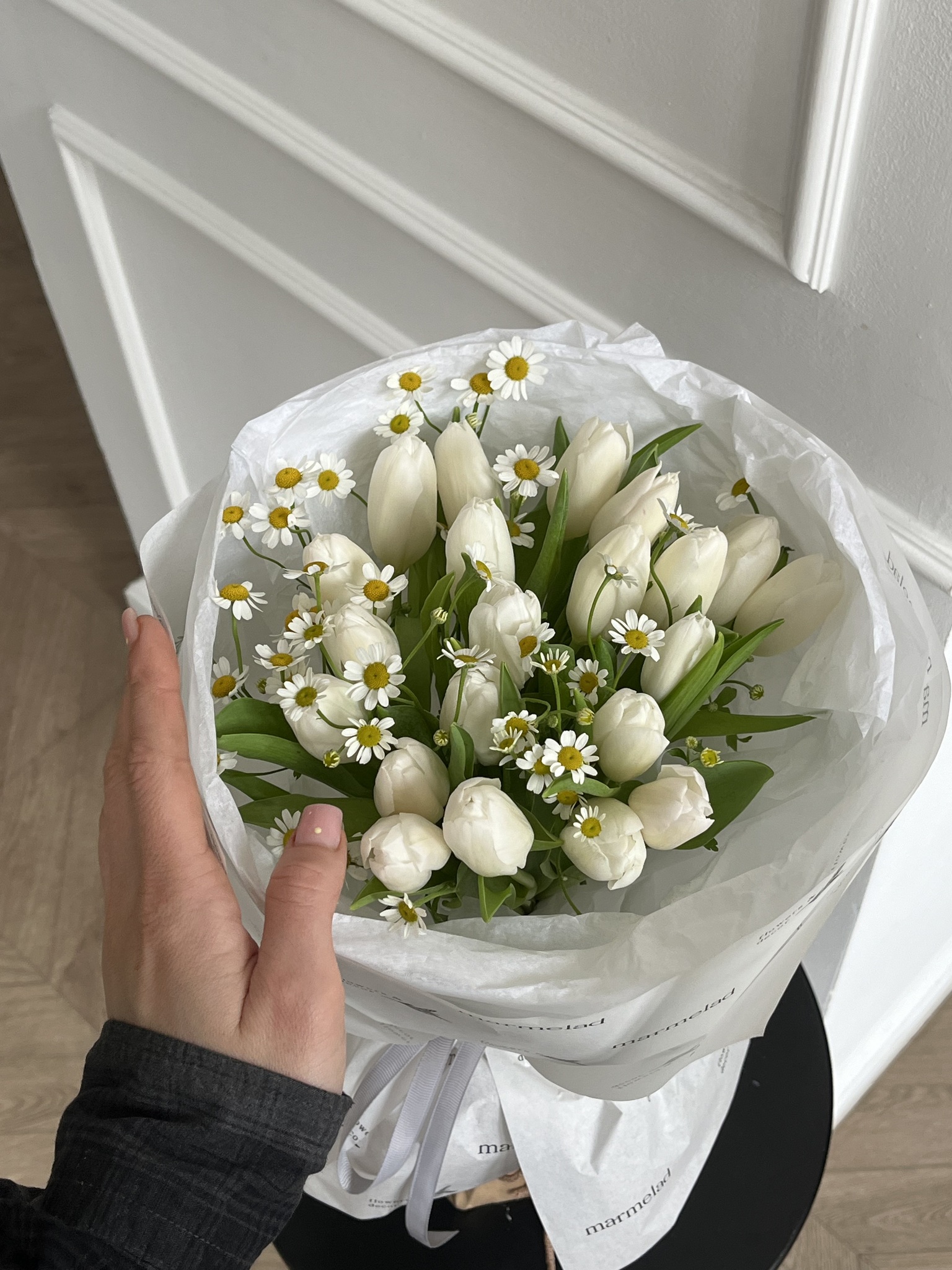• 2 раза в неделю мы получаем свежие поставки цветов напрямую с голландских аукционов, так как очень трепетно и внимательно относимся к качеству.