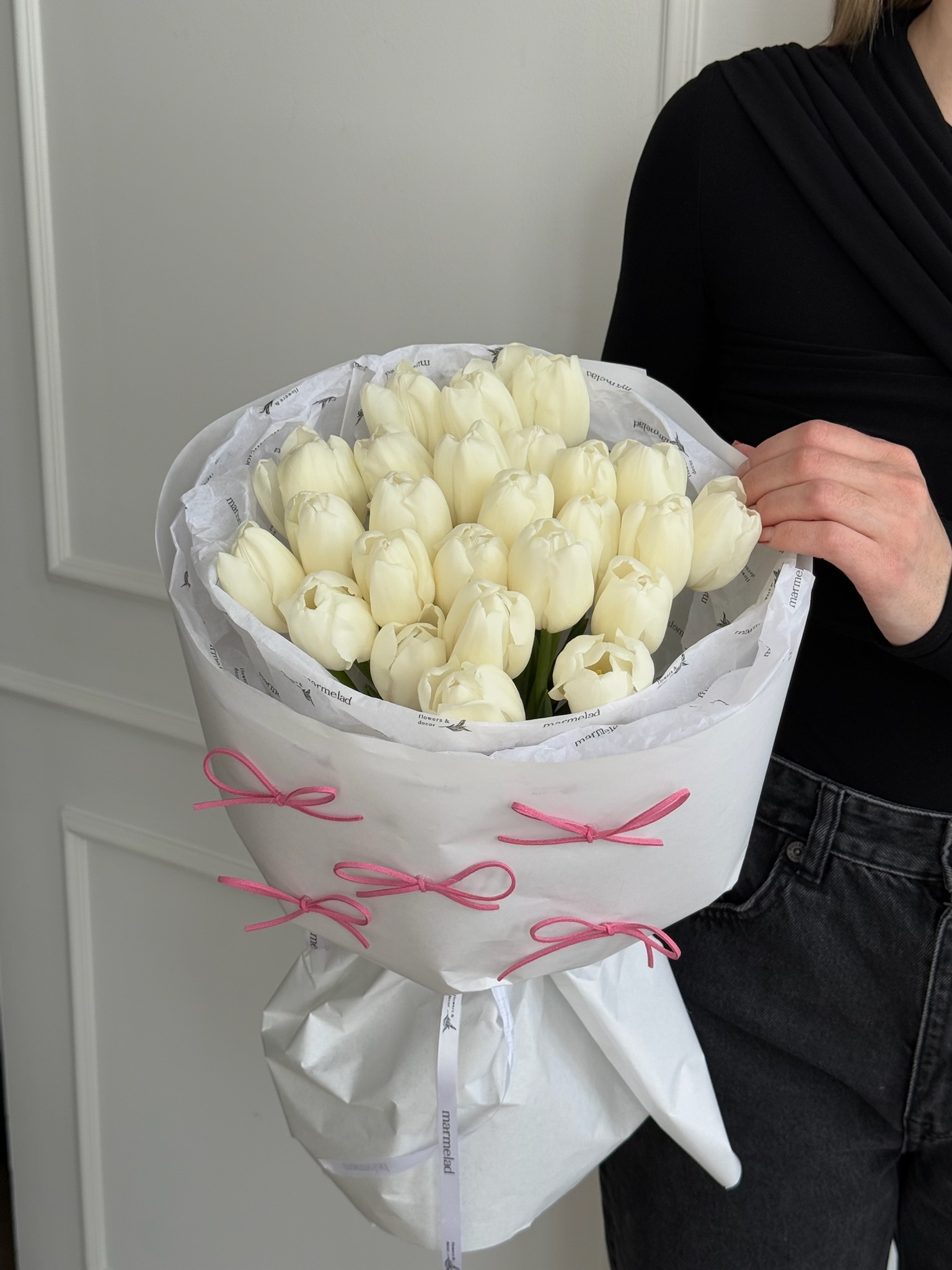 • 2 раза в неделю мы получаем свежие поставки цветов напрямую с голландских аукционов, так как очень трепетно и внимательно относимся к качеству.