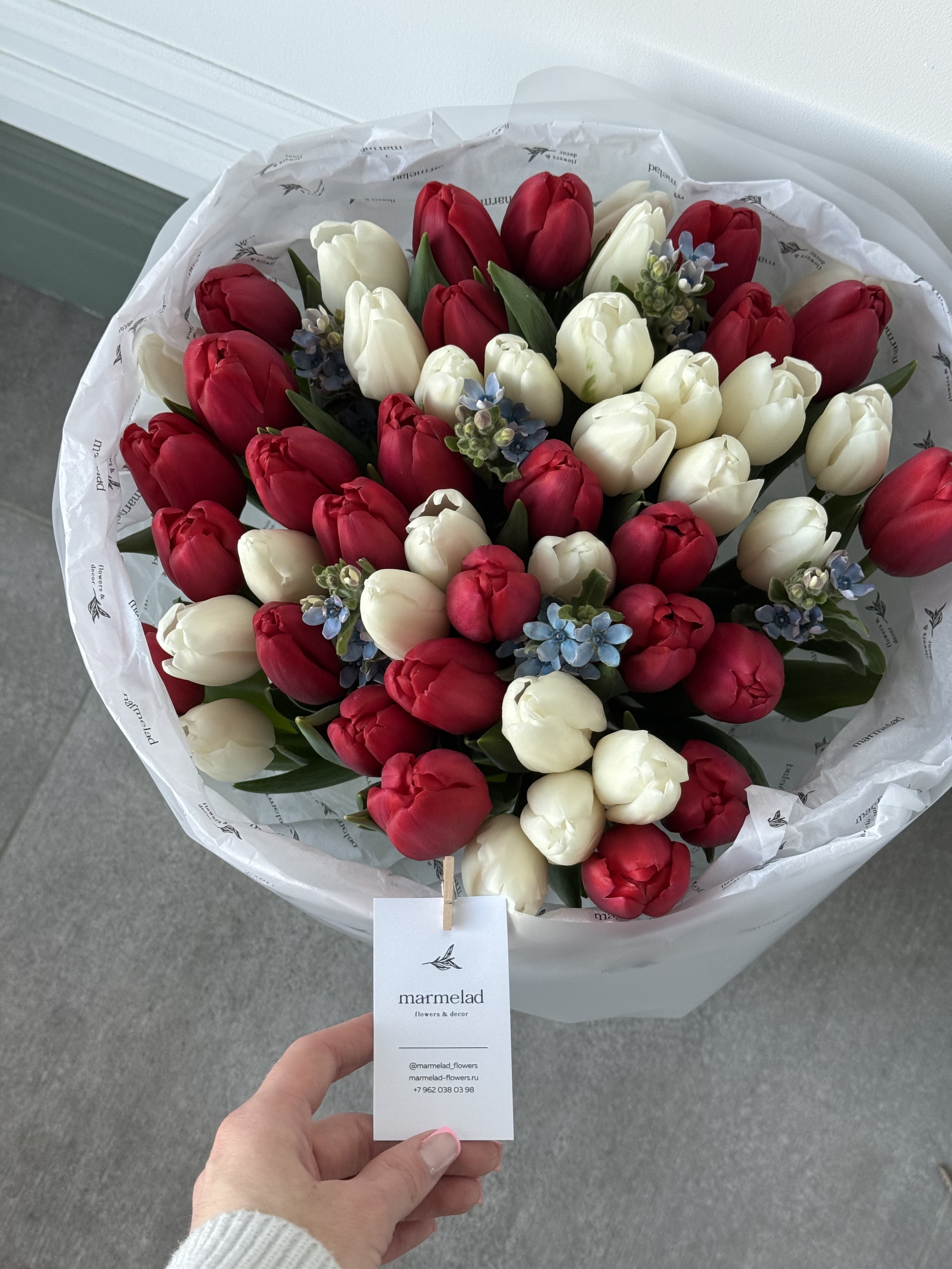 Мы пришлем вам фото готового букета, чтобы вы были уверены в своем заказе. Мы всегда стараемся чтобы фото не искажало размер и цвет