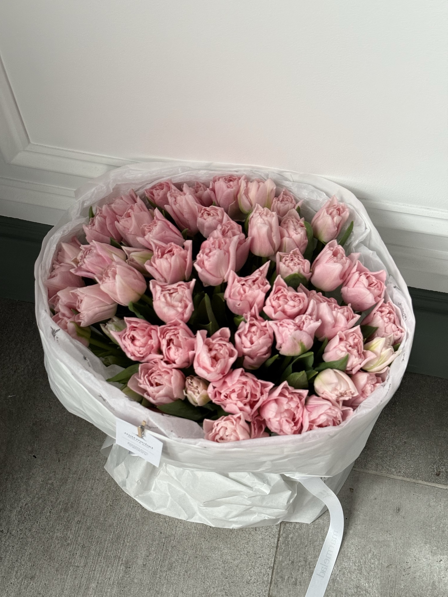 Букет из 51 нежно-розового пионовидного тюльпана
