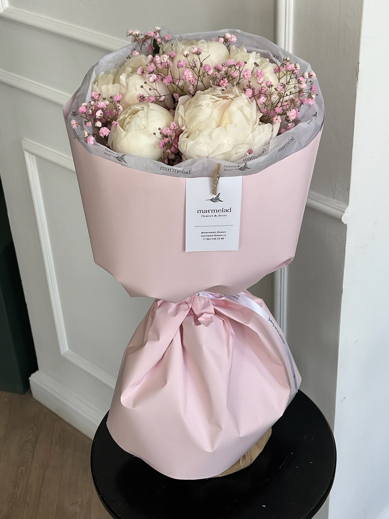 Мы пришлем вам фото готового букета, чтобы вы были уверены в своем заказе. Мы всегда стараемся чтобы фото не искажало размер и цвет