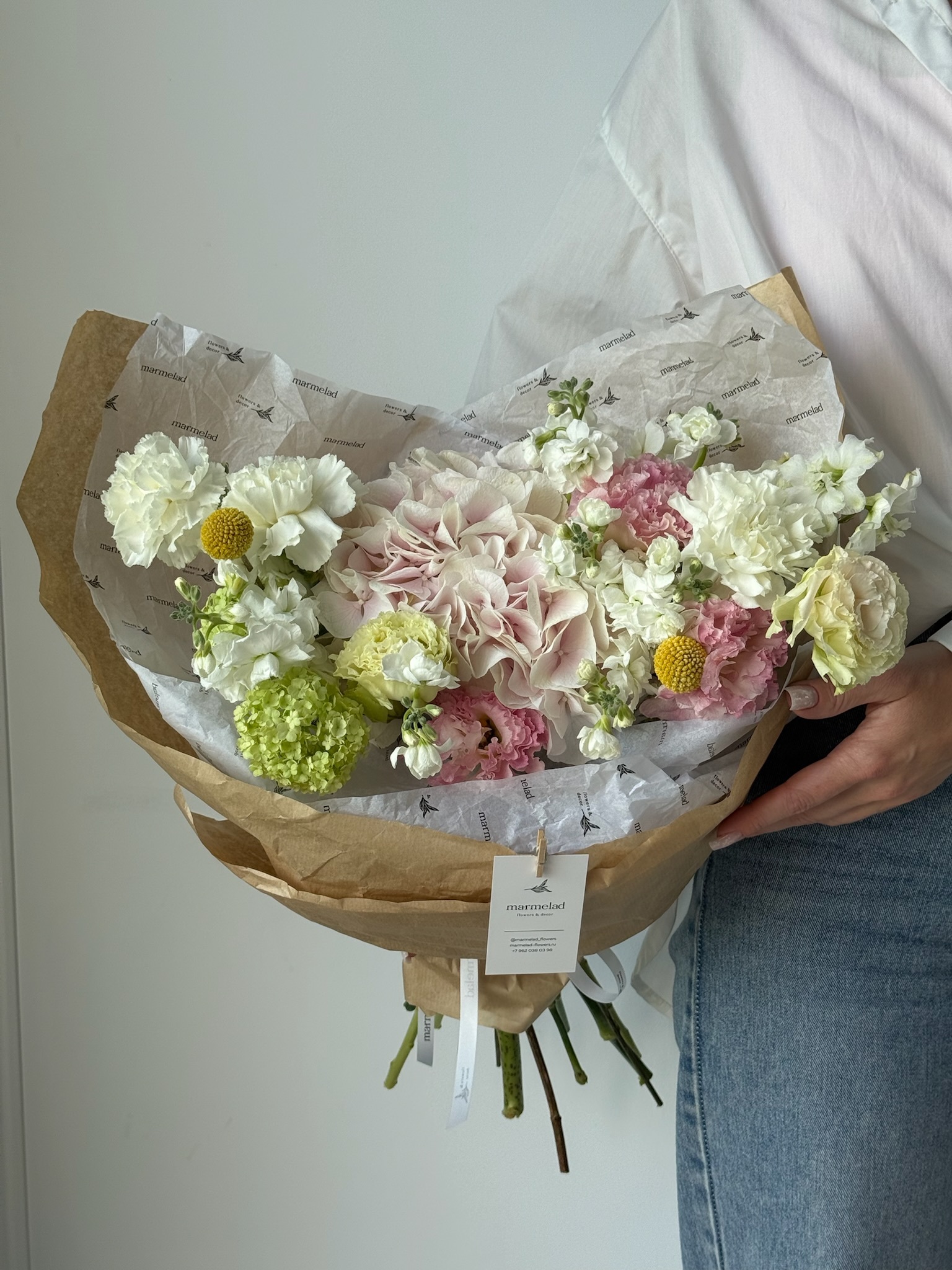 Мы пришлем вам фото готового букета, чтобы вы были уверены в своем заказе. Мы всегда стараемся чтобы фото не искажало размер и цвет