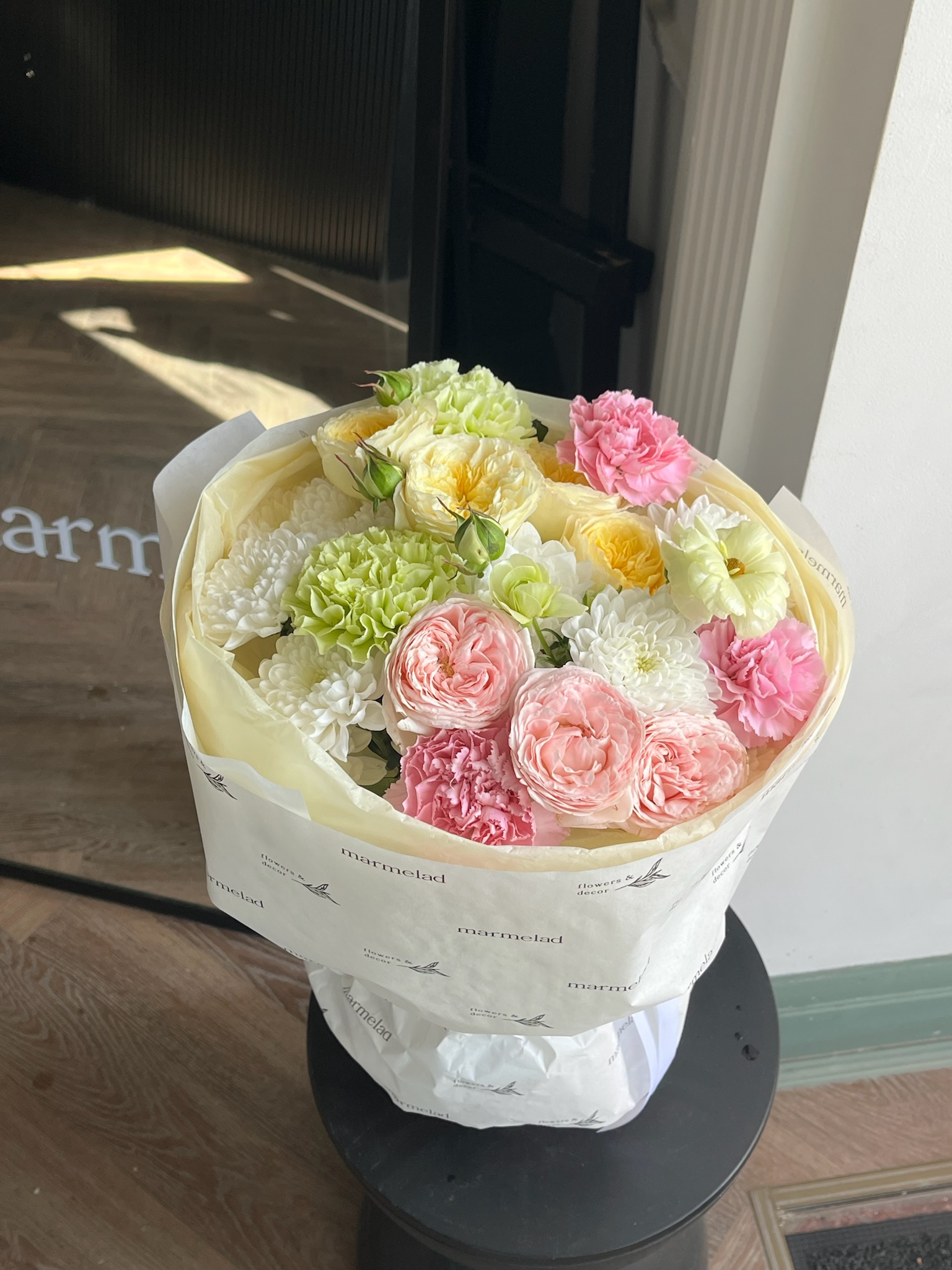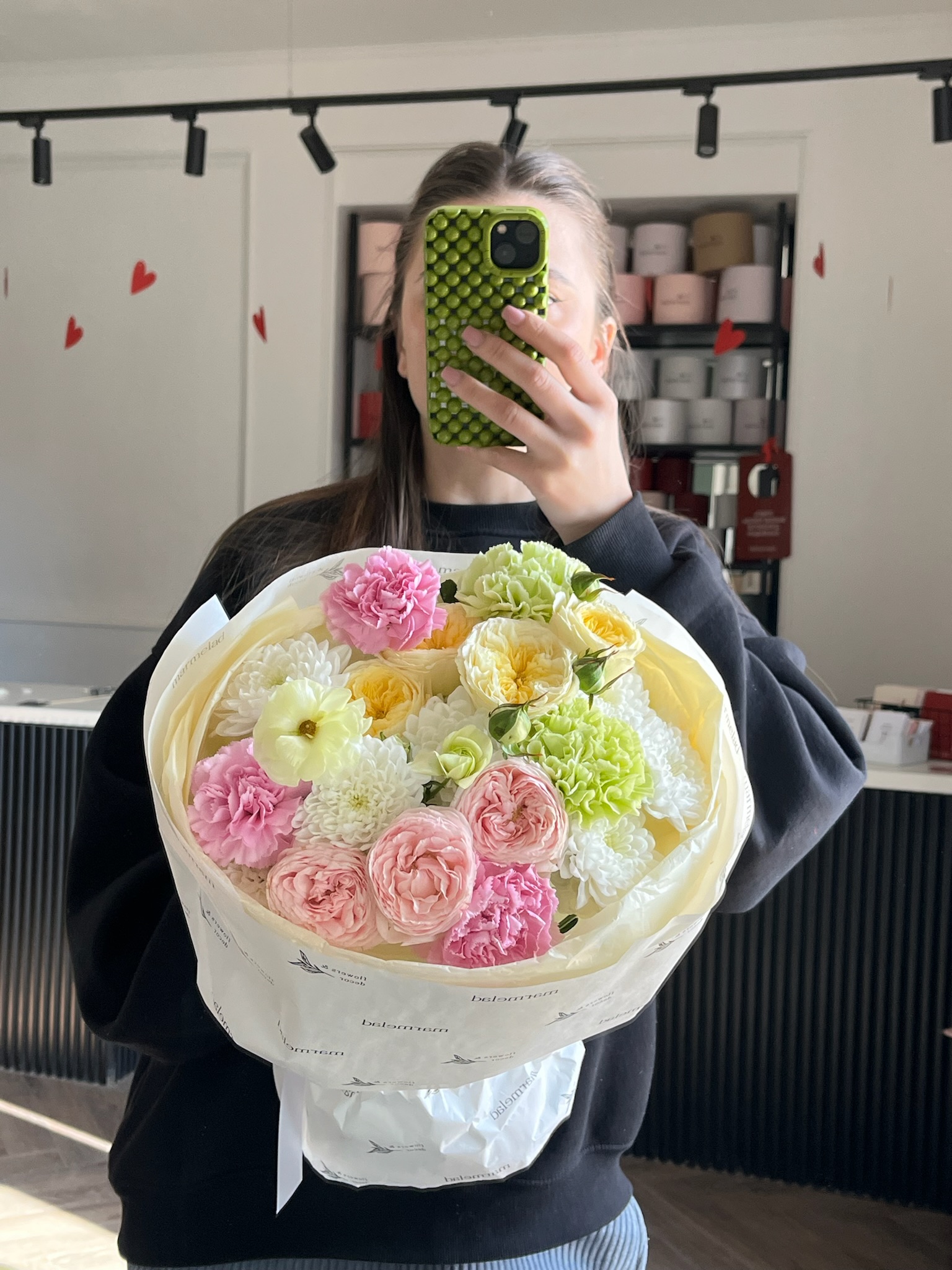 Мы пришлем вам фото готового букета, чтобы вы были уверены в своем заказе. Мы всегда стараемся чтобы фото не искажало размер и цвет