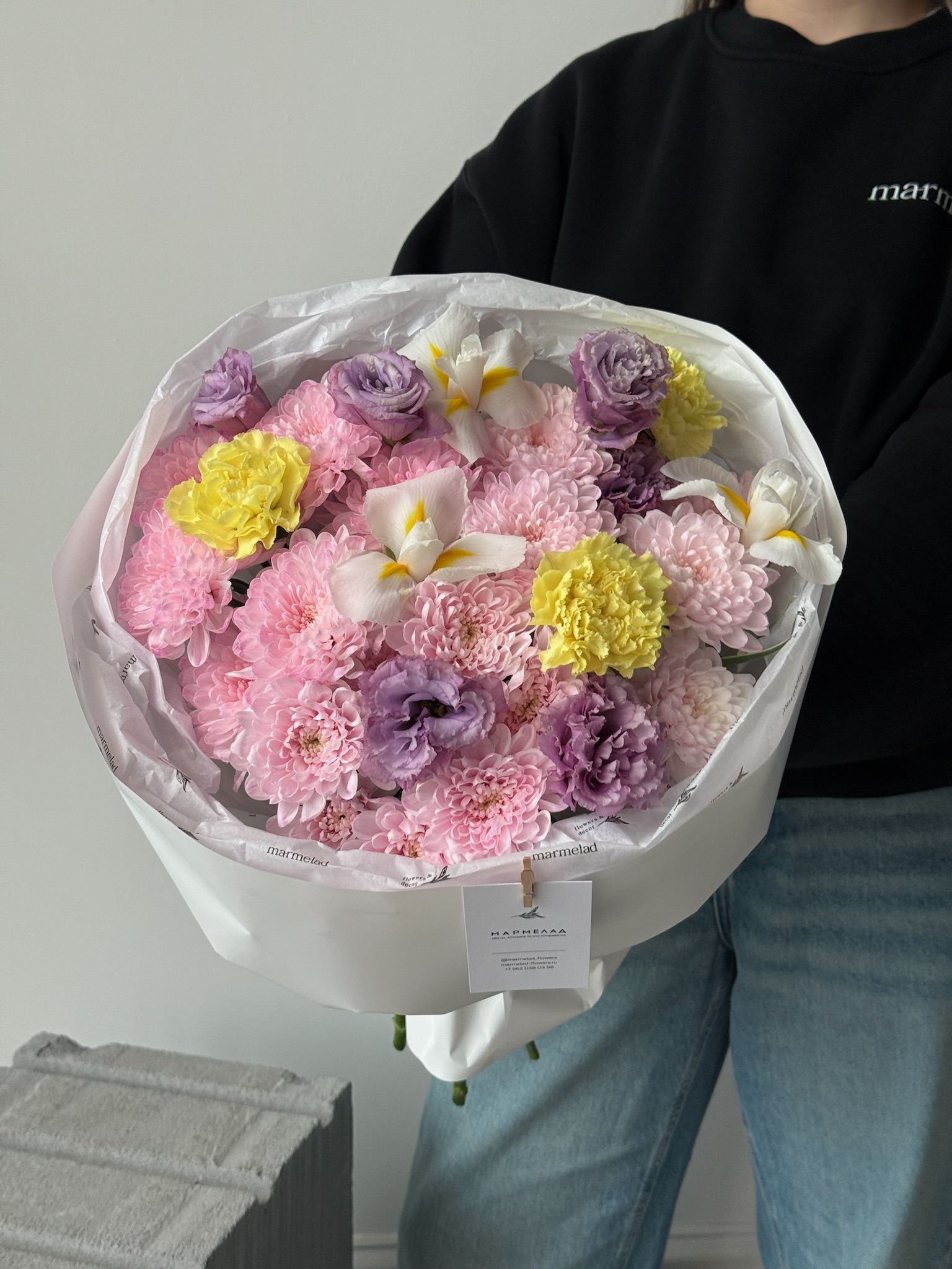 Мы пришлем вам фото готового букета, чтобы вы были уверены в своем заказе. Мы всегда стараемся чтобы фото не искажало размер и цвет