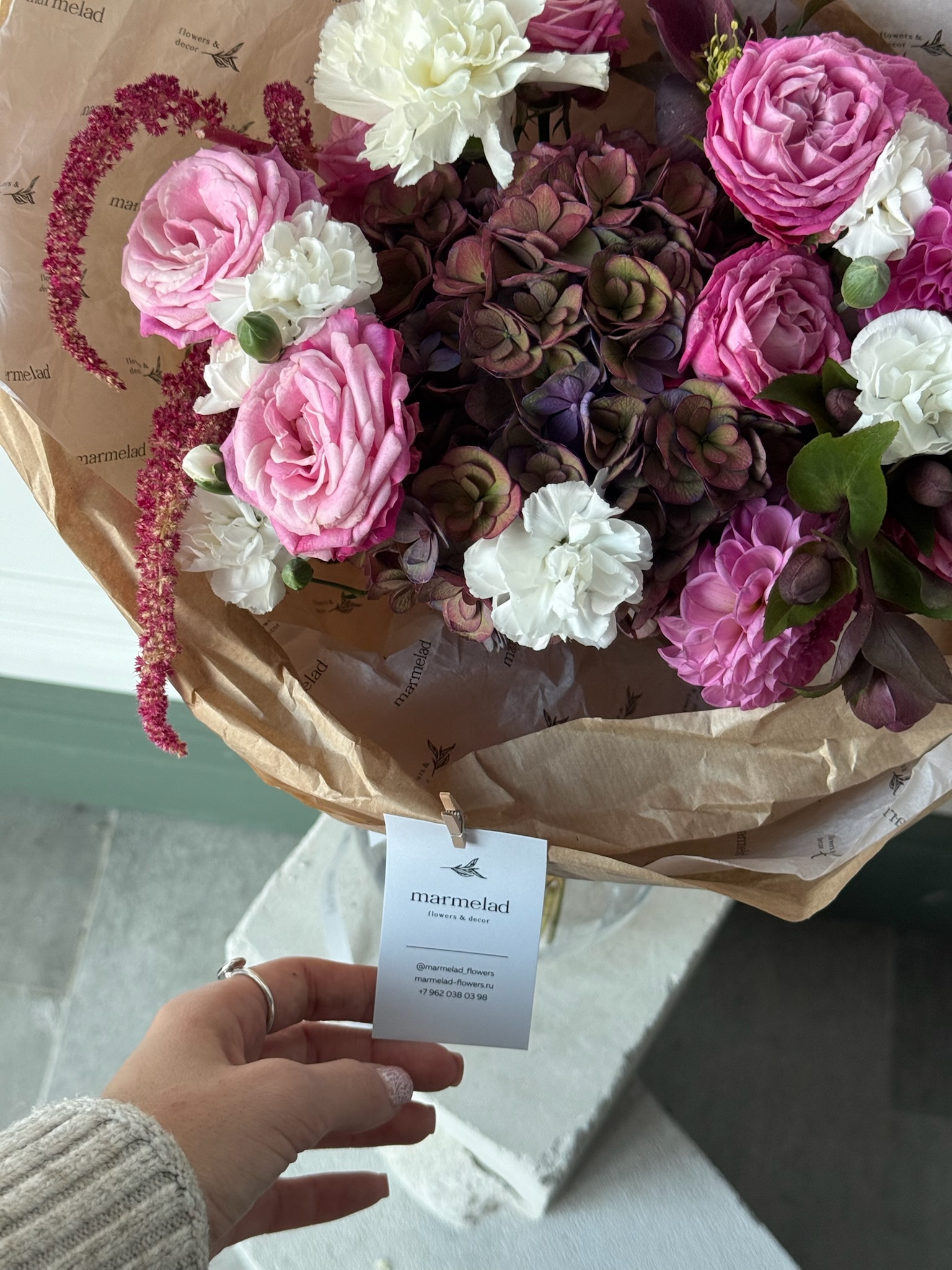 Мы пришлем вам фото готового букета, чтобы вы были уверены в своем заказе. Мы всегда стараемся чтобы фото не искажало размер и цвет