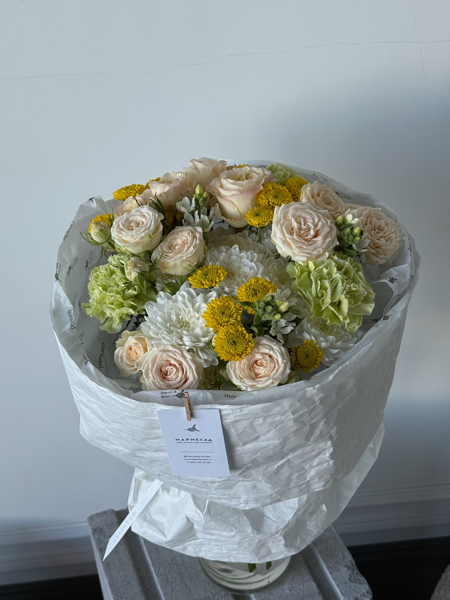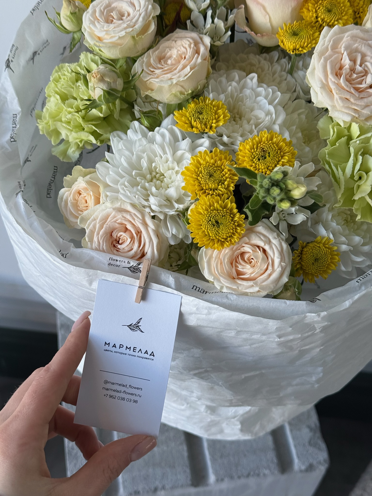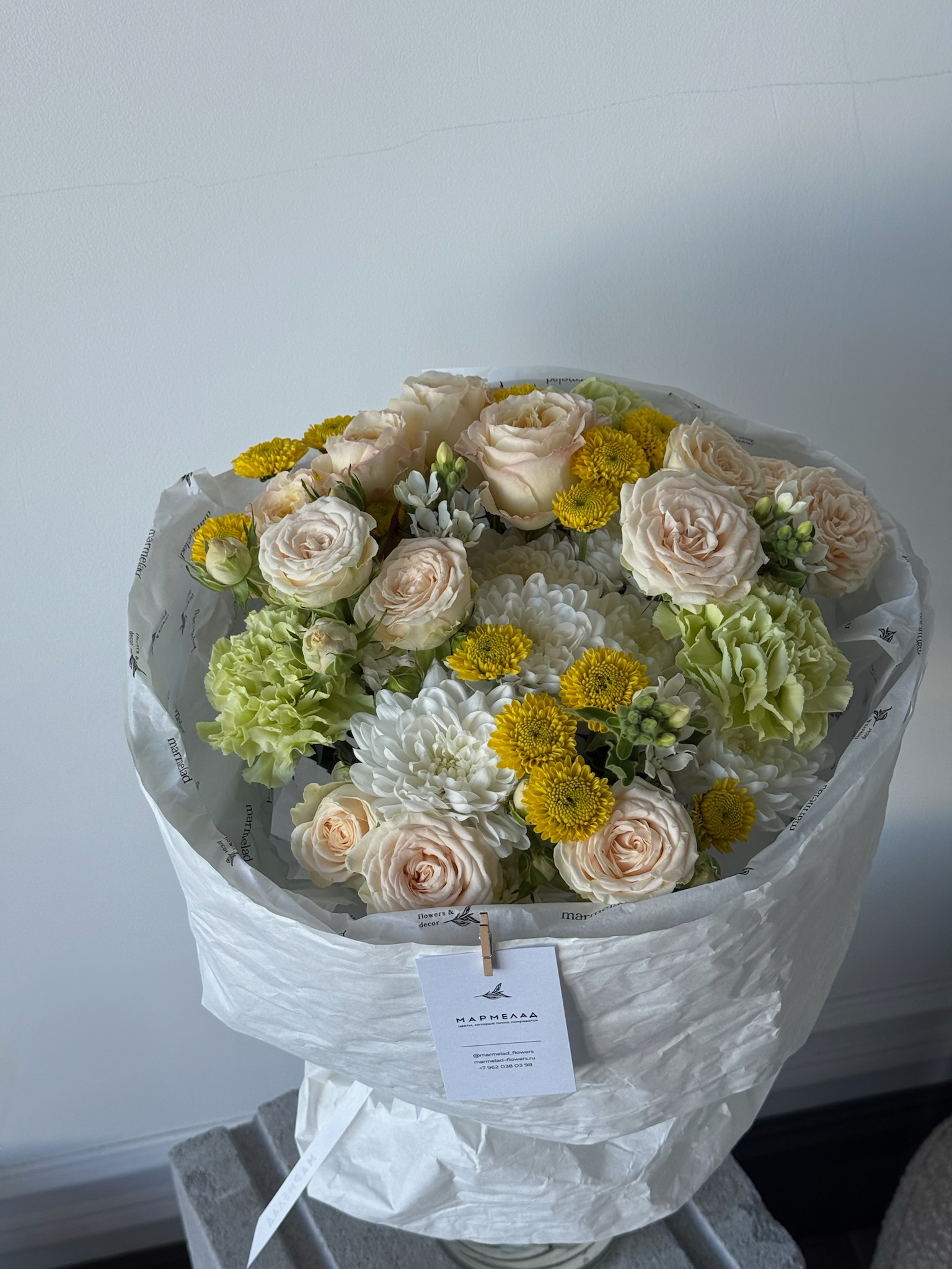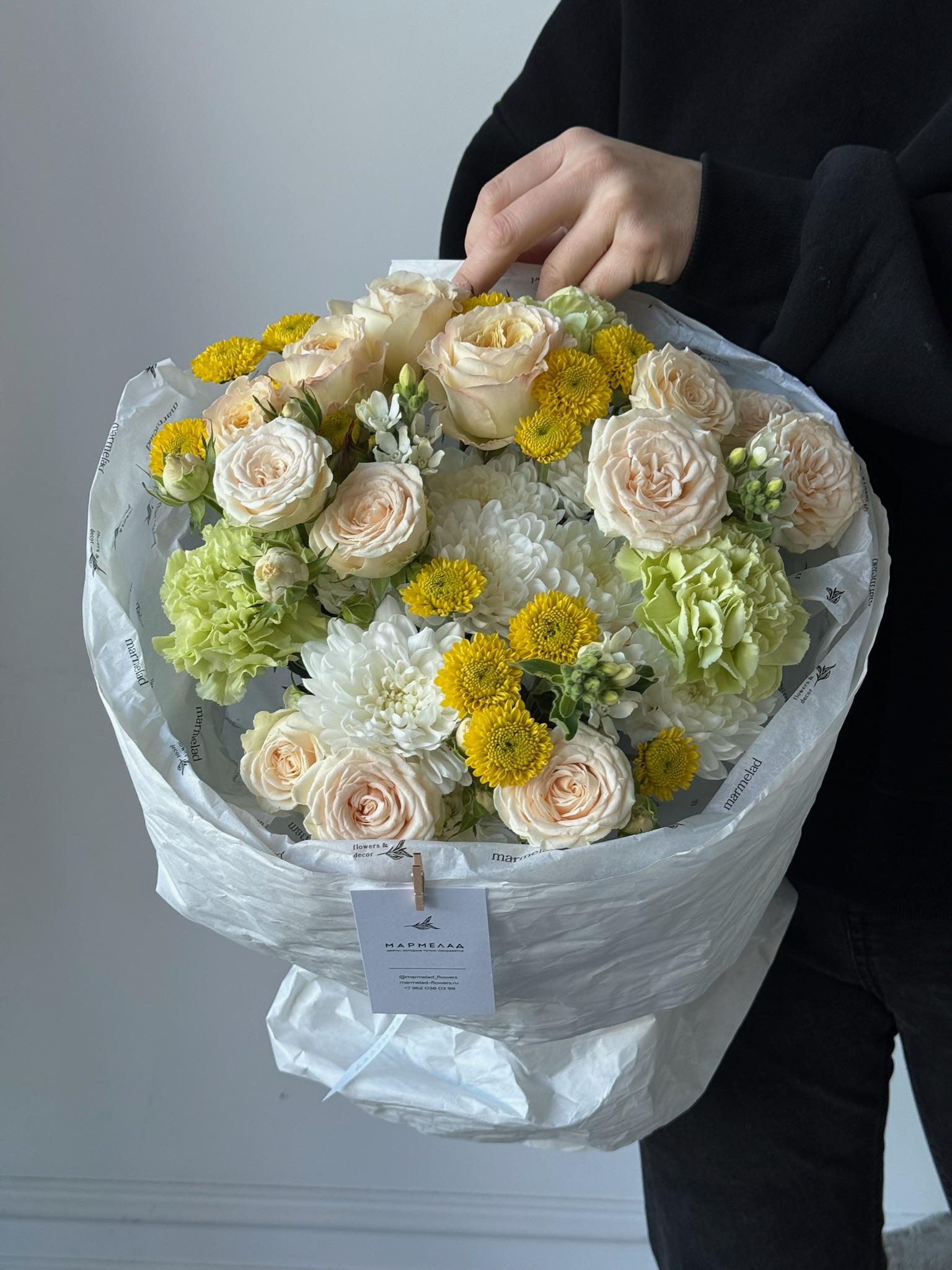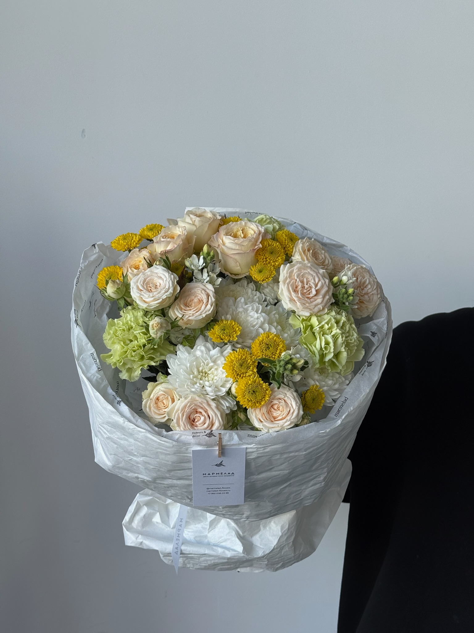 Мы пришлем вам фото готового букета, чтобы вы были уверены в своем заказе. Мы всегда стараемся чтобы фото не искажало размер и цвет