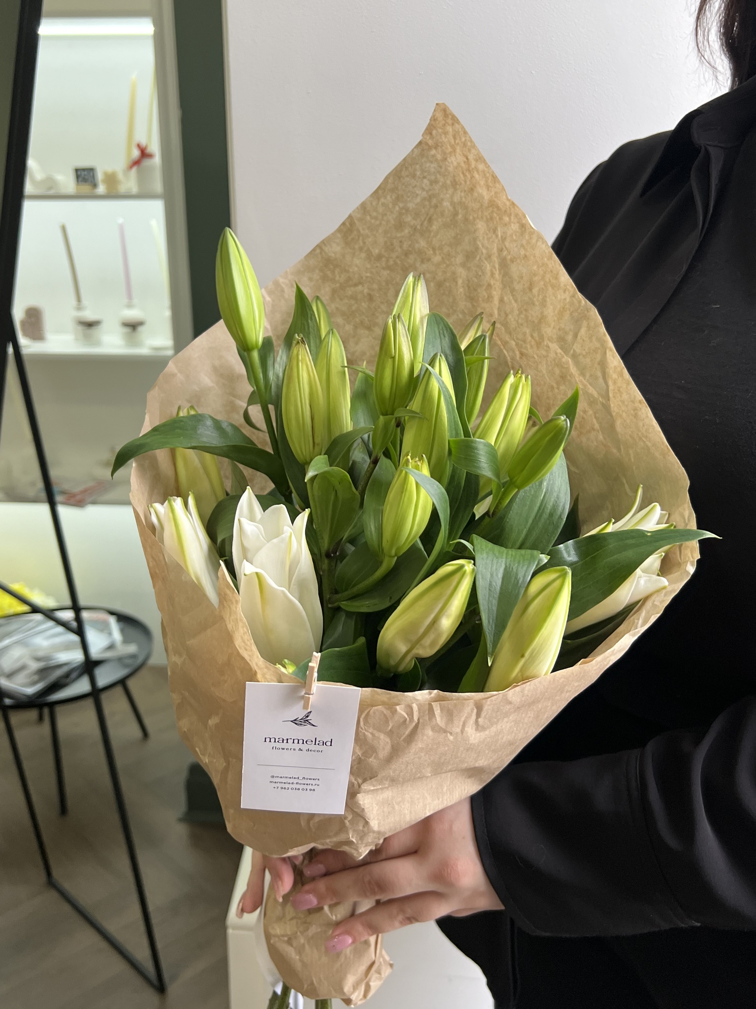 Мы пришлем вам фото готового букета, чтобы вы были уверены в своем заказе. Мы всегда стараемся чтобы фото не искажало размер и цвет