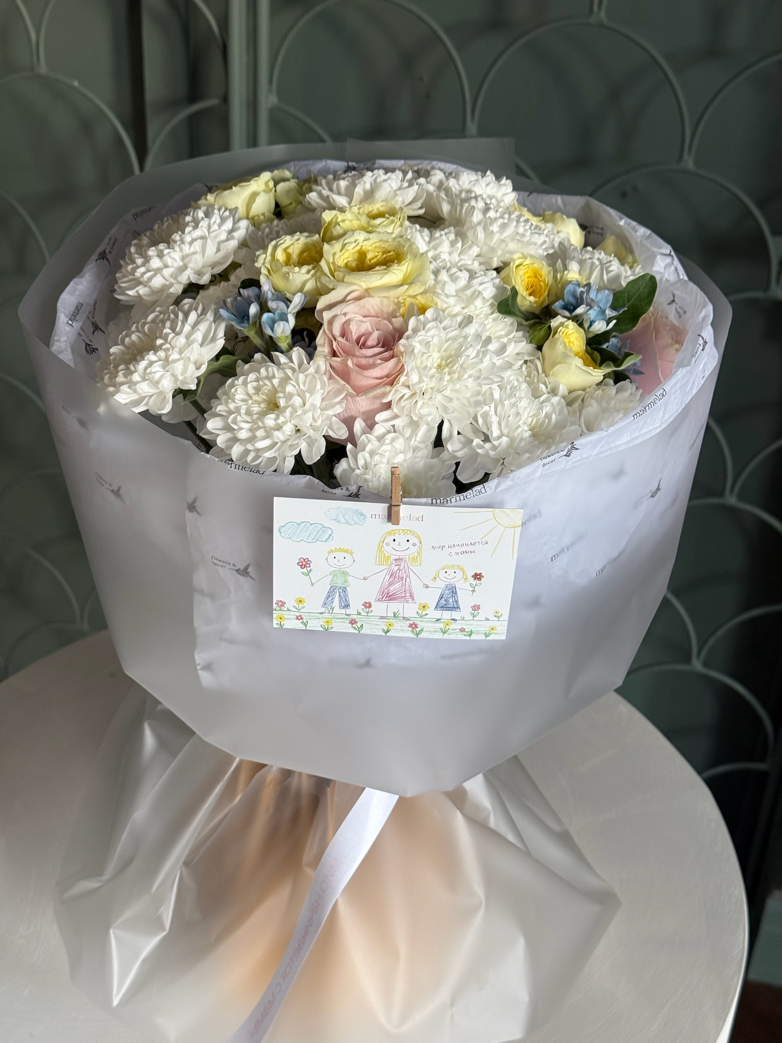 Мы пришлем вам фото готового букета, чтобы вы были уверены в своем заказе. Мы всегда стараемся чтобы фото не искажало размер и цвет