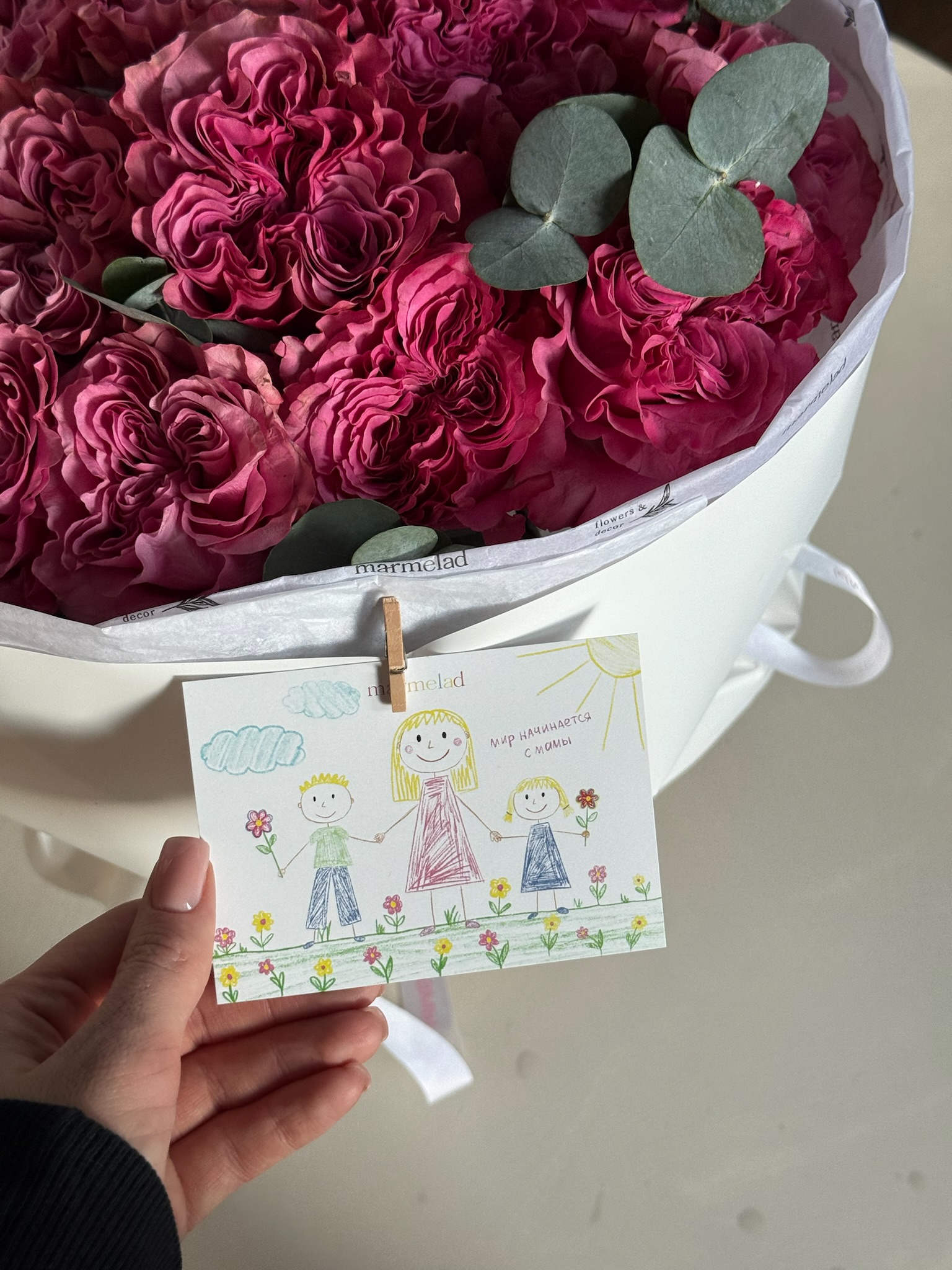 • Каждый букет мы бережно доставляем в специальном транспортировочном боксе, а так же используем мобильные вазы с водой.