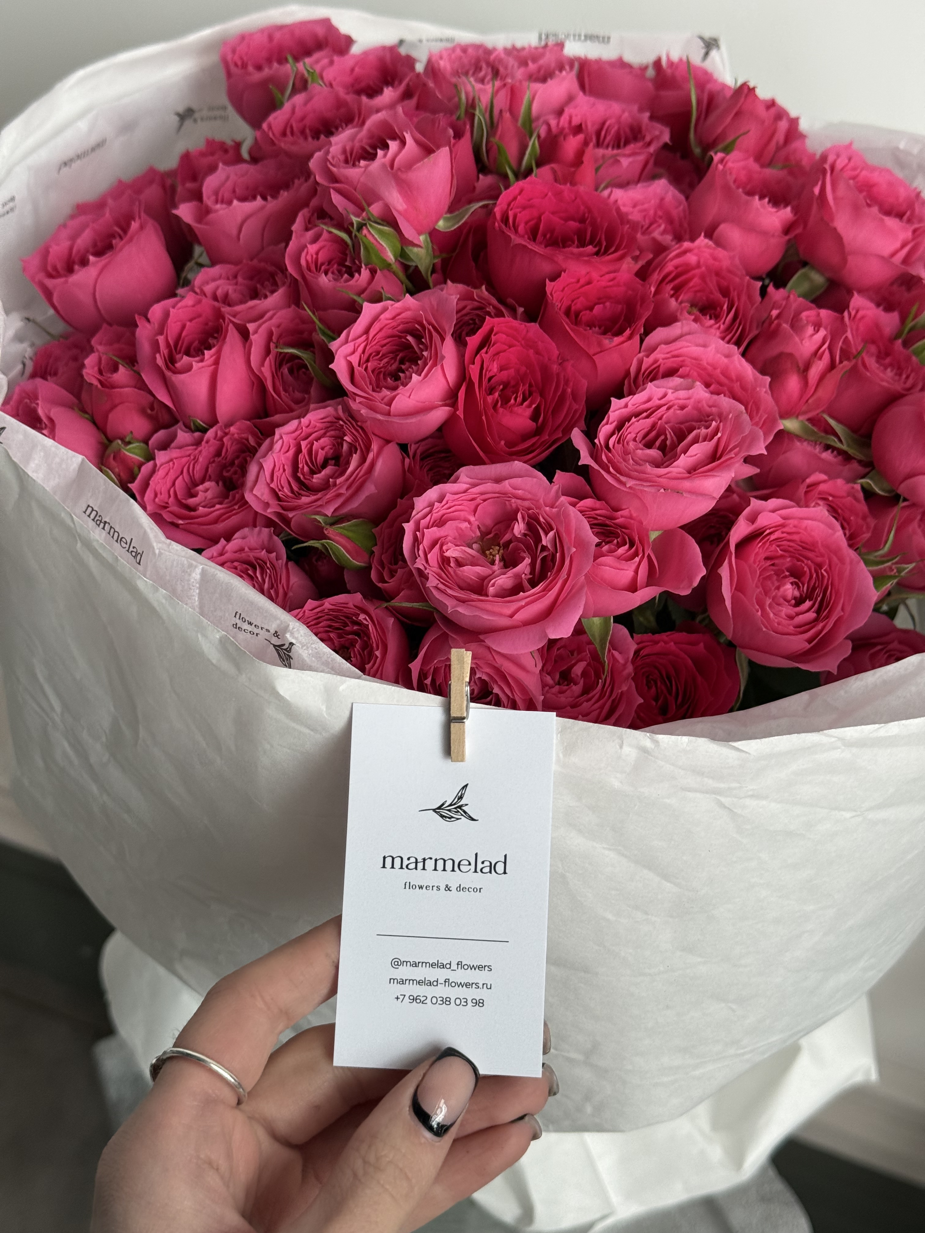 Мы пришлем вам фото готового букета, чтобы вы были уверены в своем заказе. Мы всегда стараемся чтобы фото не искажало размер и цвет