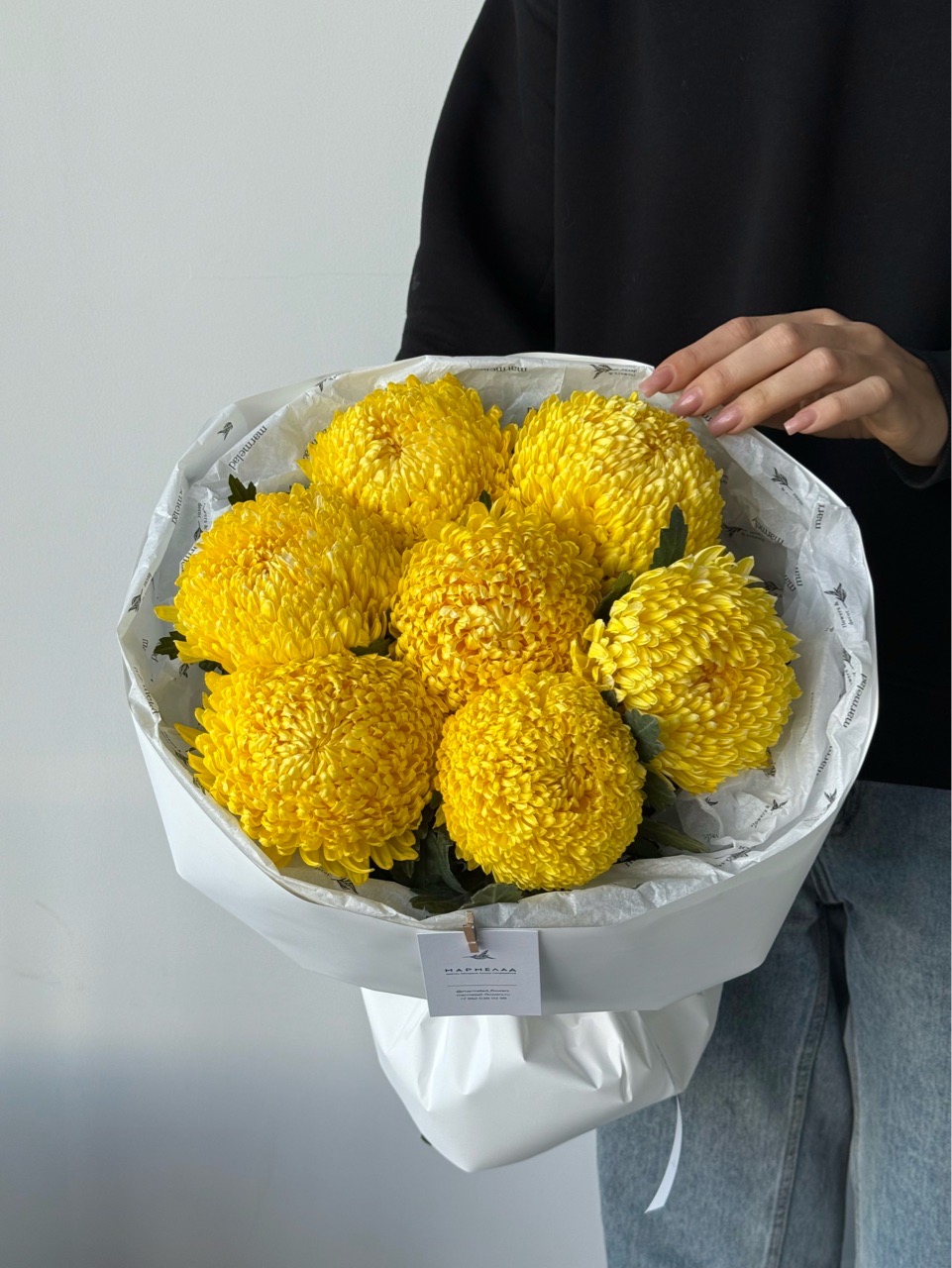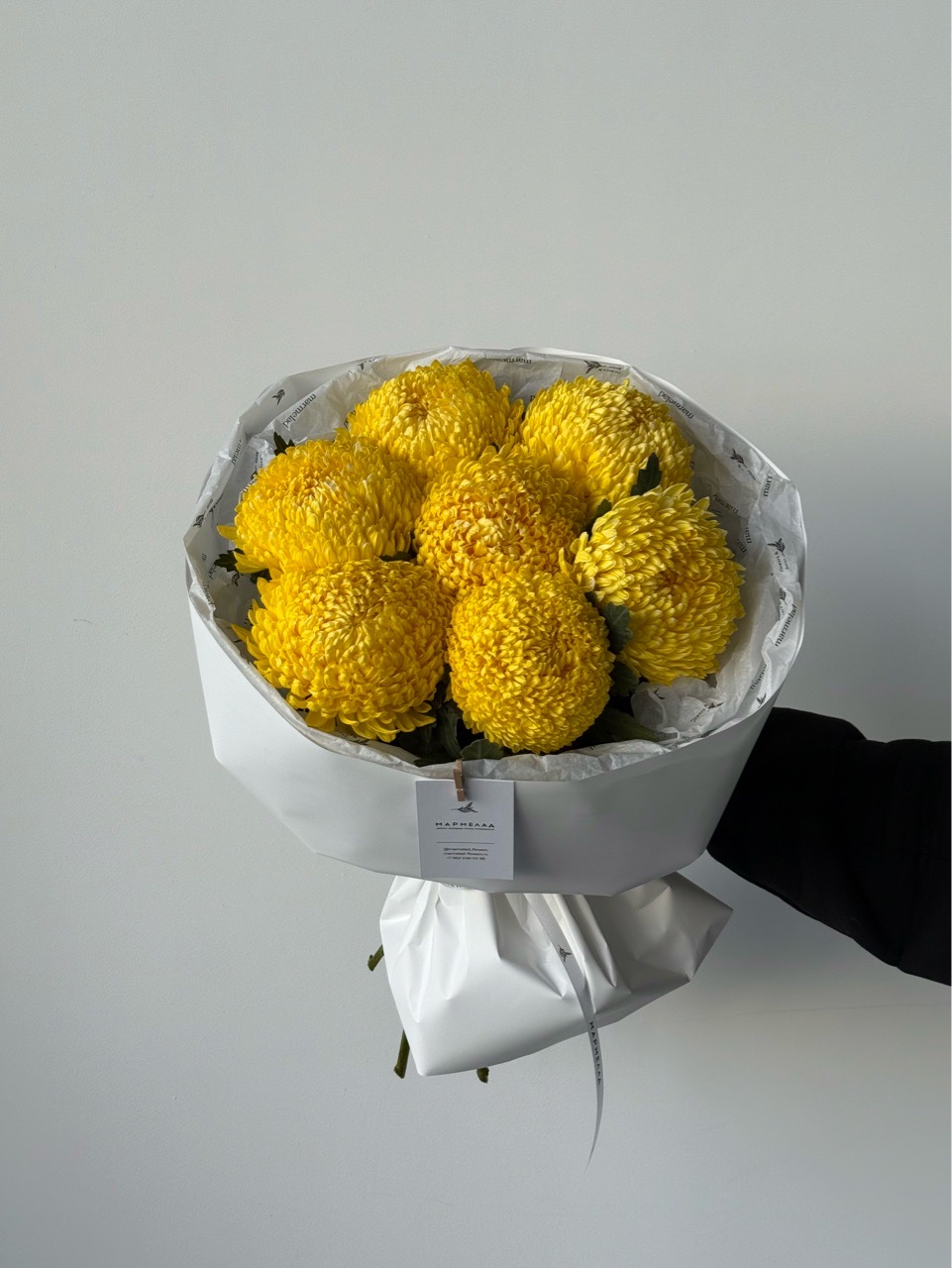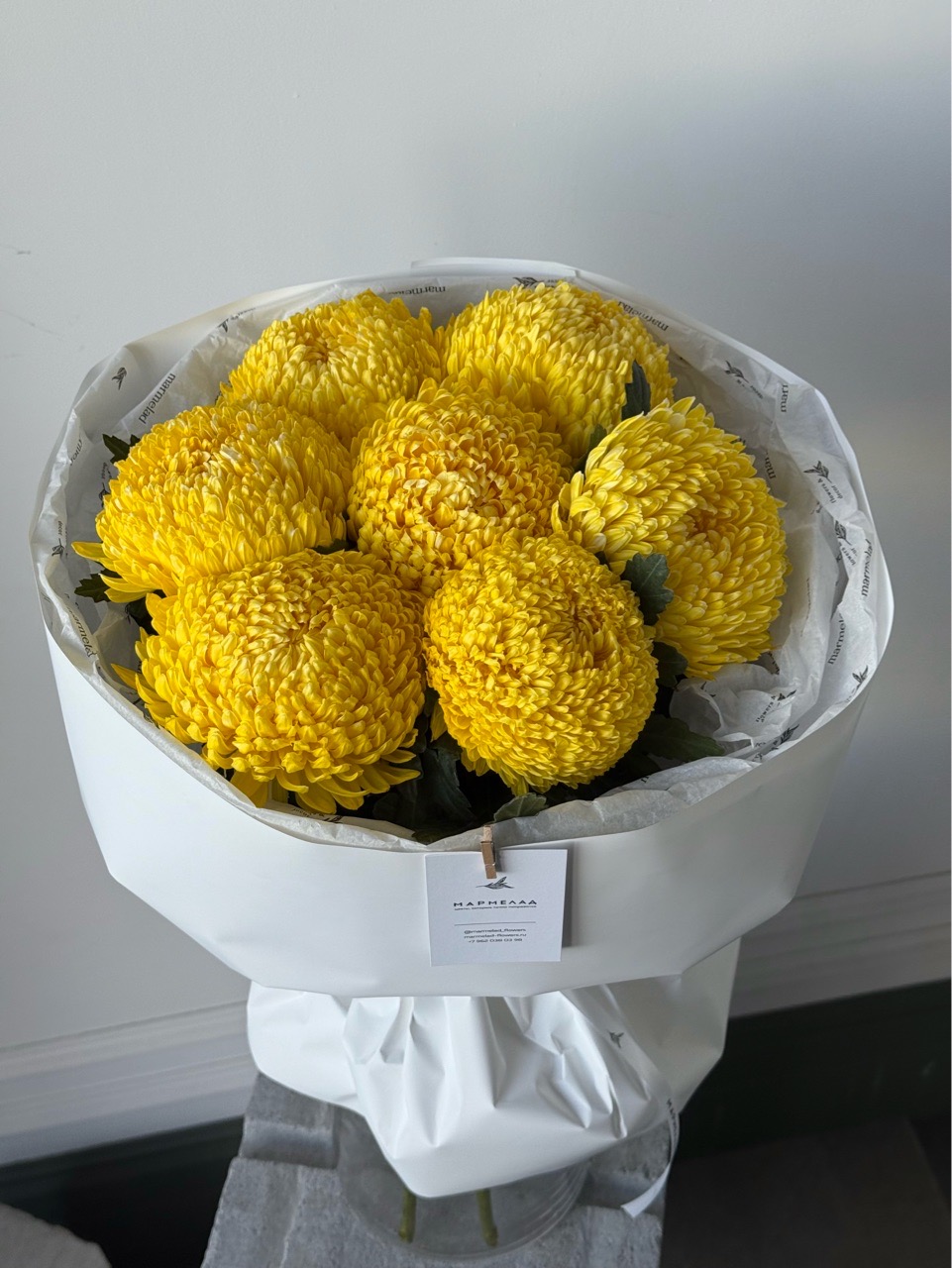 Букет моно из хризантемы в желтом оттенке