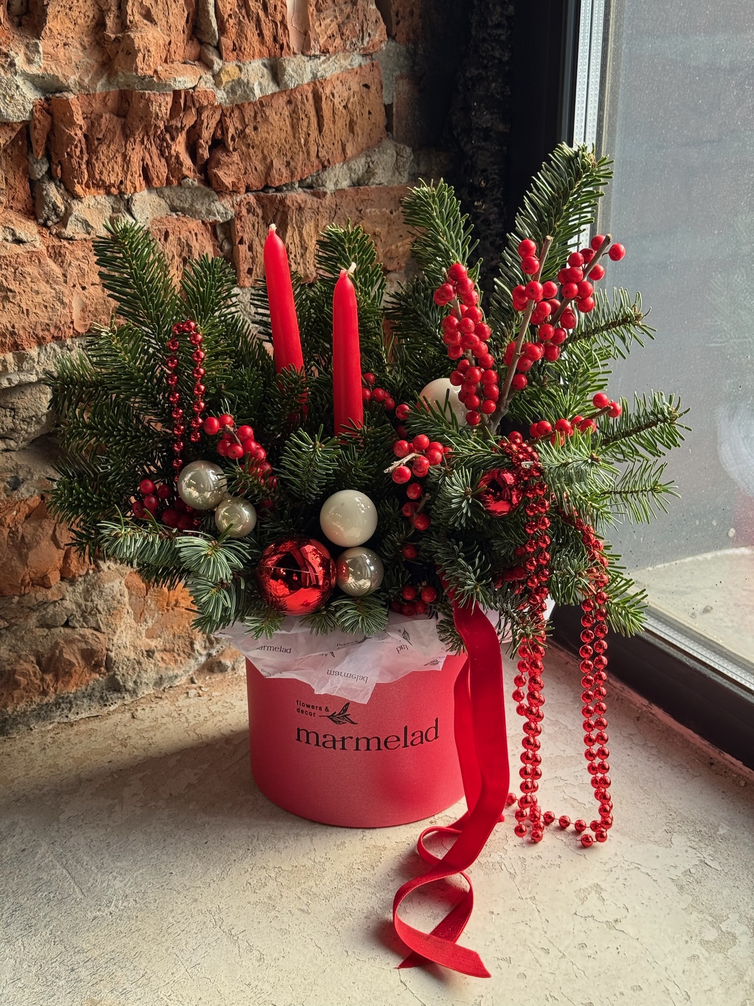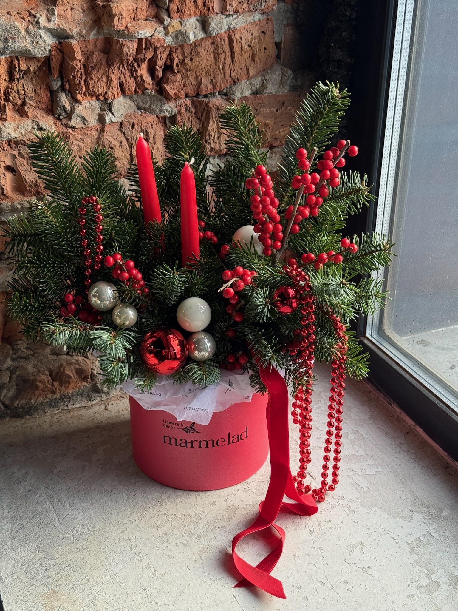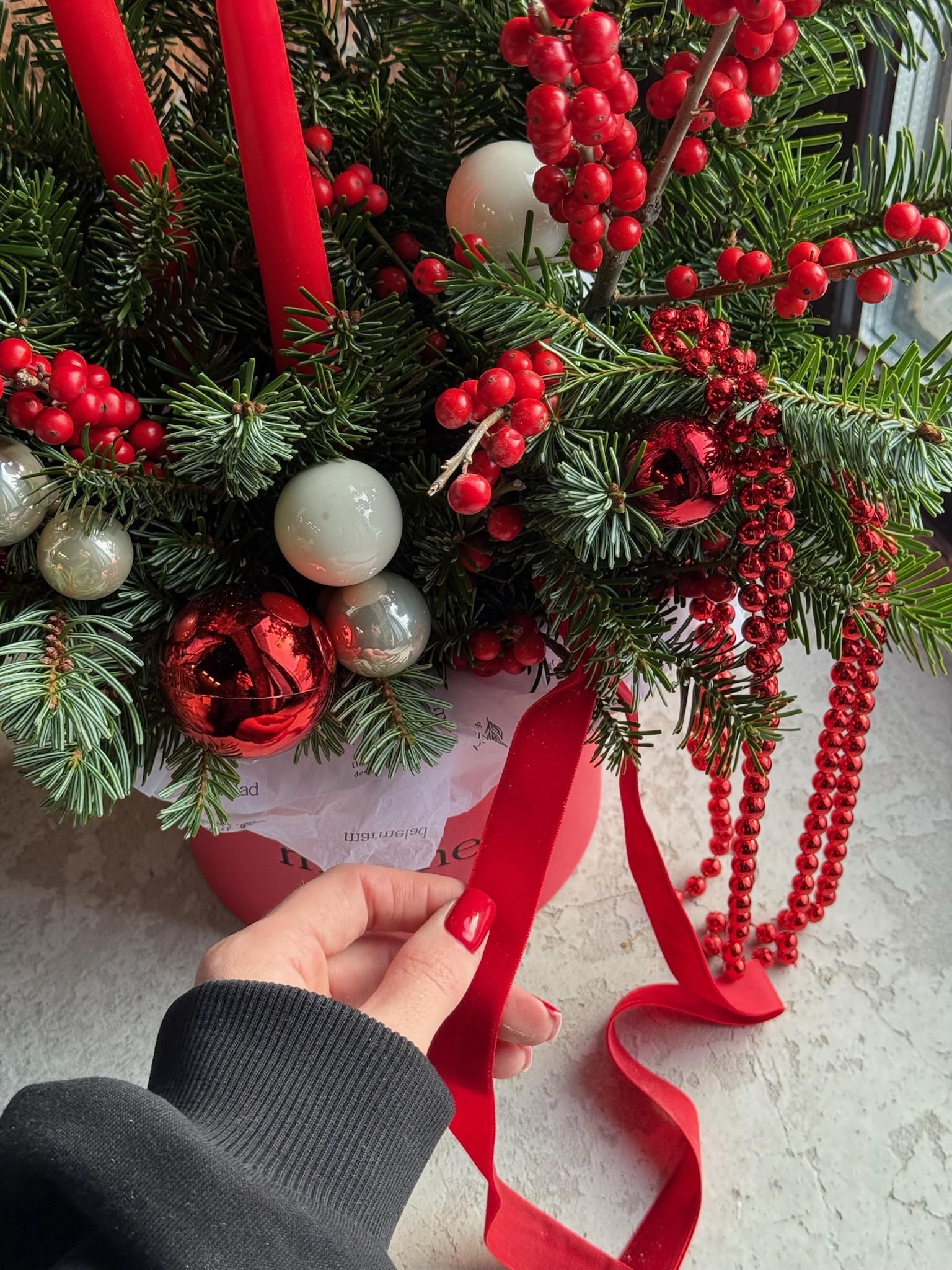 Композиция из датской ели нобилис - единственная ель которая со временем, когда подсыхает не осыпается и сохраняет свой вид