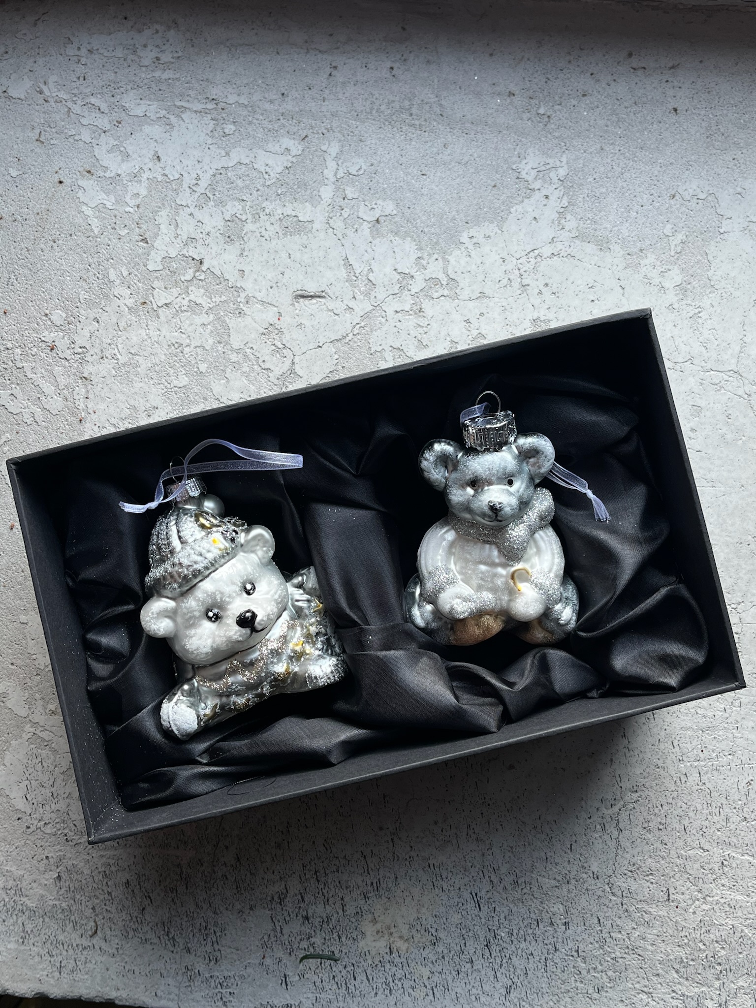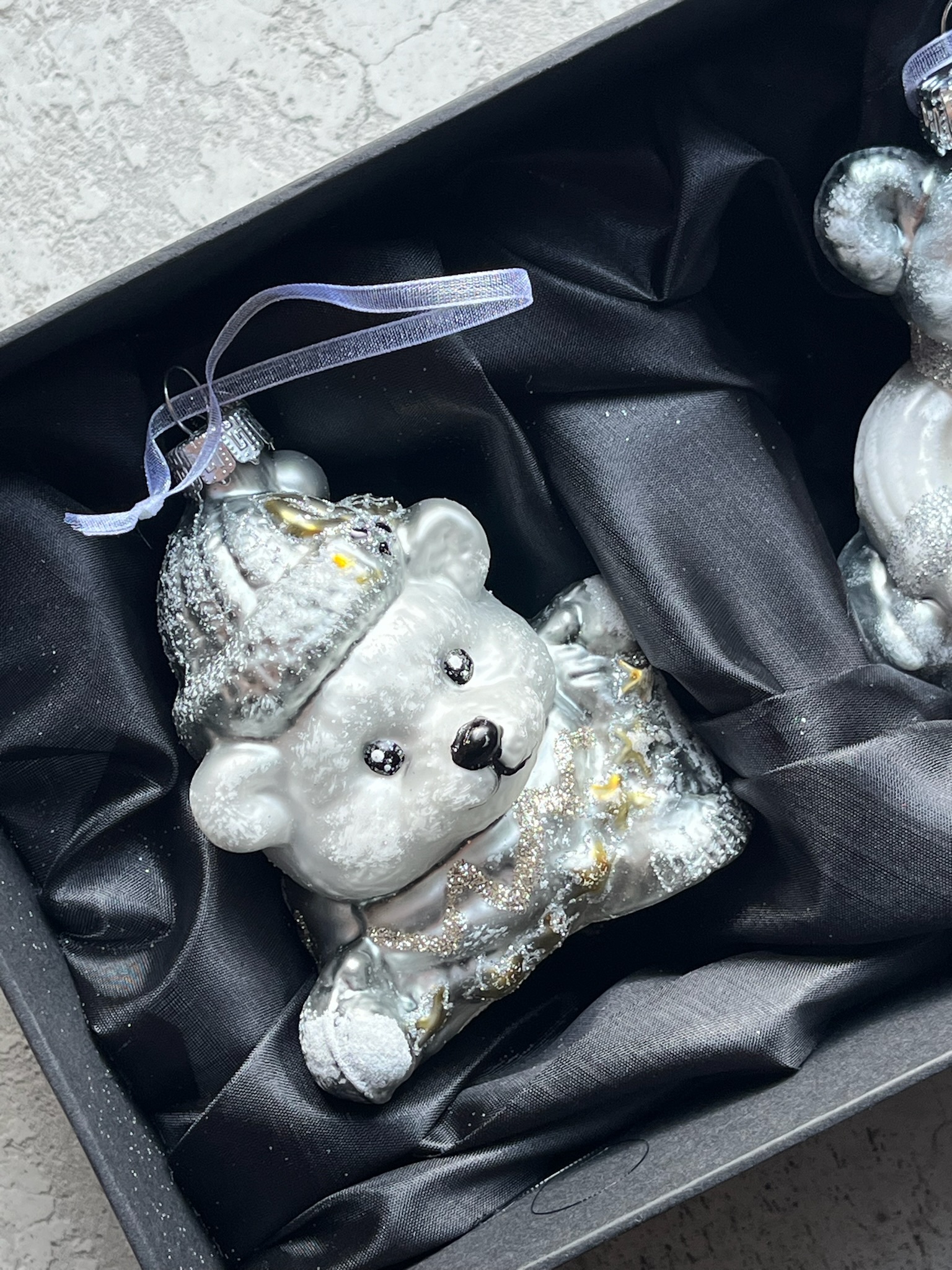 Набор новогодних игрушек медвежата Ронни и Донни- стекло