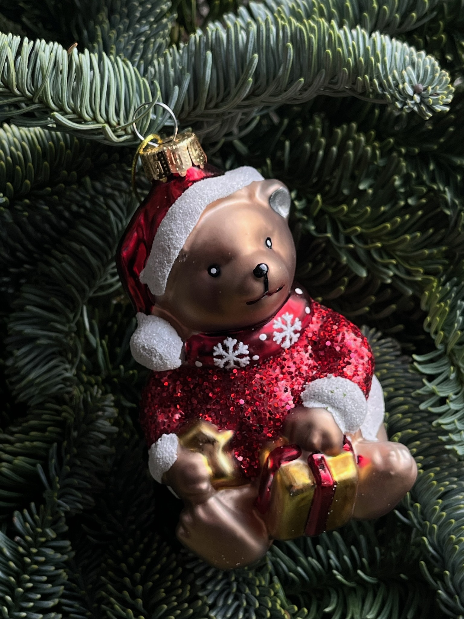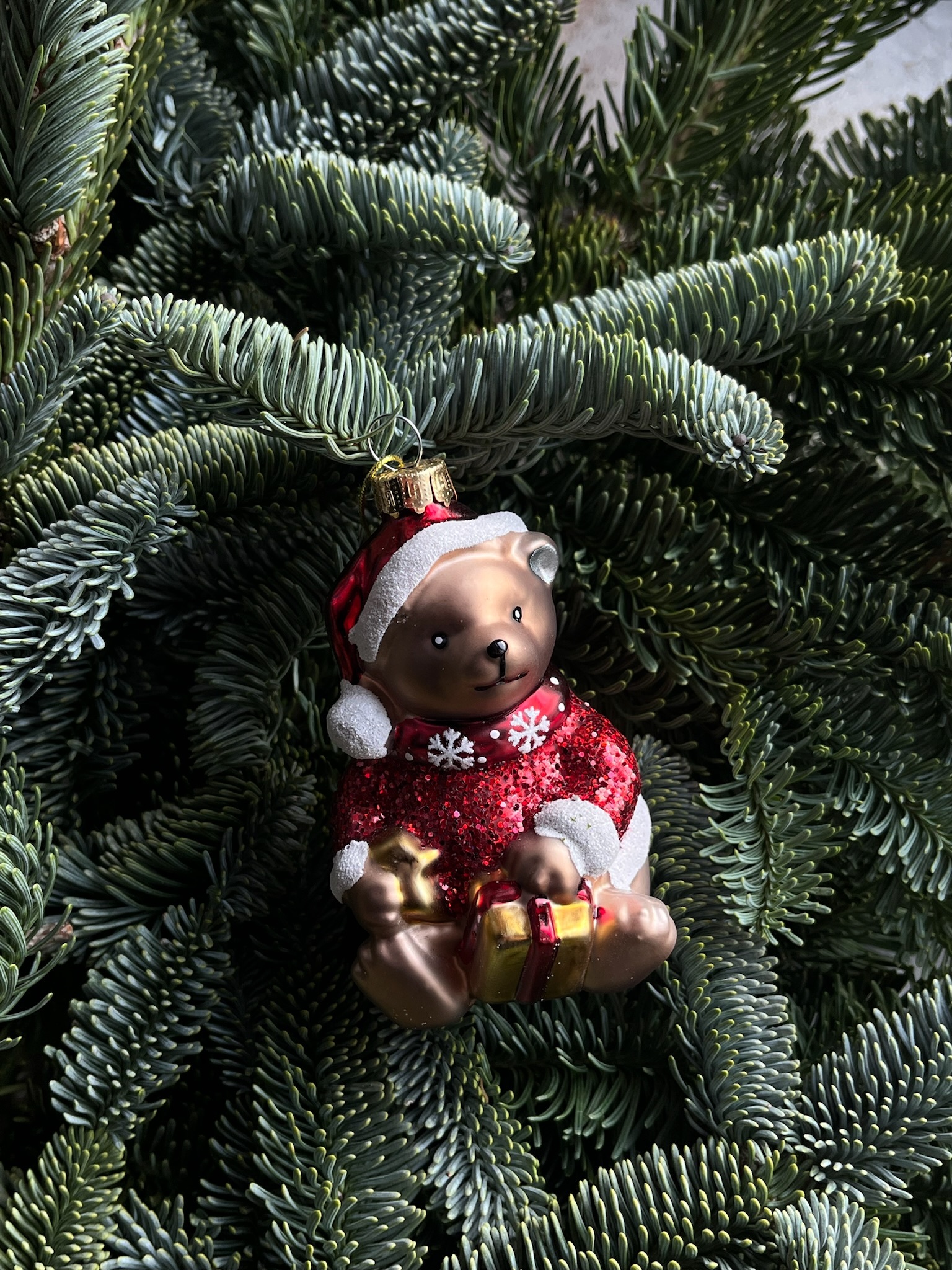 Новогодняя игрушка Медвежонок с подарком Тэрри стекло