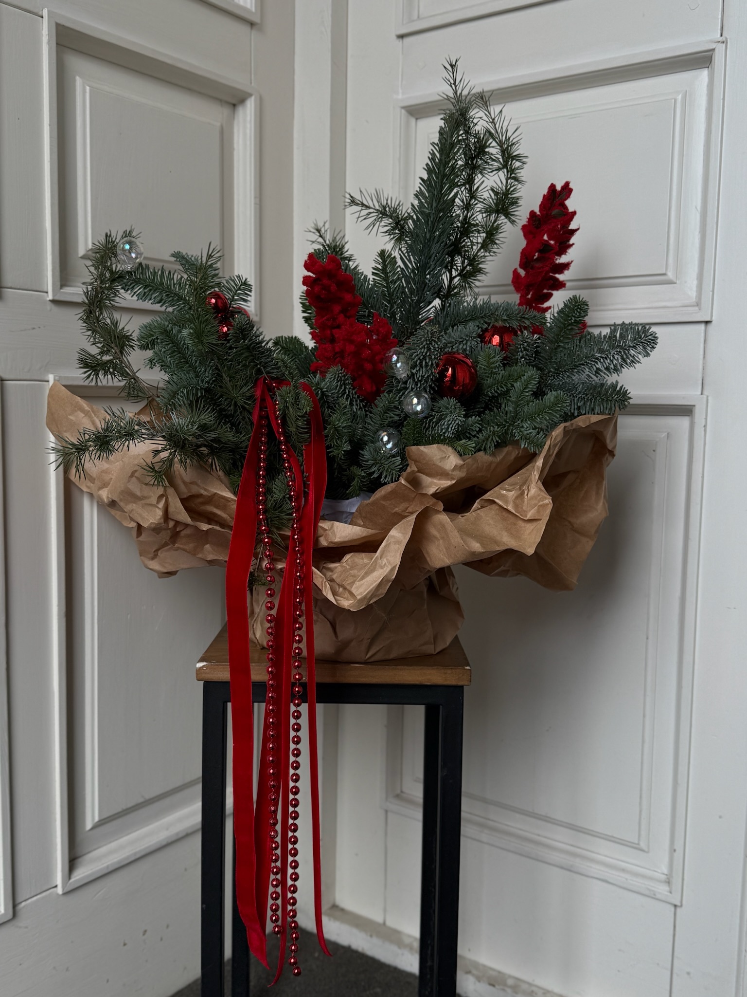 Композиция из датской ели нобилис - единственная ель которая со временем, когда подсыхает не осыпается и созраняет свой вид