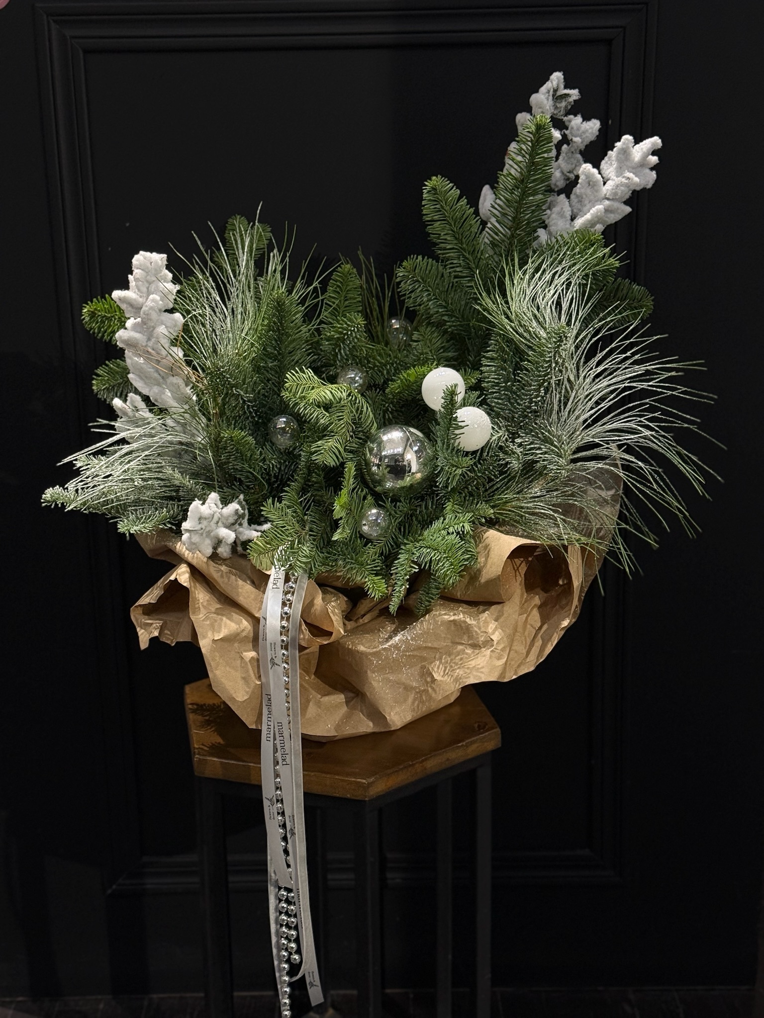 Композиция из датской ели нобилис - единственная ель которая со временем, когда подсыхает не осыпается и созраняет свой вид