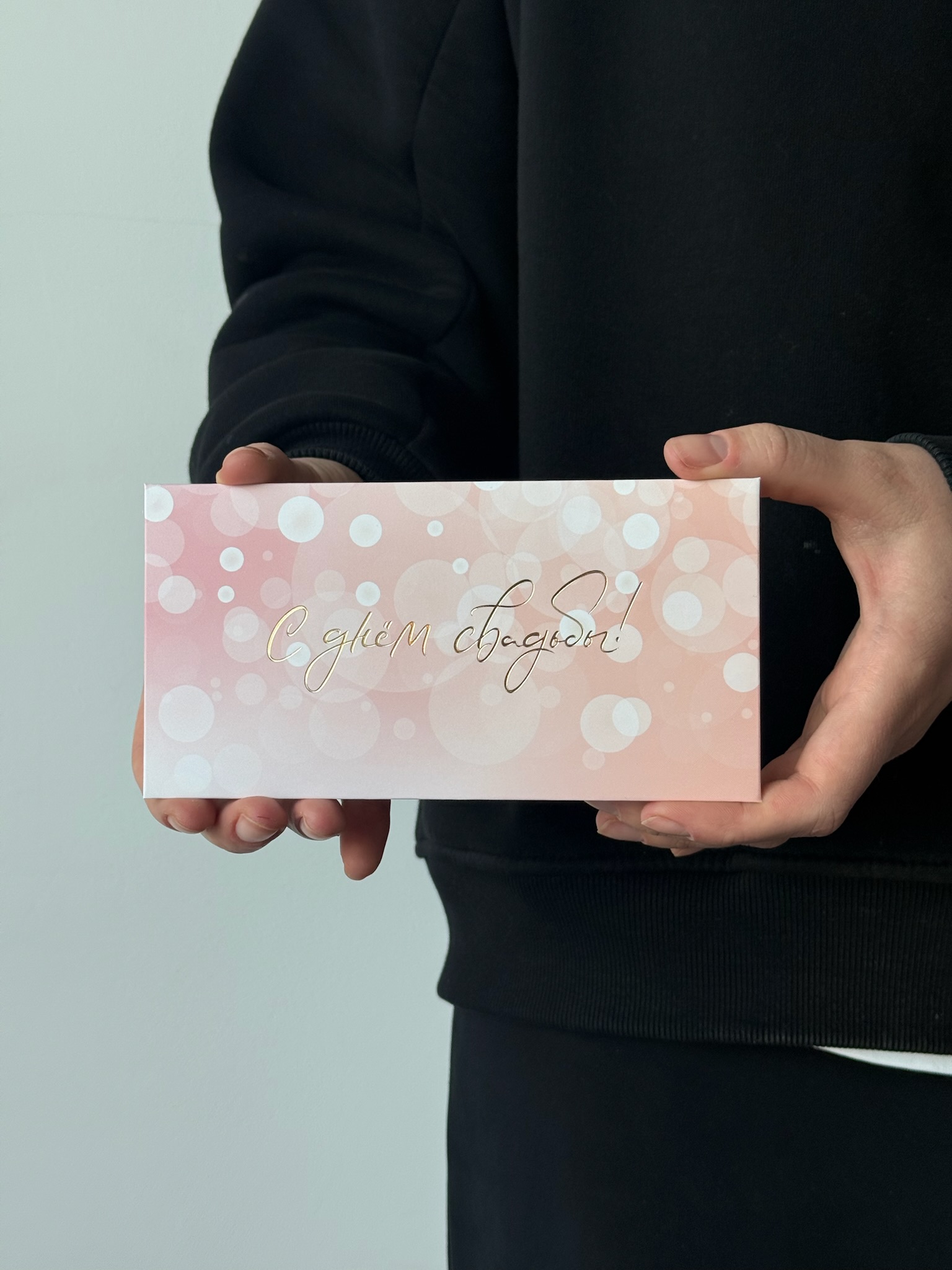 Конверт для денег персиковый фон "С днём свадьбы"