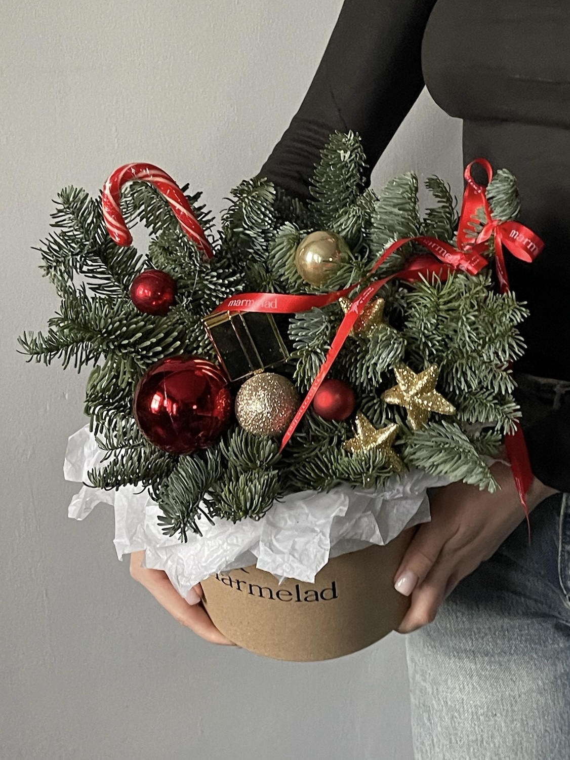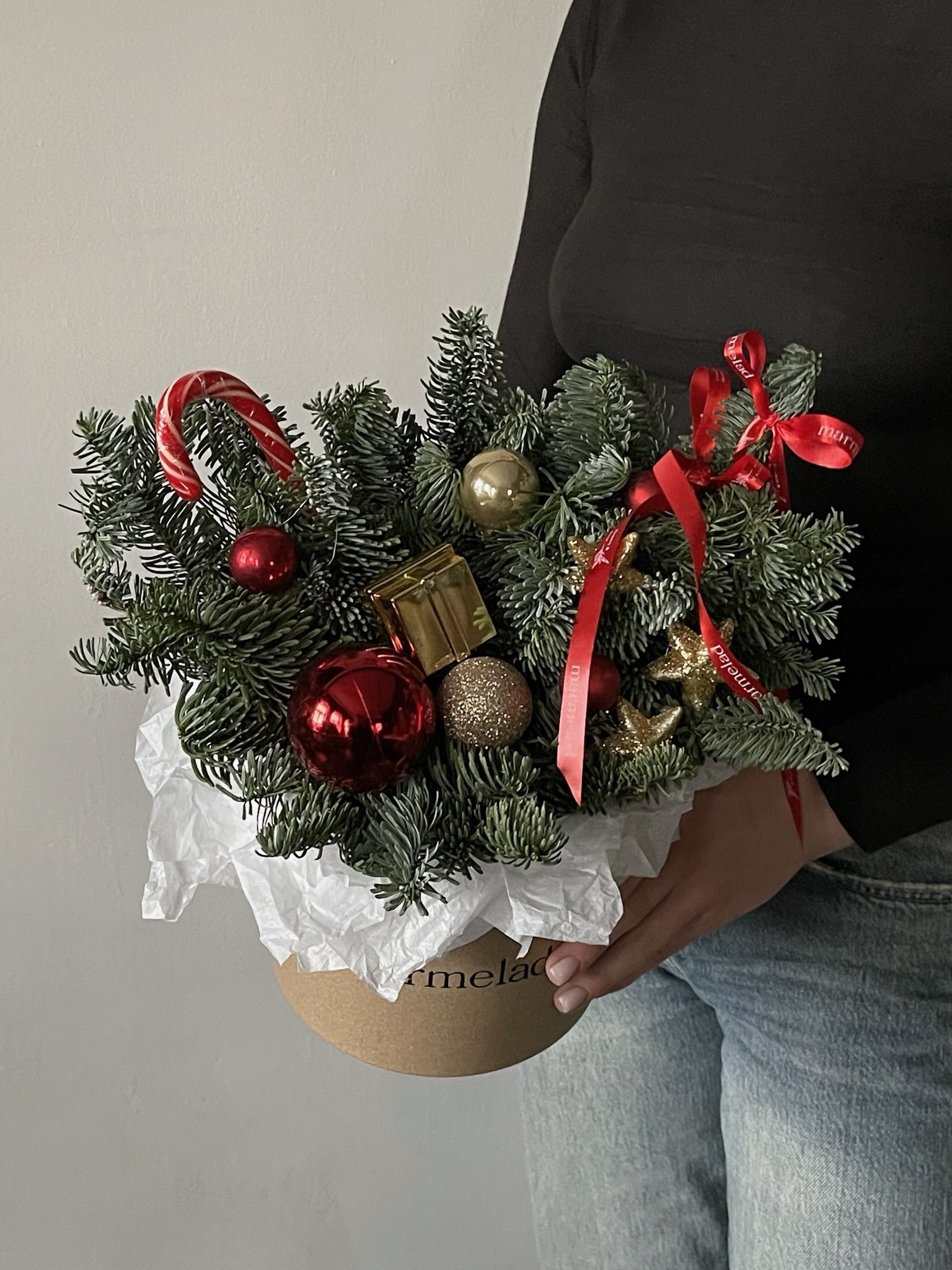 Композиция из датской ели нобилис - единственная ель которая со временем, когда подсыхает не осыпается и созраняет свой вид