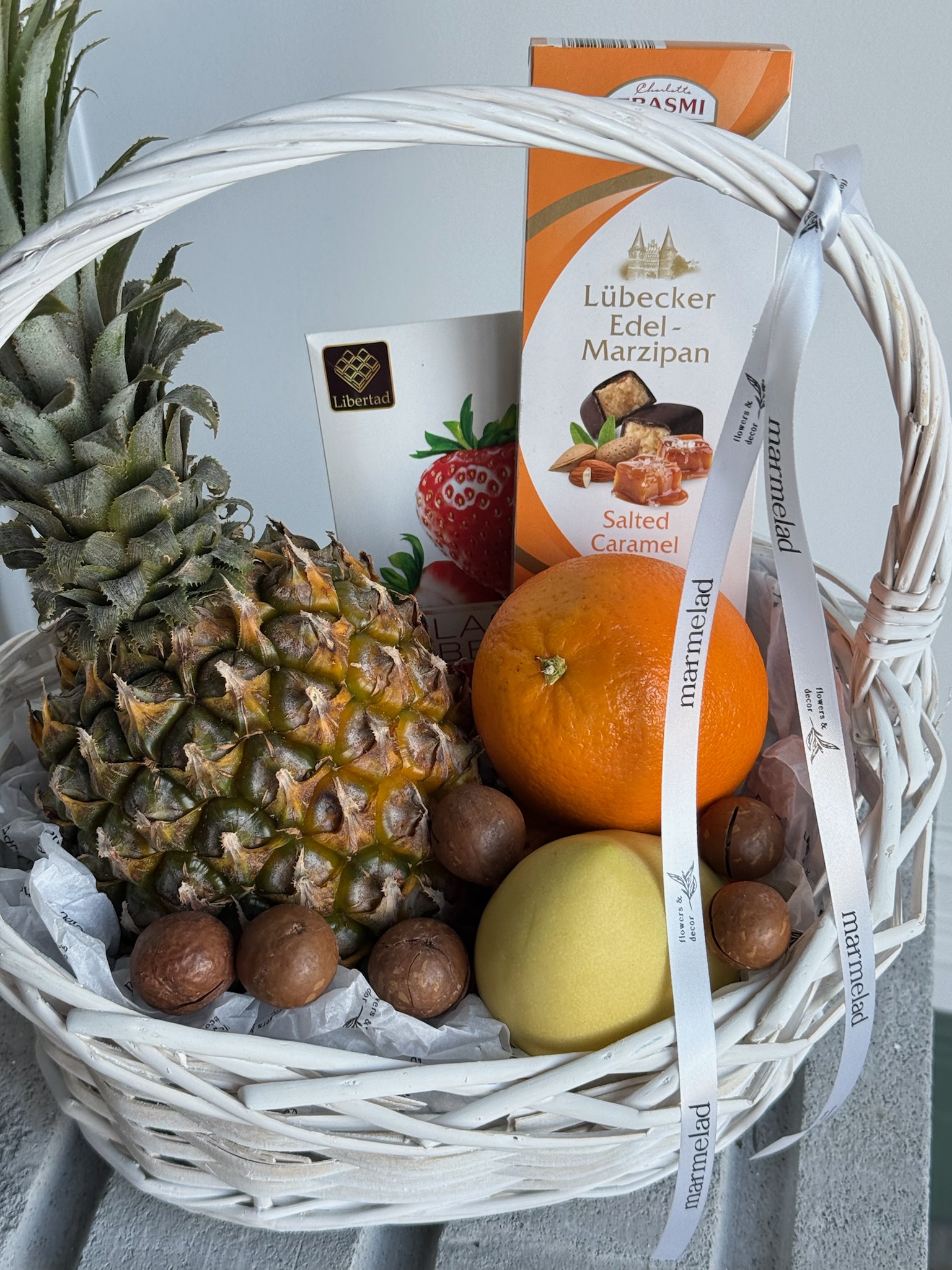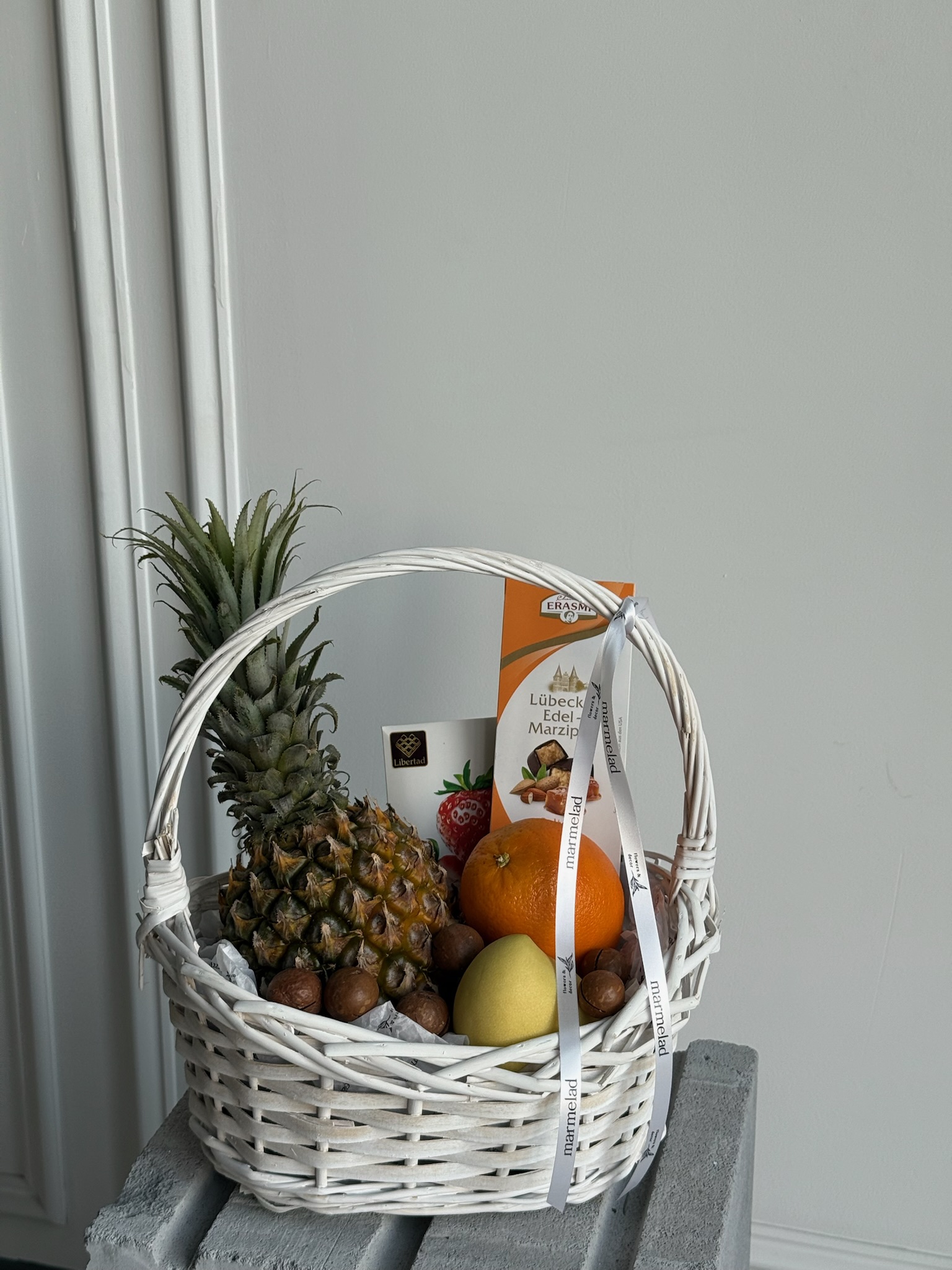 состав корзины может быть изменен, исходя из сезонности и наличия фруктов. Мы с удовольствием предложим вам замену на альтернативные варианты