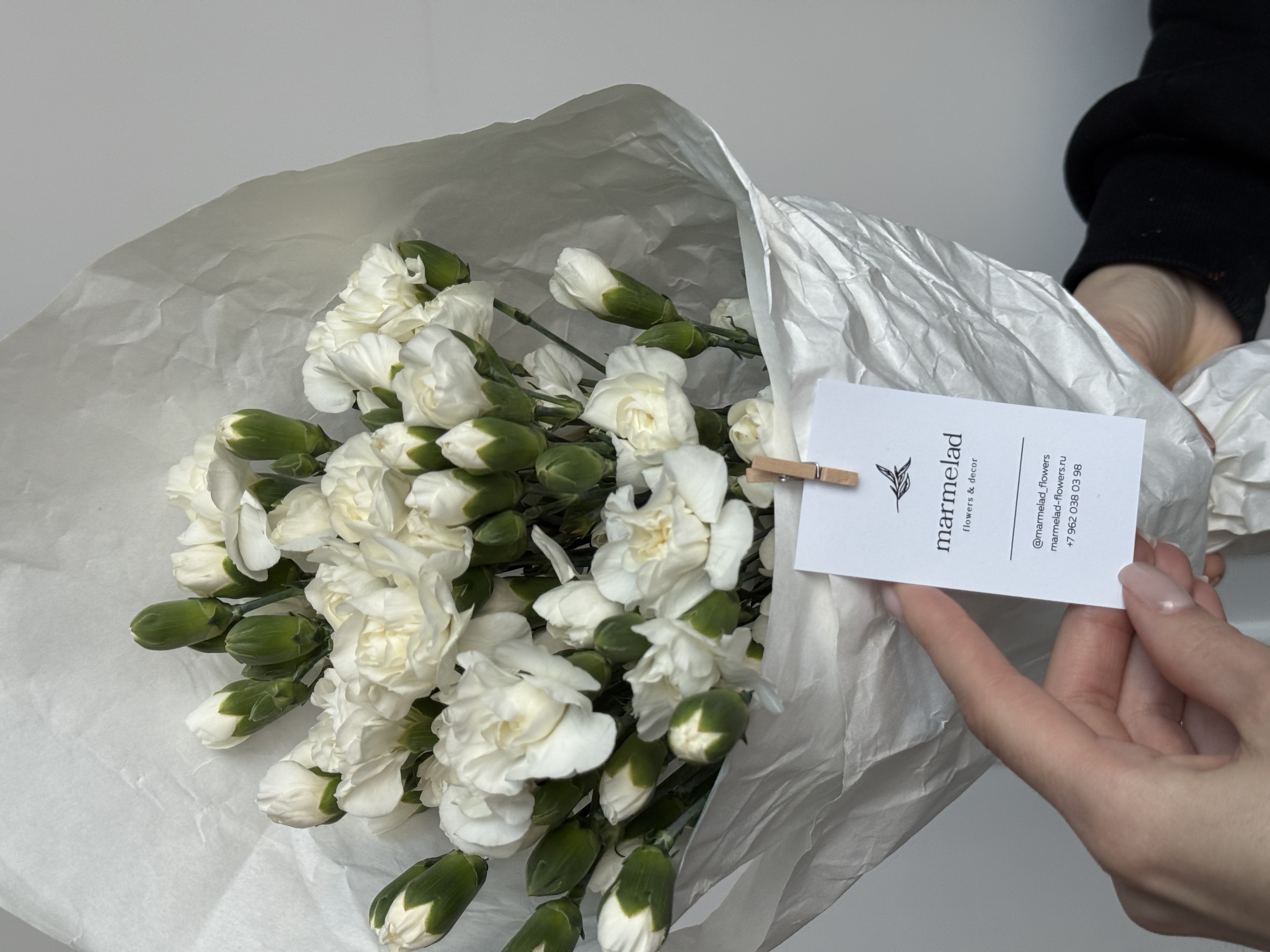 Мы пришлем вам фото готового букета, чтобы вы были уверены в своем заказе. Мы всегда стараемся чтобы фото не искажало размер и цвет