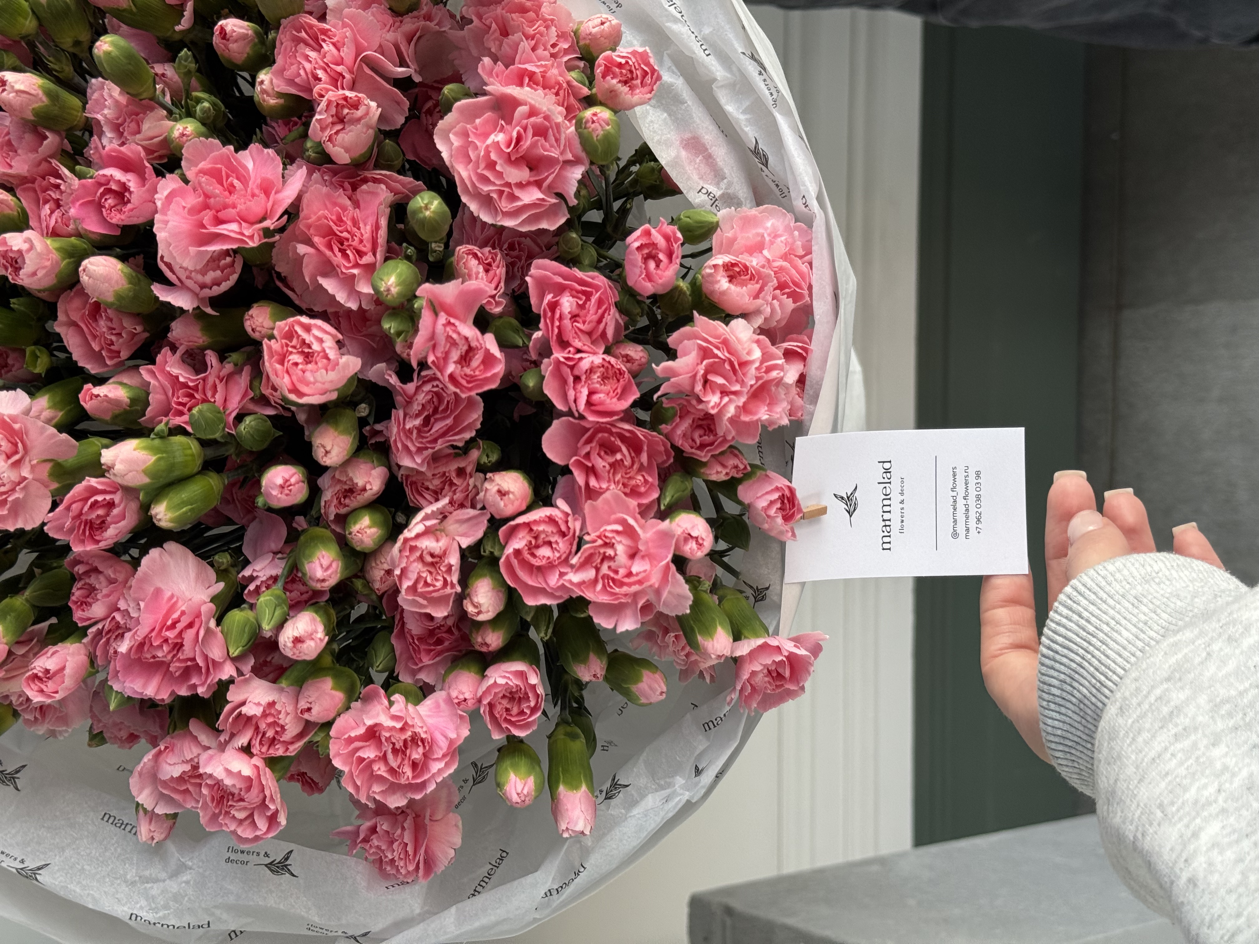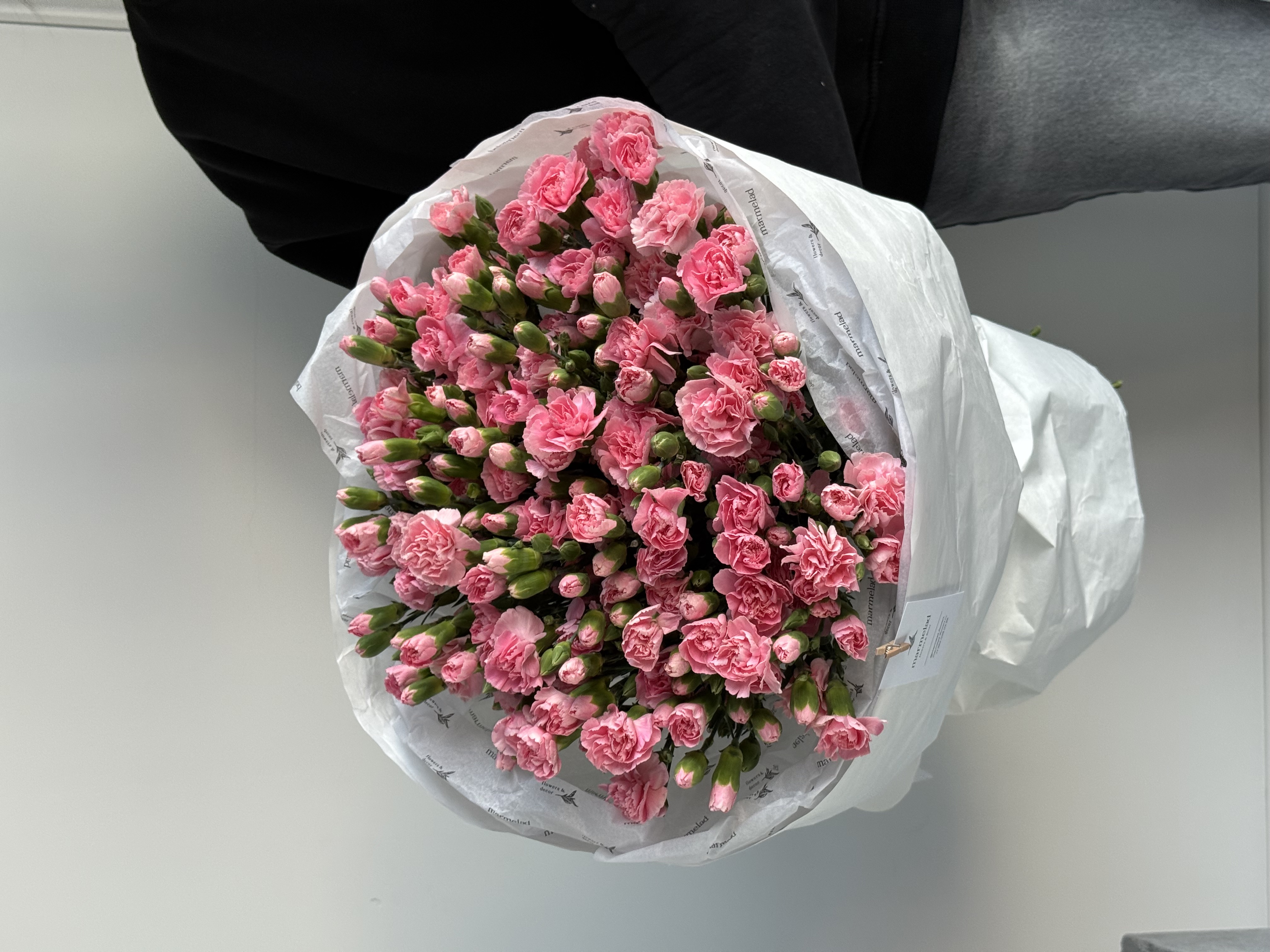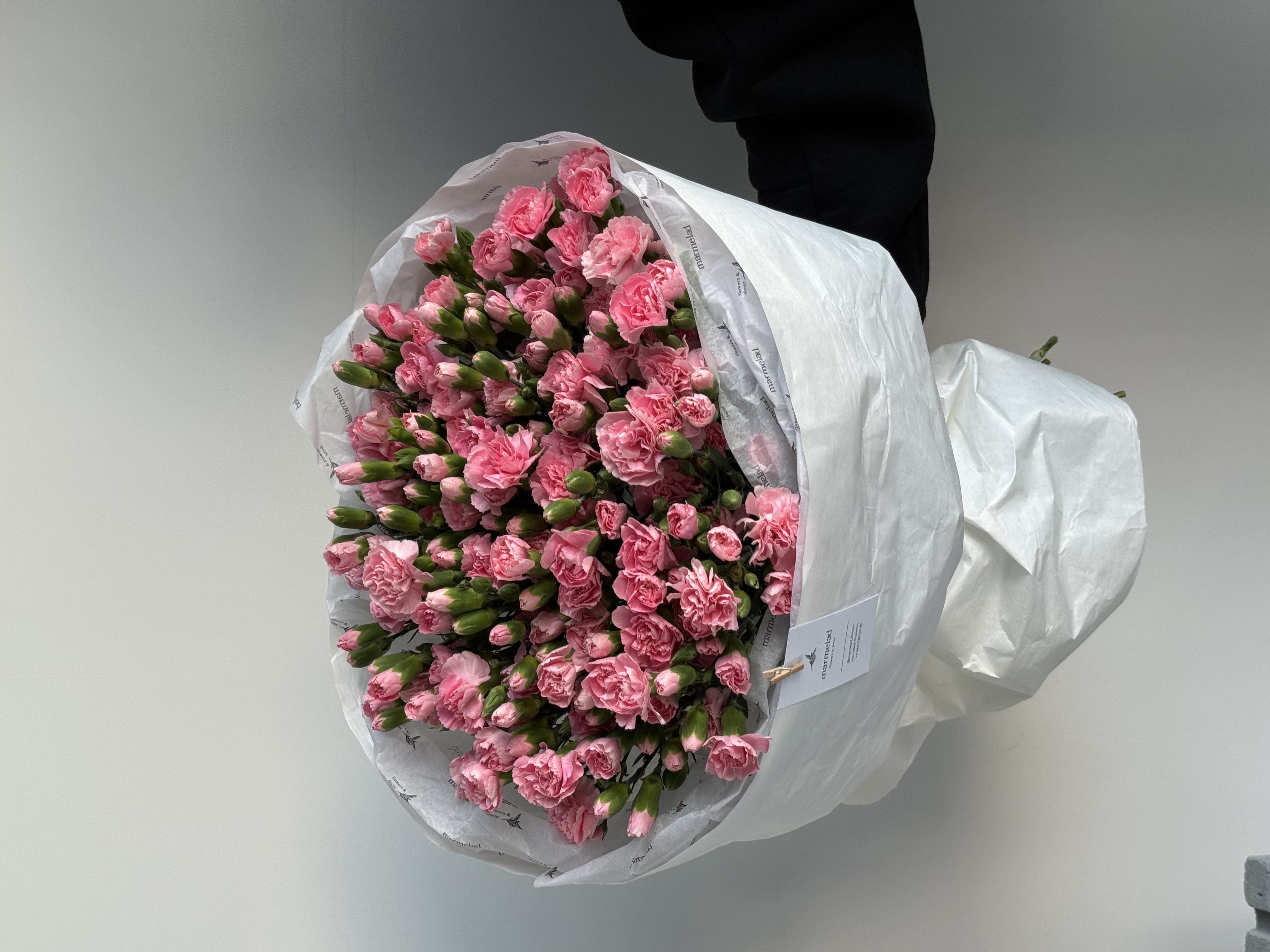 Моно букет из кустовых диантусов в розовом оттенке 51 шт