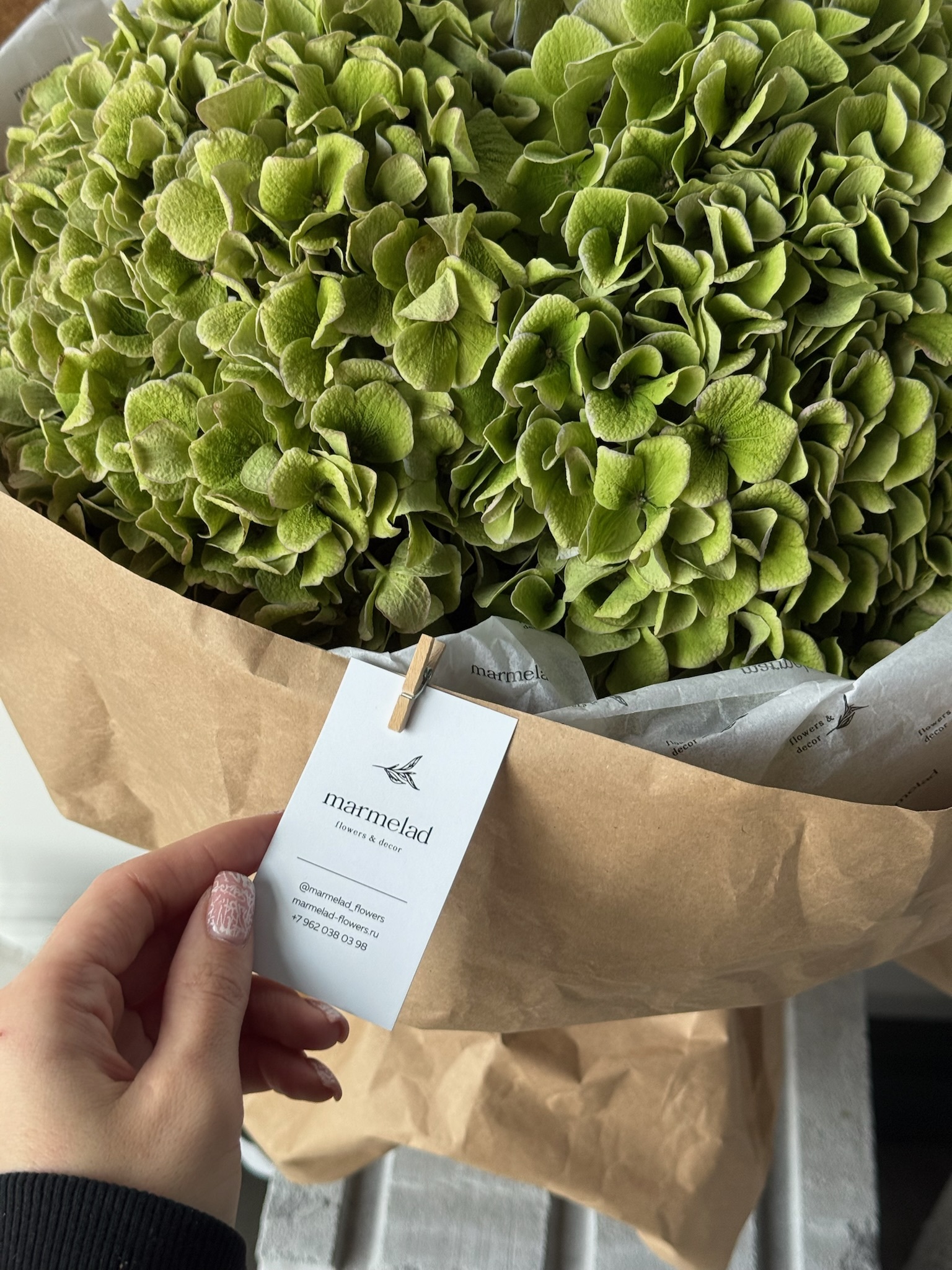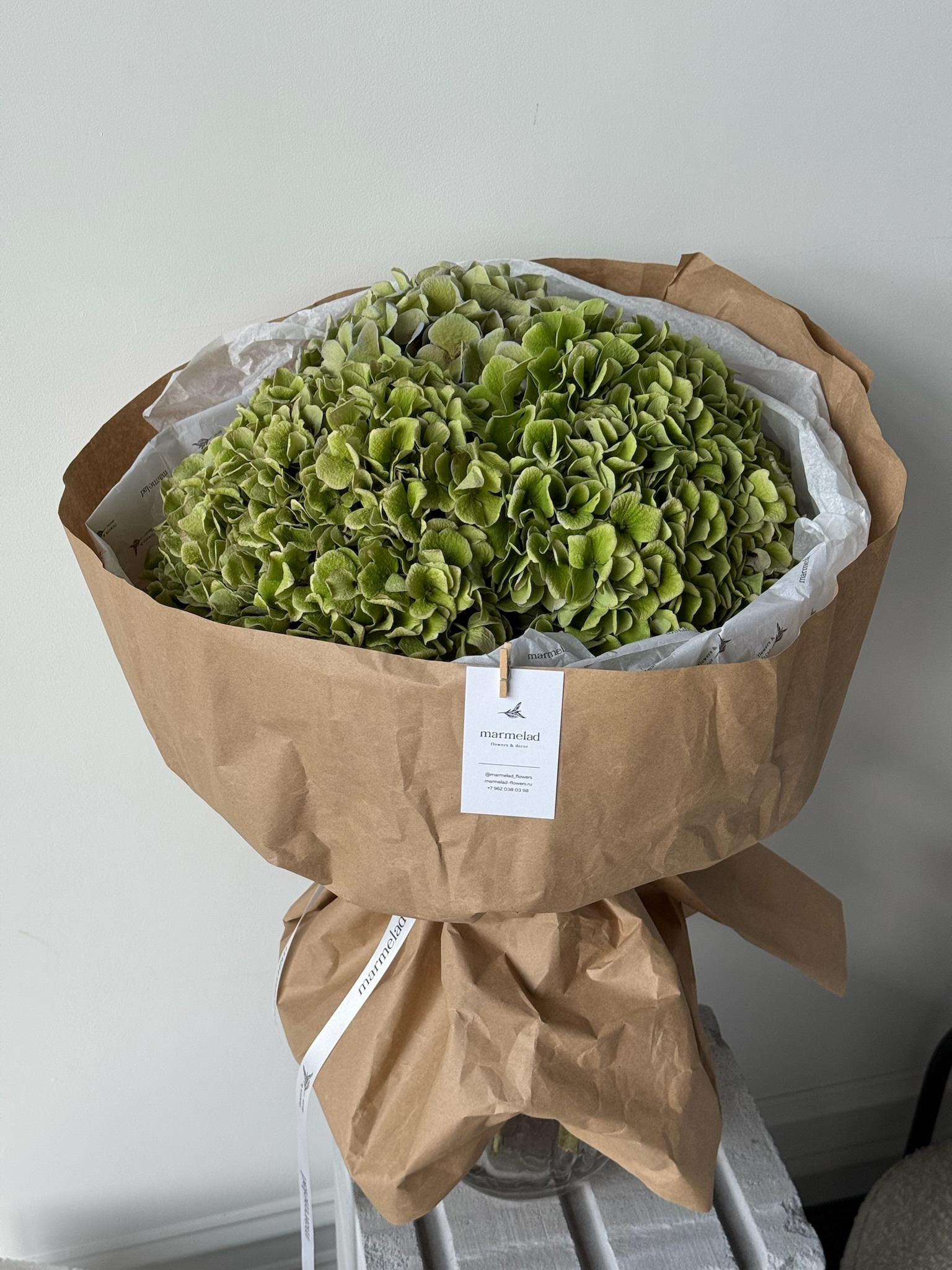 Букет из гортензии в зеленом оттенке 3 шт