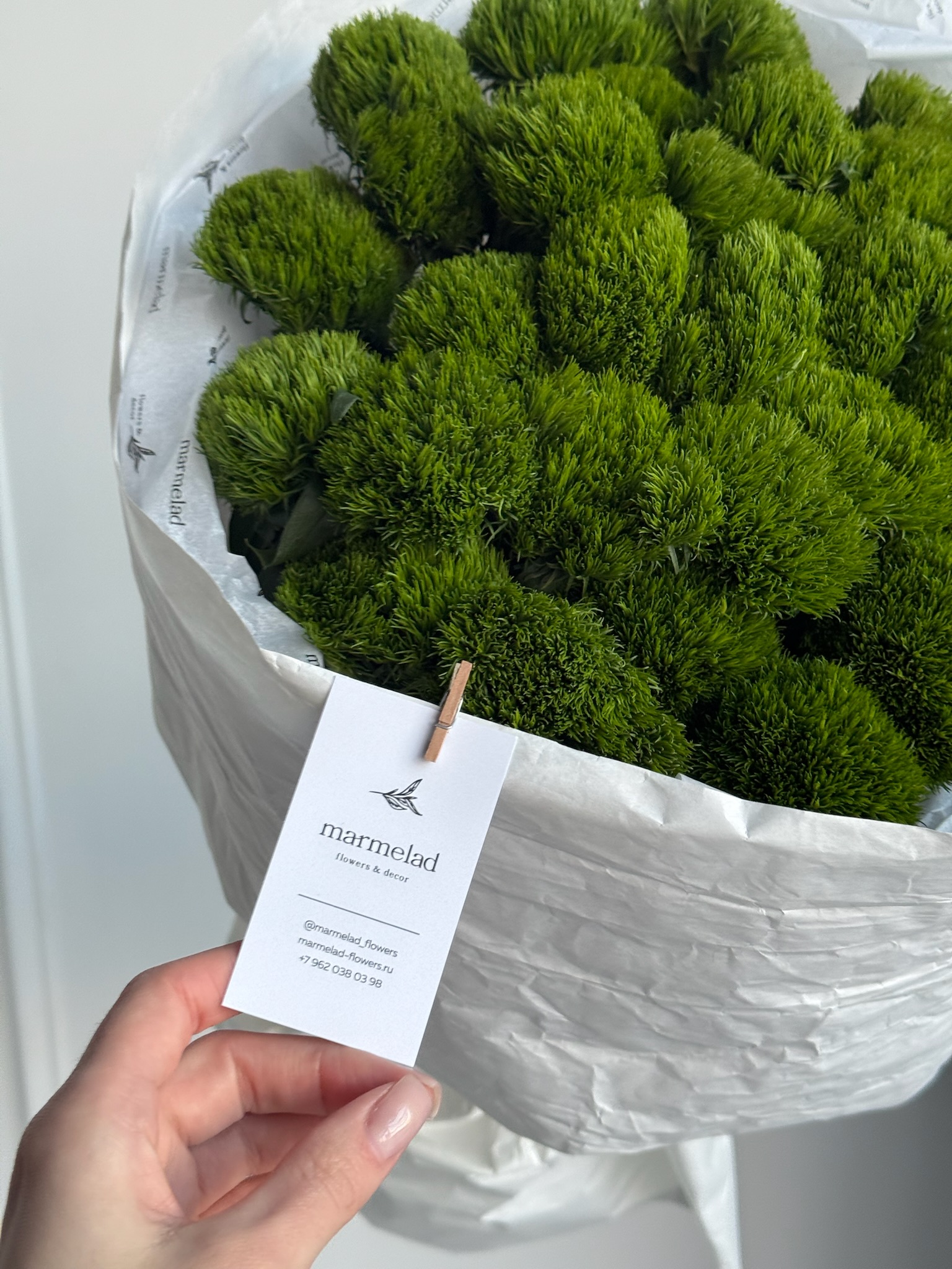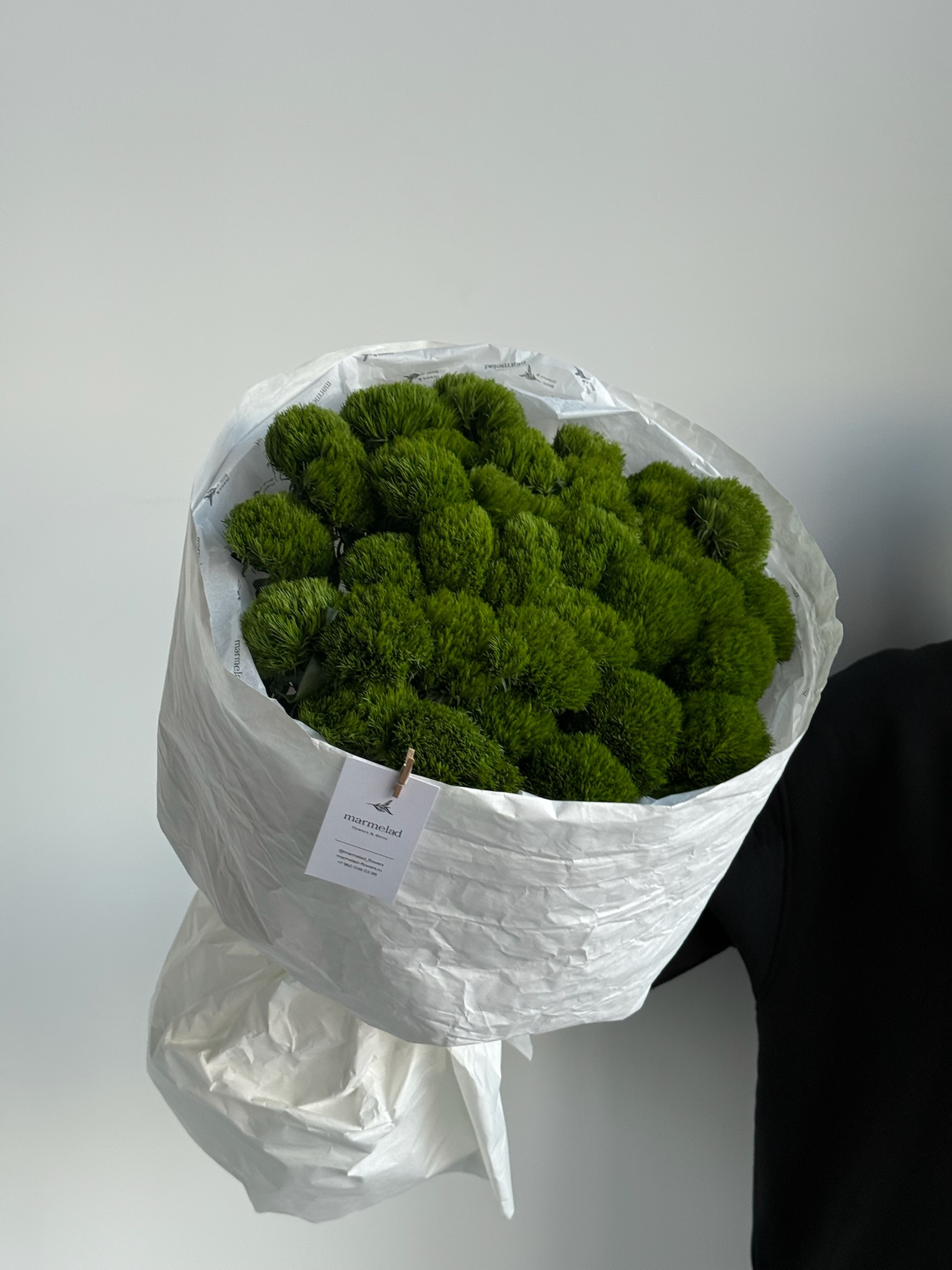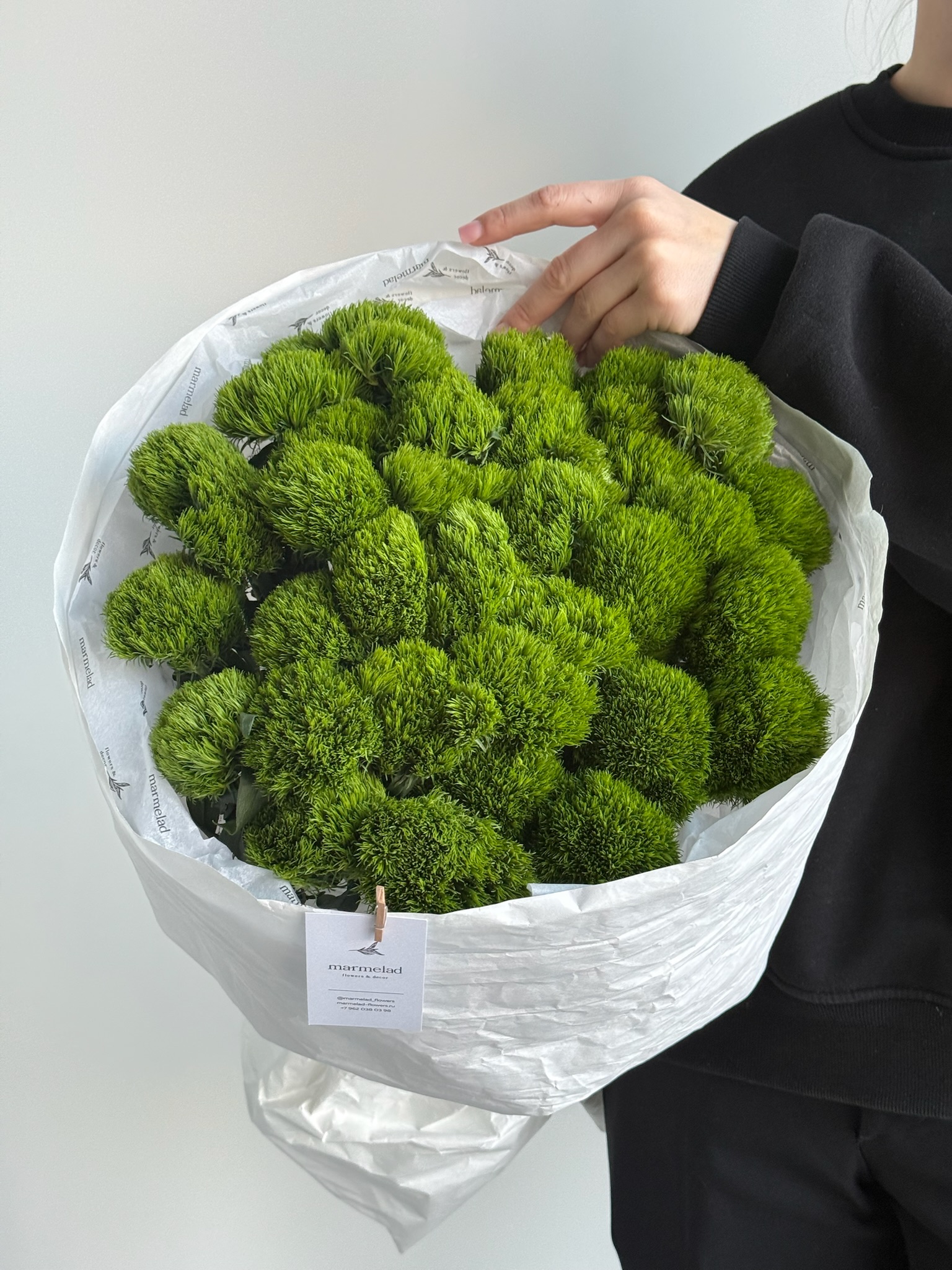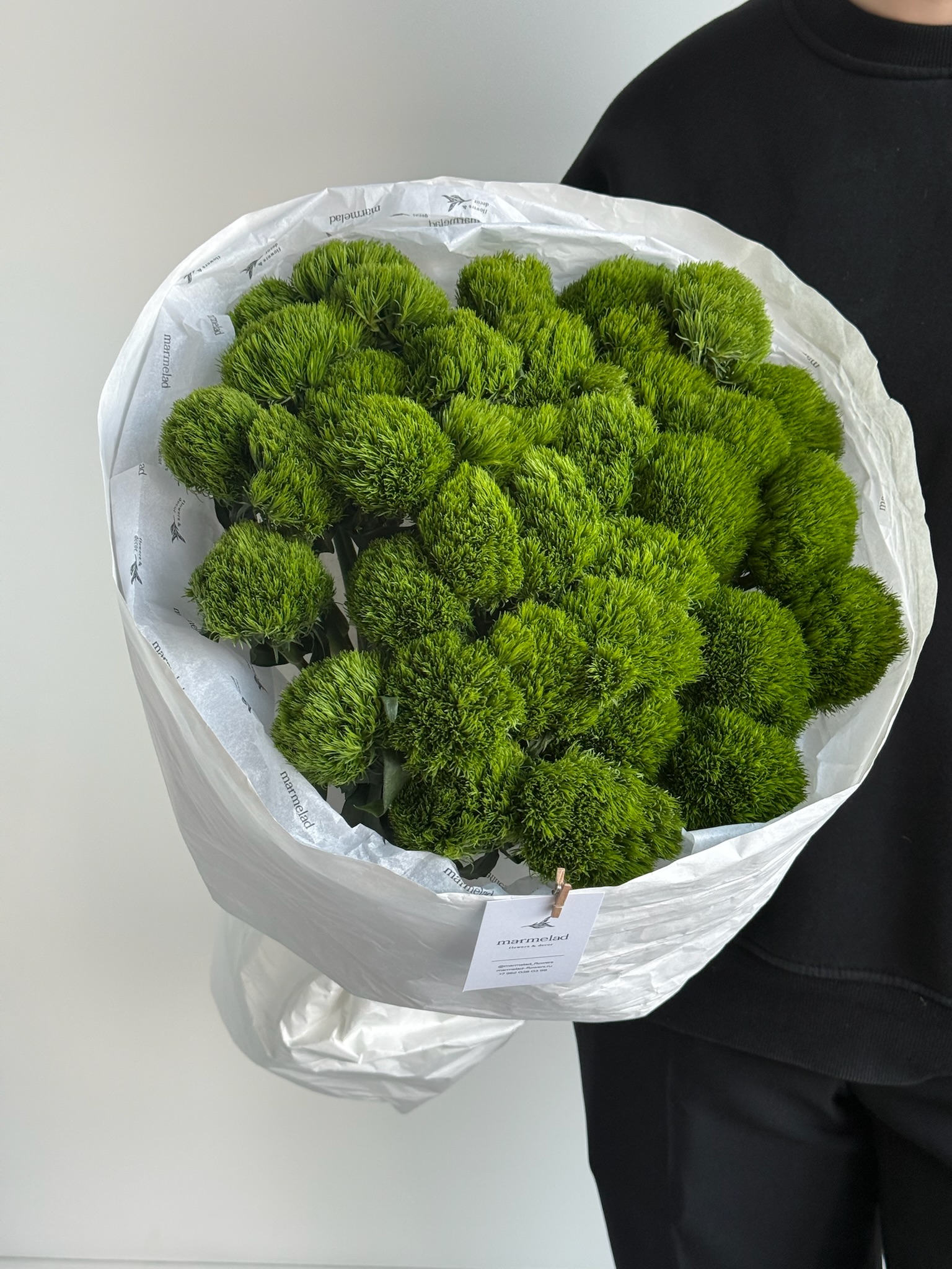 Моно букет из диантусов сорта Грин трик 35 шт