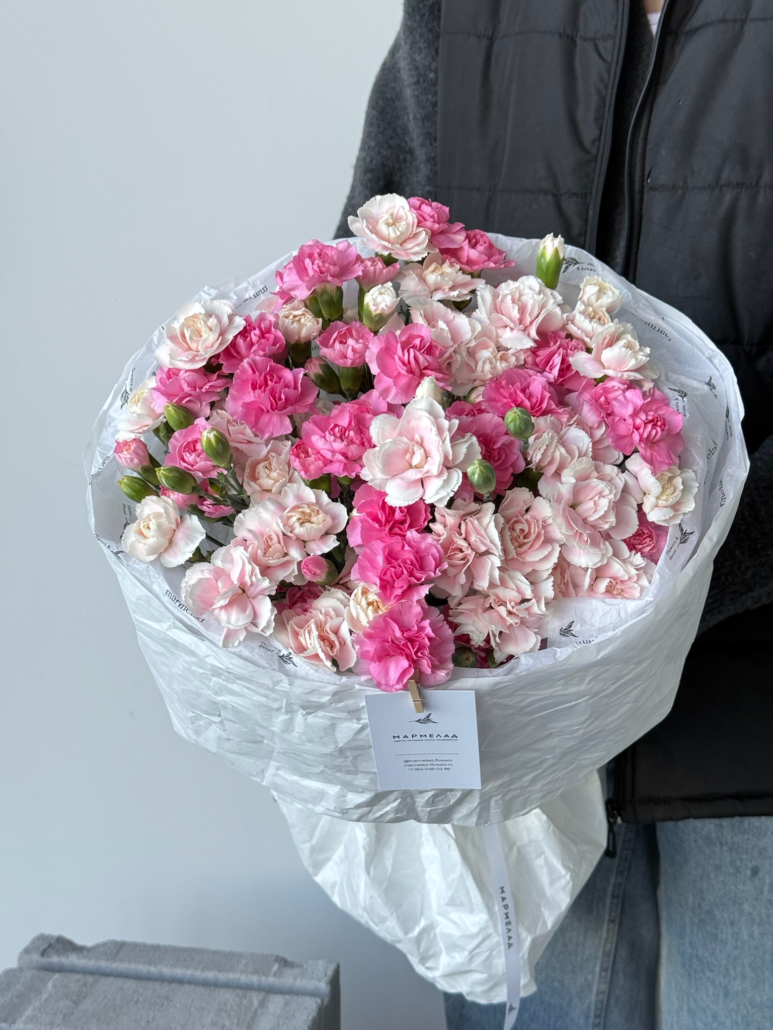 Моно букет из кустовых диантусов в розовом оттенке 21 шт