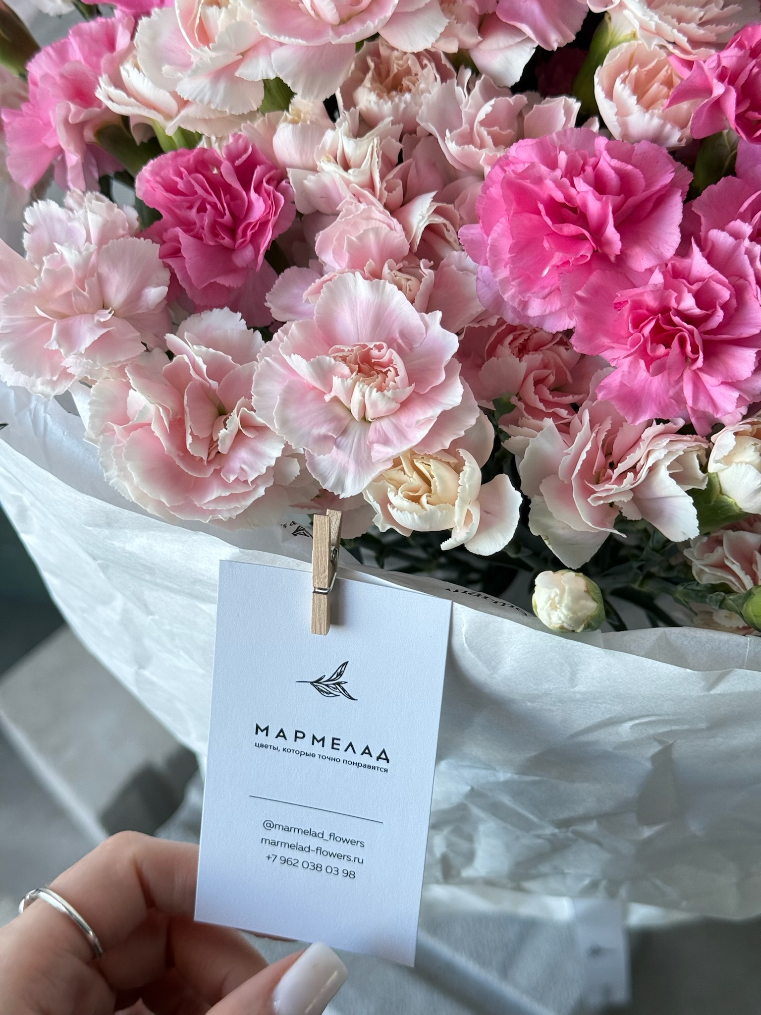 Мы пришлем вам фото готового букета, чтобы вы были уверены в своем заказе. Мы всегда стараемся чтобы фото не искажало размер и цвет