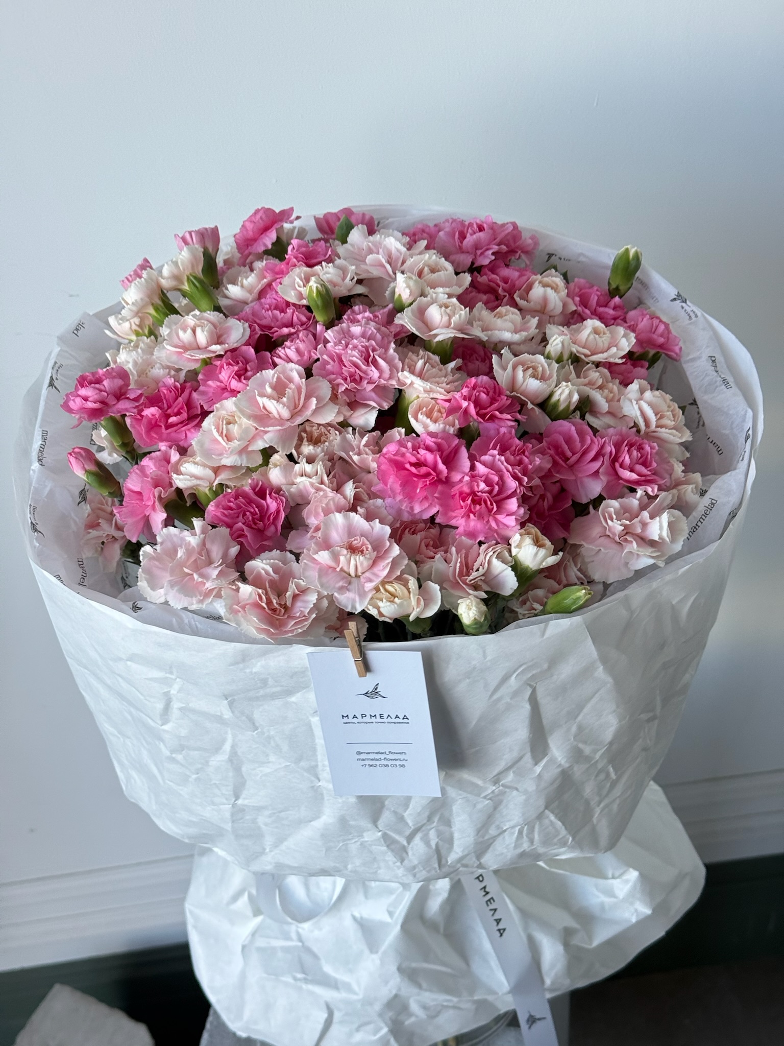 Мы пришлем вам фото готового букета, чтобы вы были уверены в своем заказе. Мы всегда стараемся чтобы фото не искажало размер и цвет