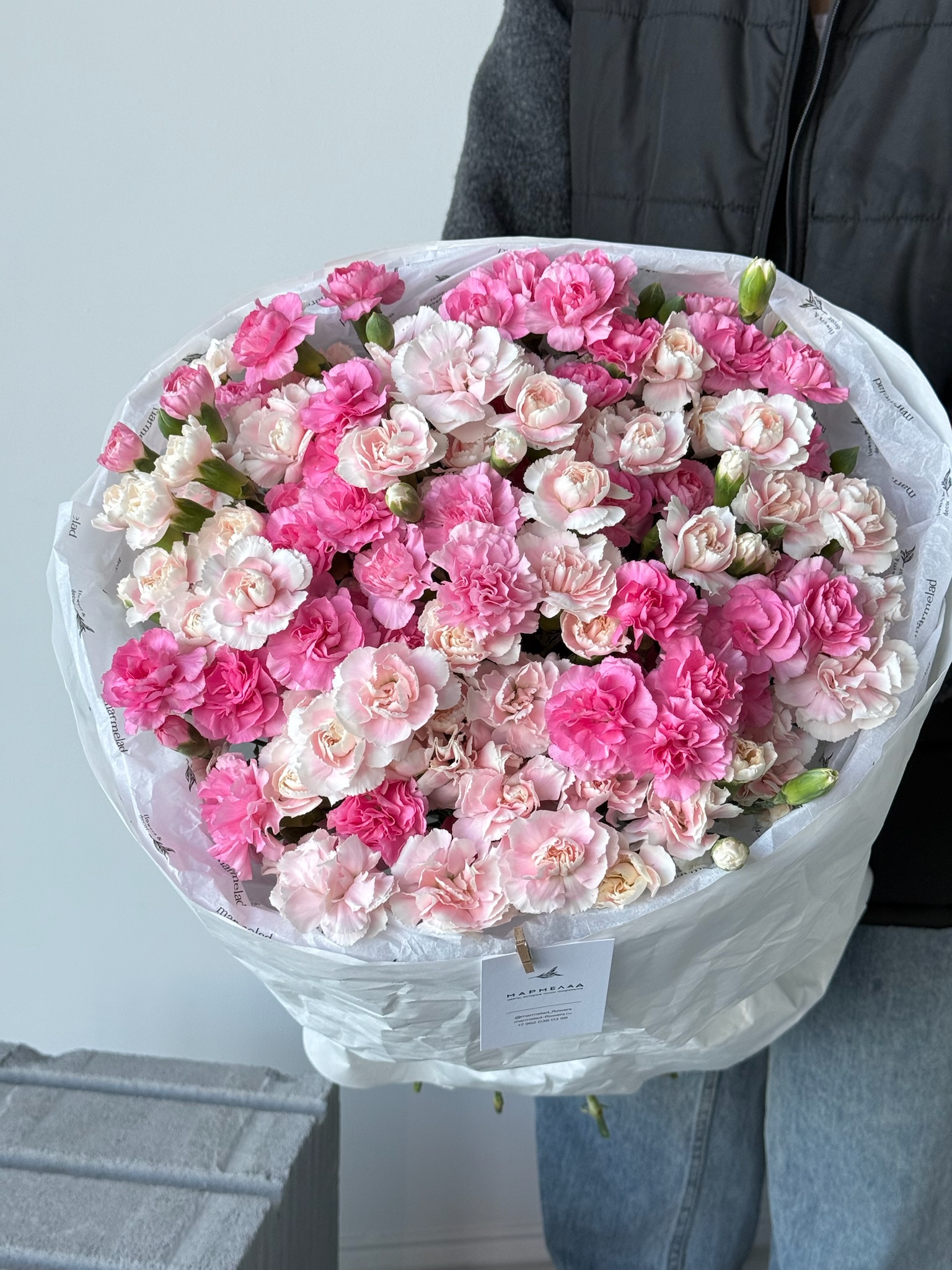 Моно букет из кустовых диантусов в розовом оттенке 35 шт