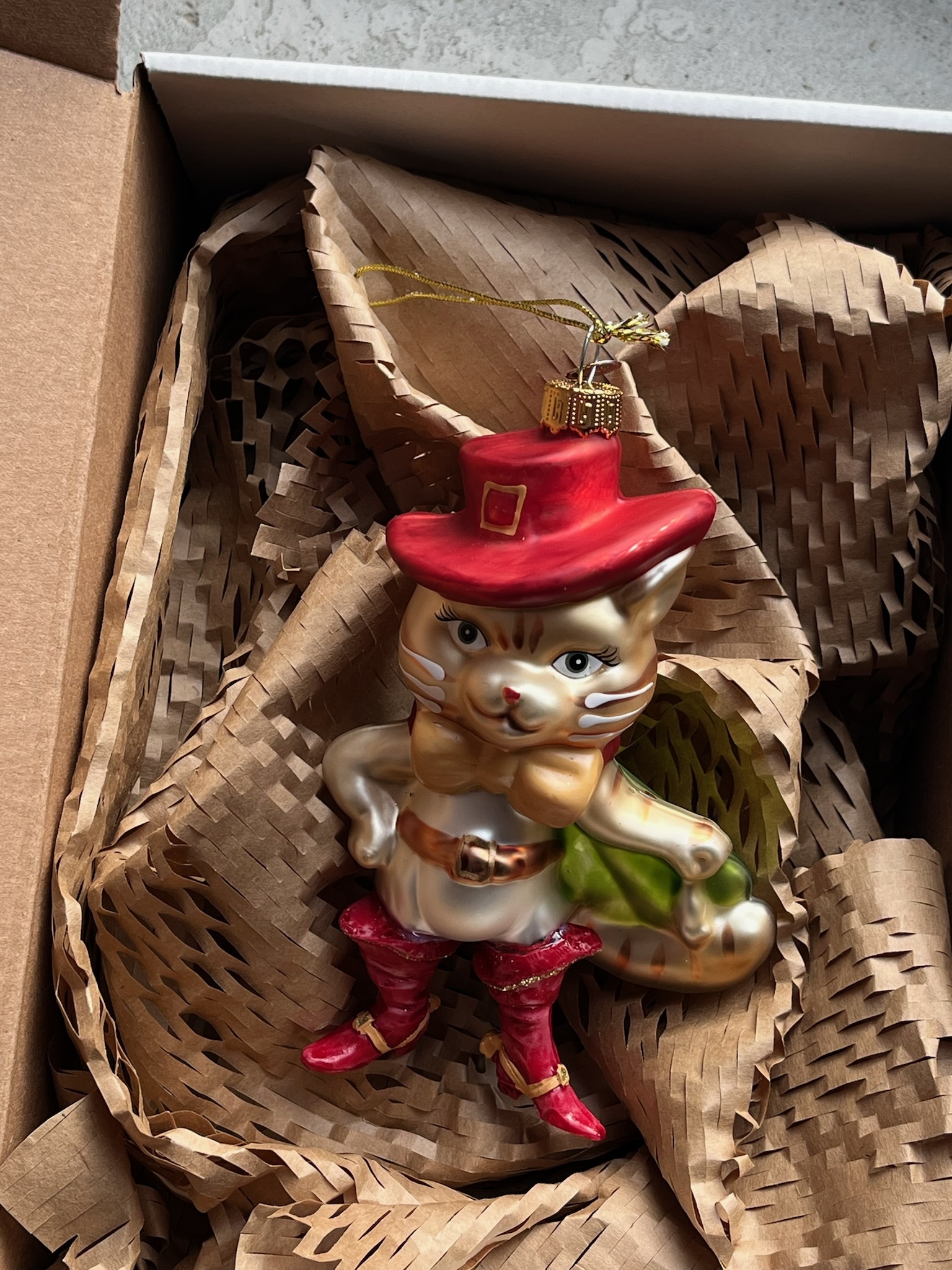 Новогодняя игрушка Кот в сапогах-стекло