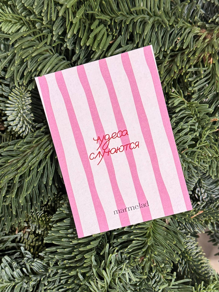Новогодняя открытка 7,5*10см - Чудеса случаются полосатая