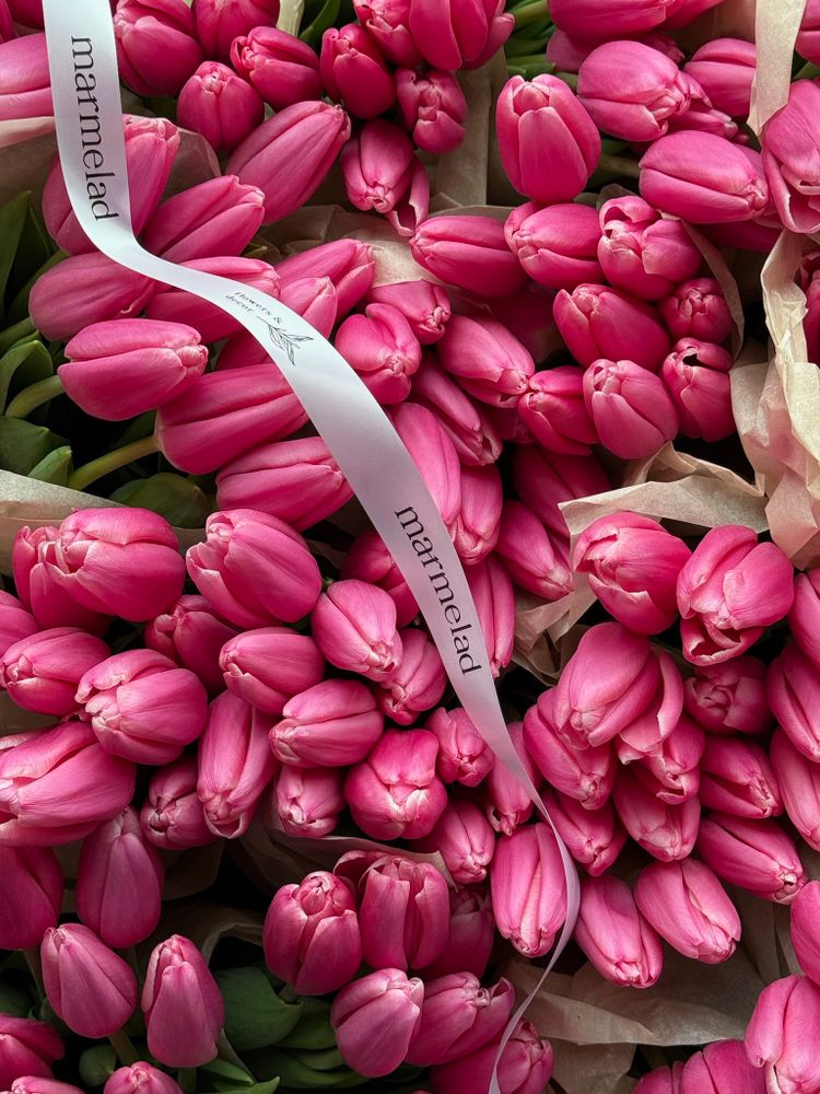 Охапка тюльпаны классика - ярко-розовый цвет 25 шт