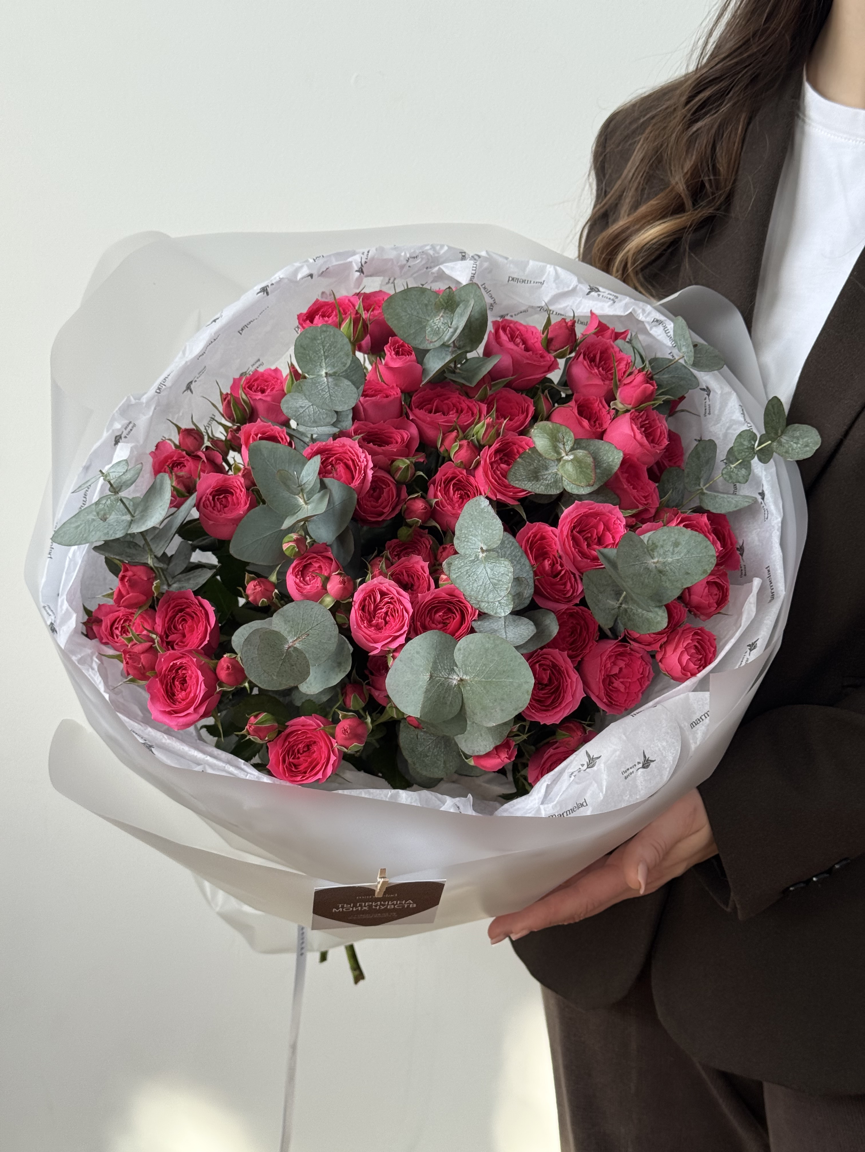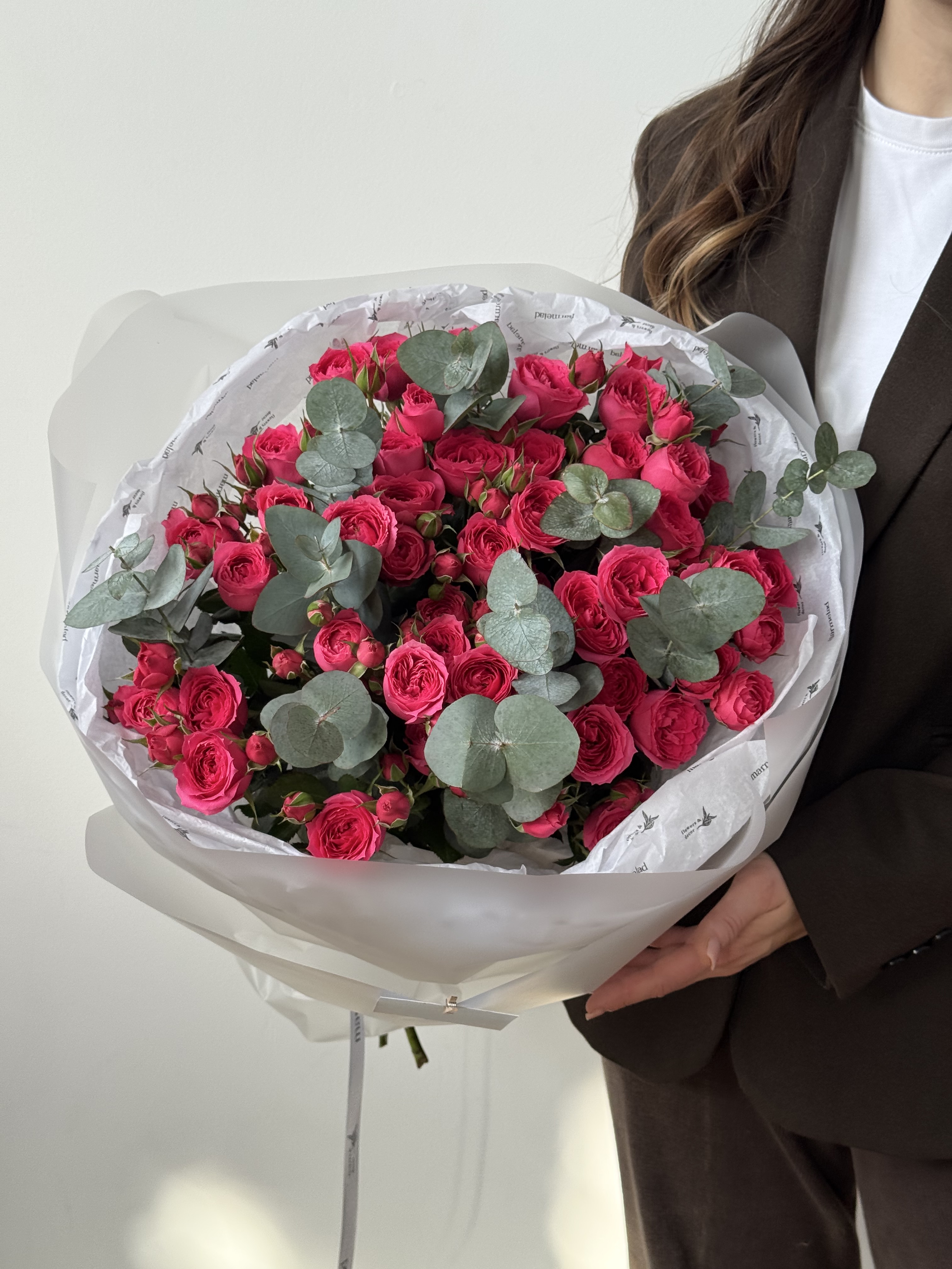 предзаказ - моно букет из кустовых роз и эвкалипта