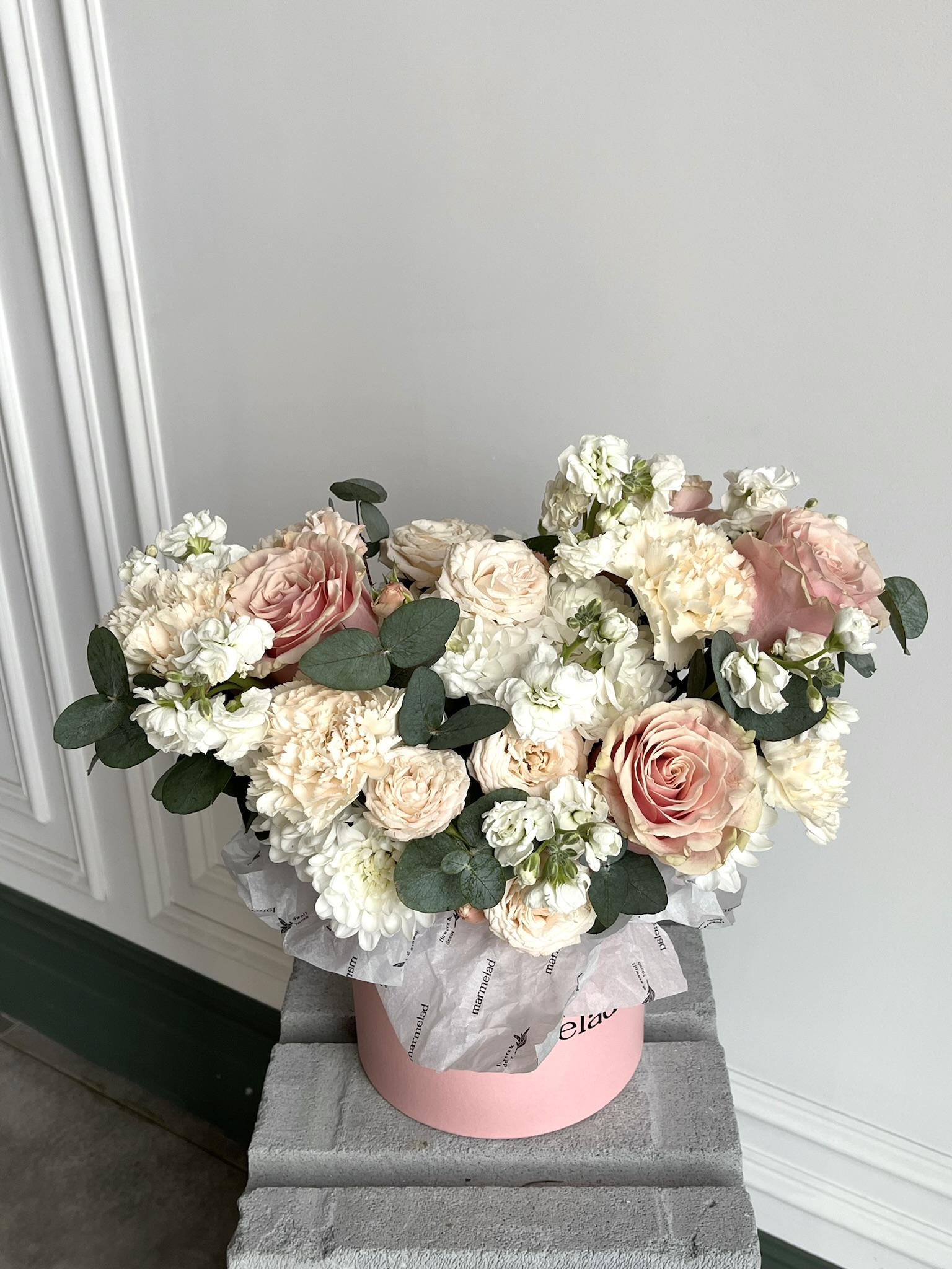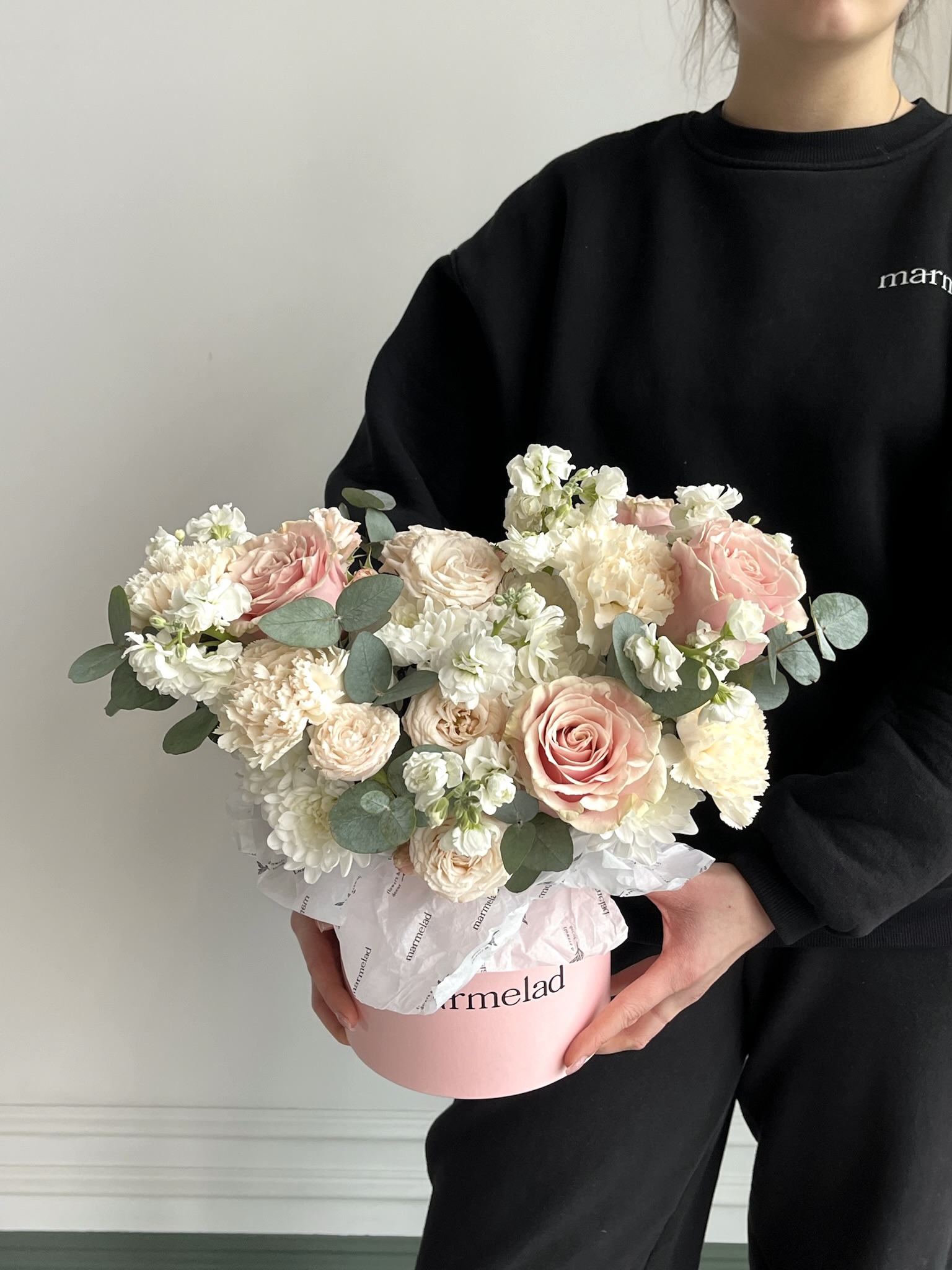 предзаказ - цветочная коробка в кремовых оттенках размер S