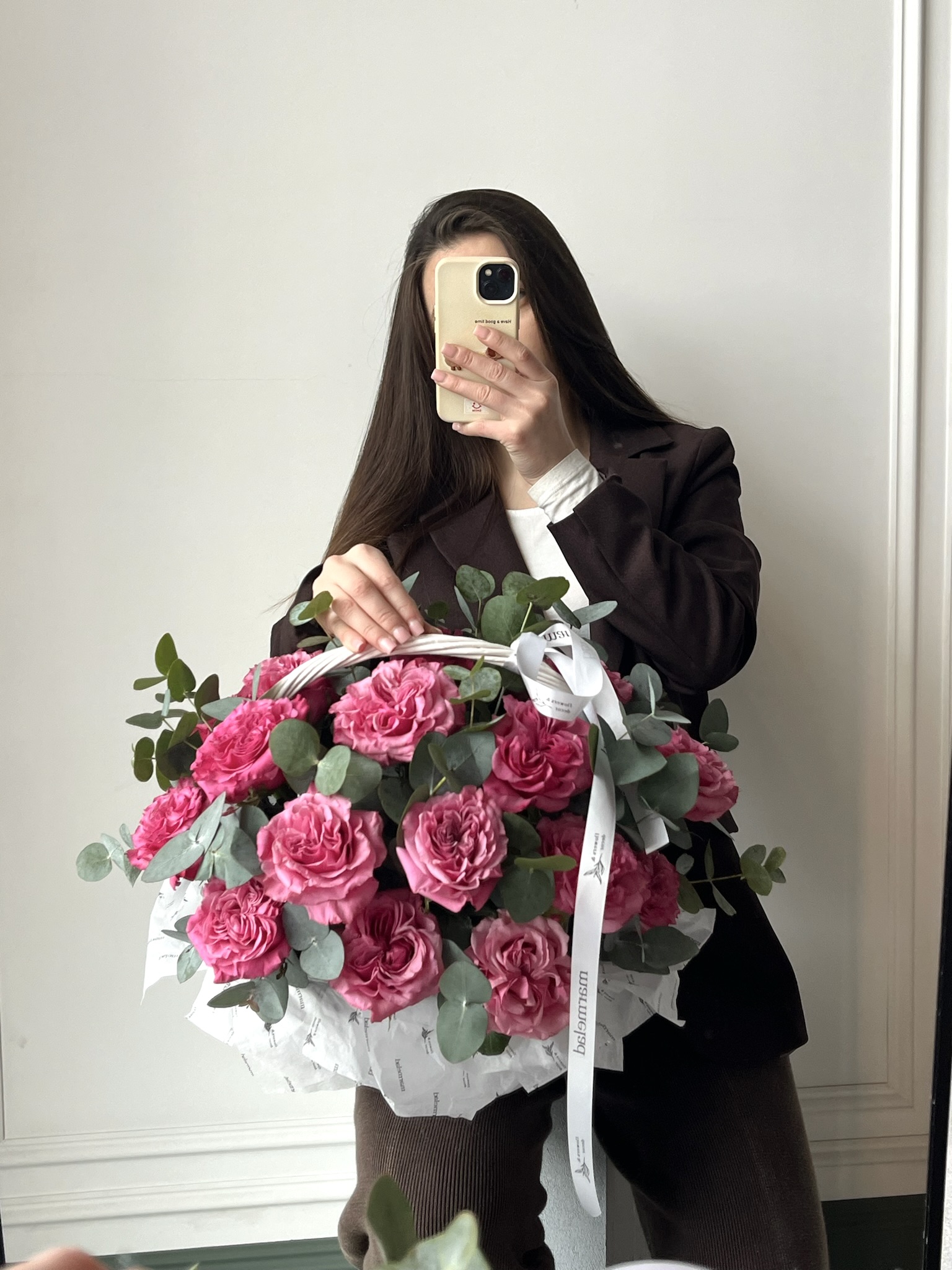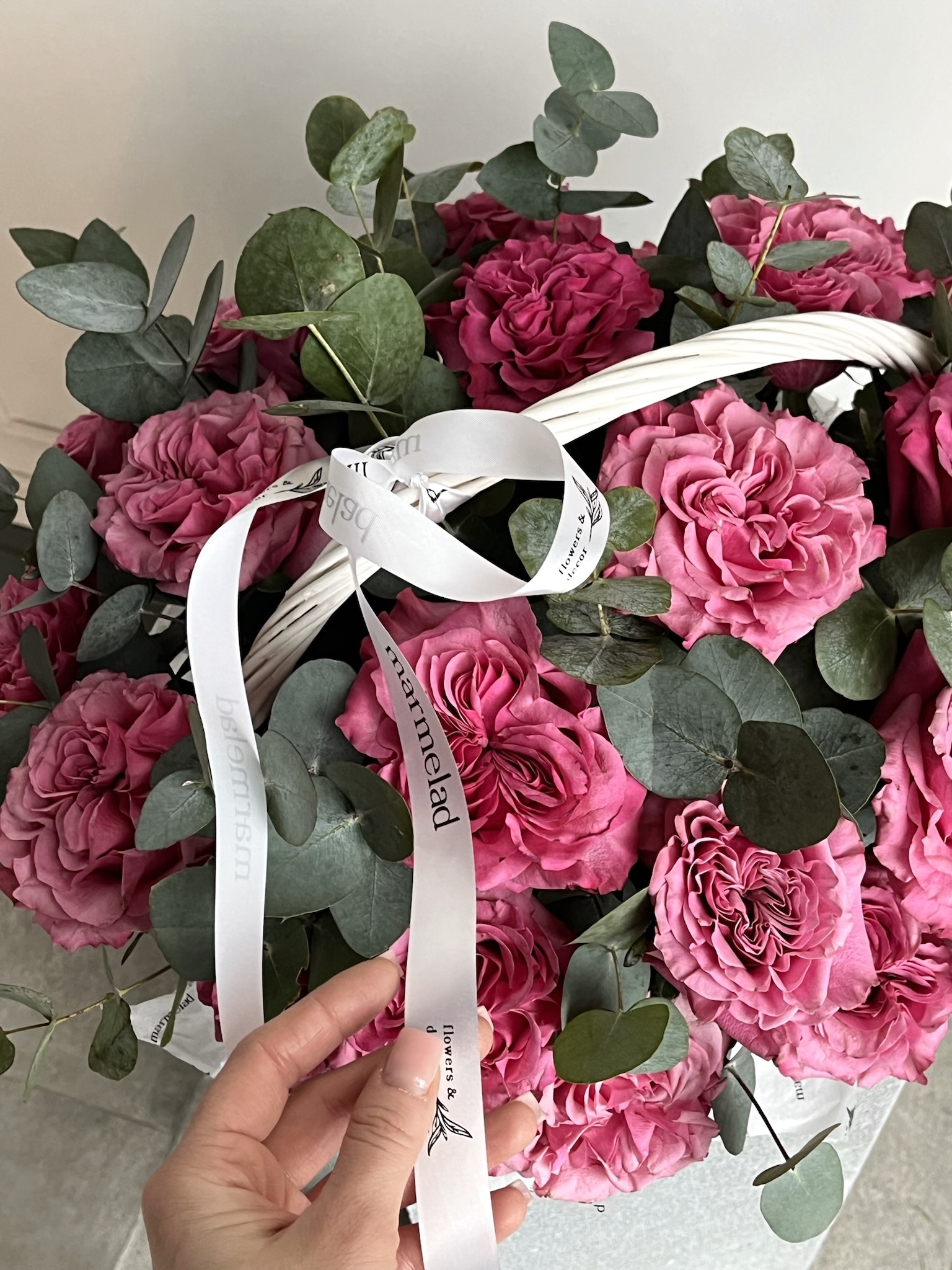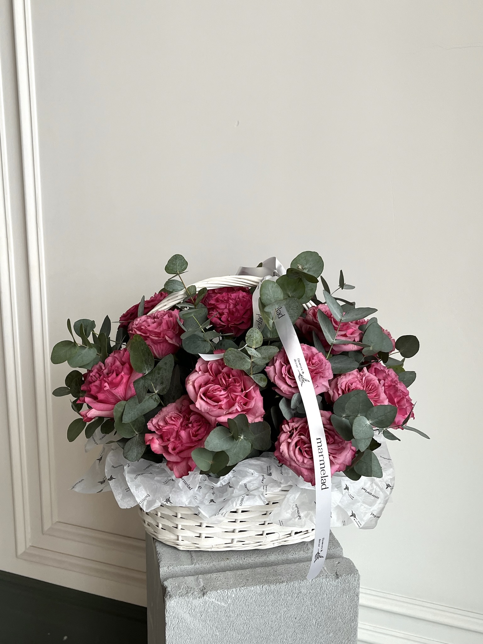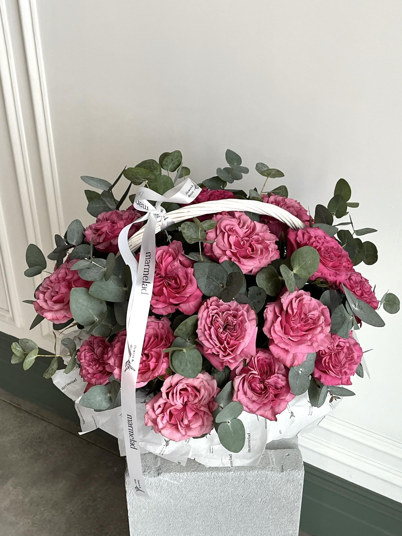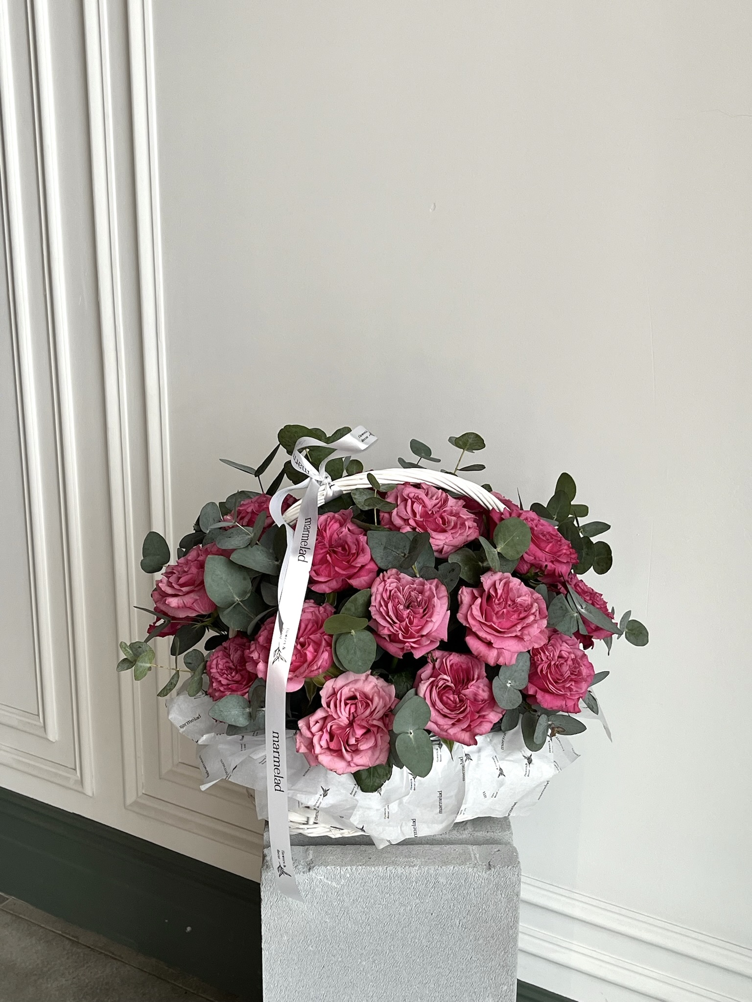 предзаказ - цветочная корзина из роз Кантри и эвкалипта размер M