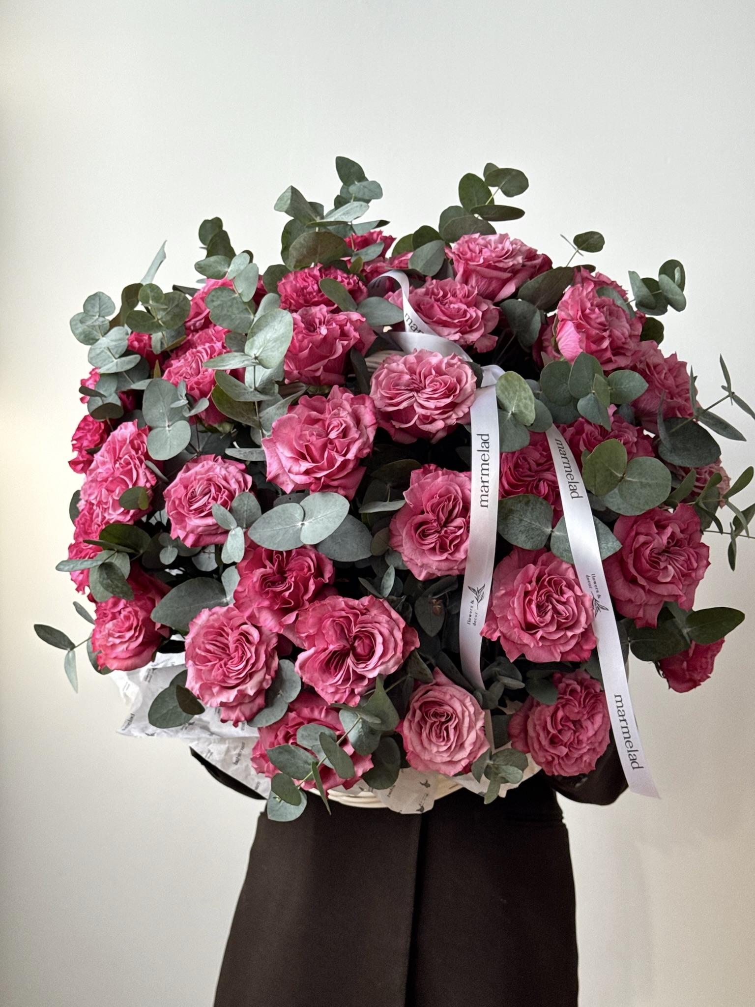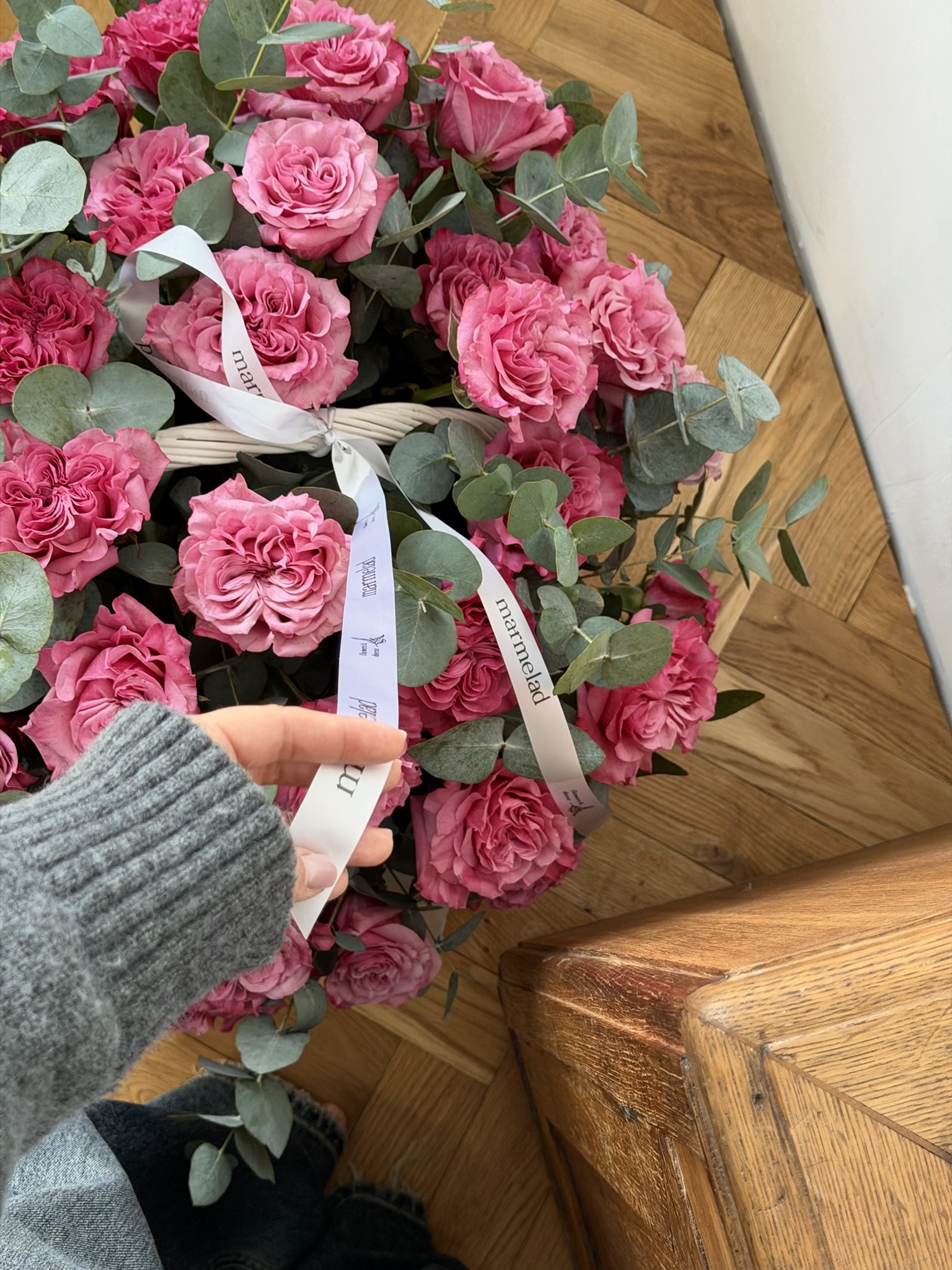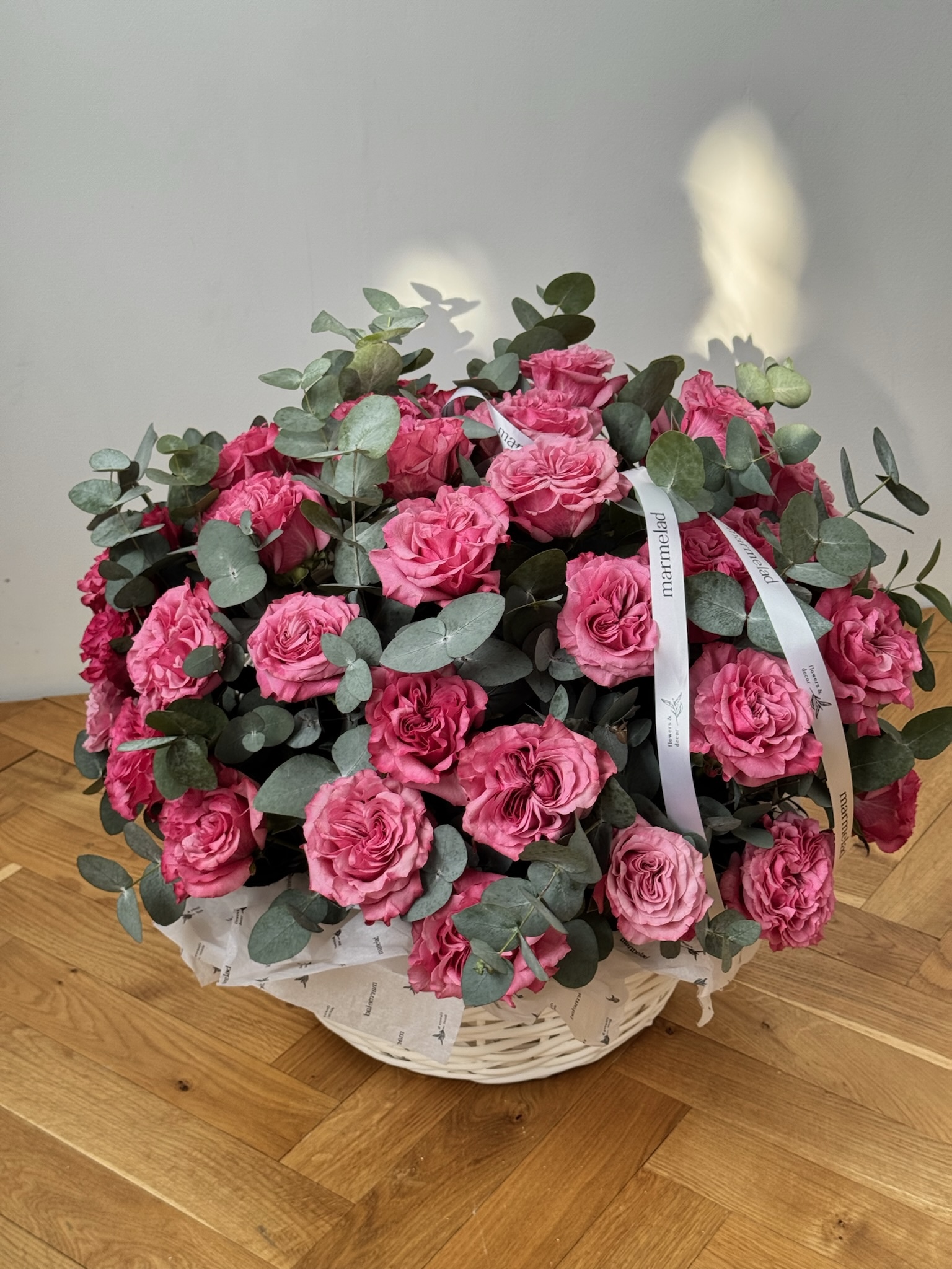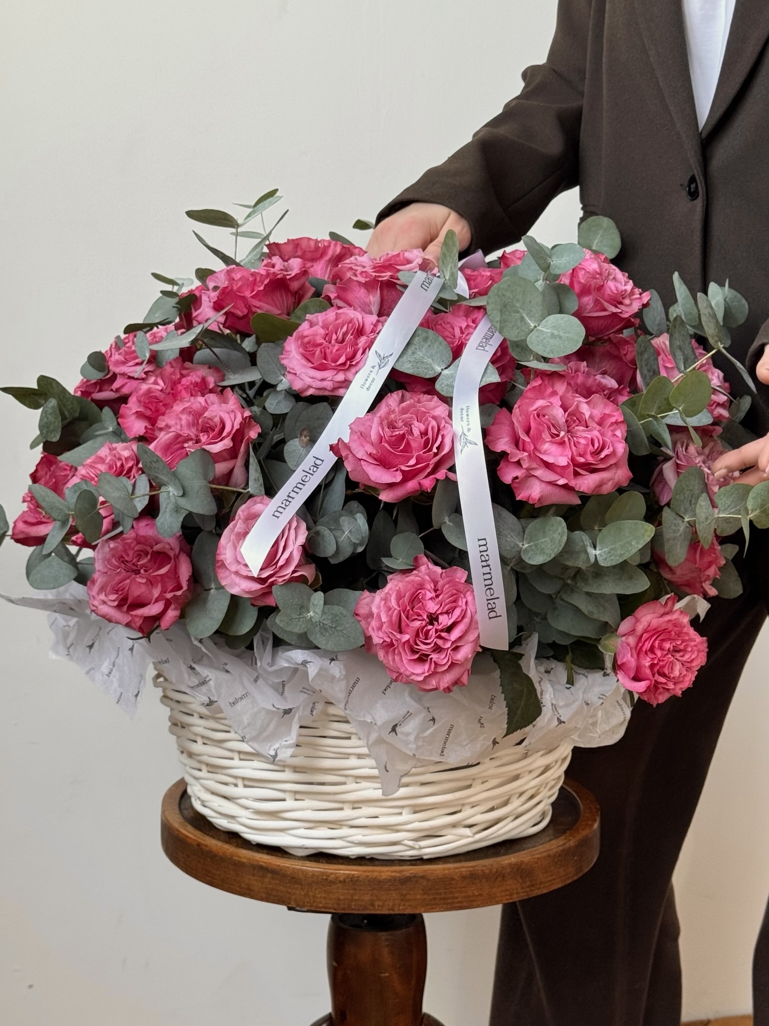 предзаказ - цветочная корзина из роз Кантри и эвкалипта размер XL