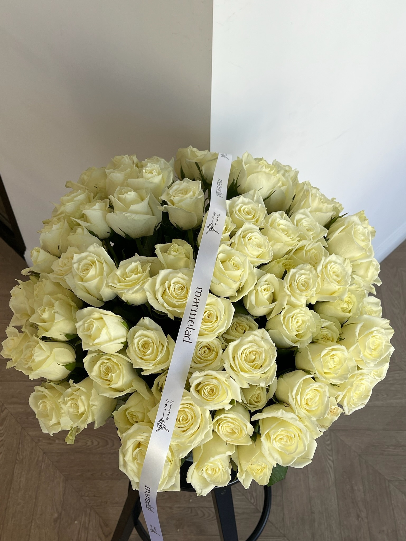 Каждый букет мы бережно доставляем в специальном транспортировочном боксе, а так же используем мобильные вазы с водой.