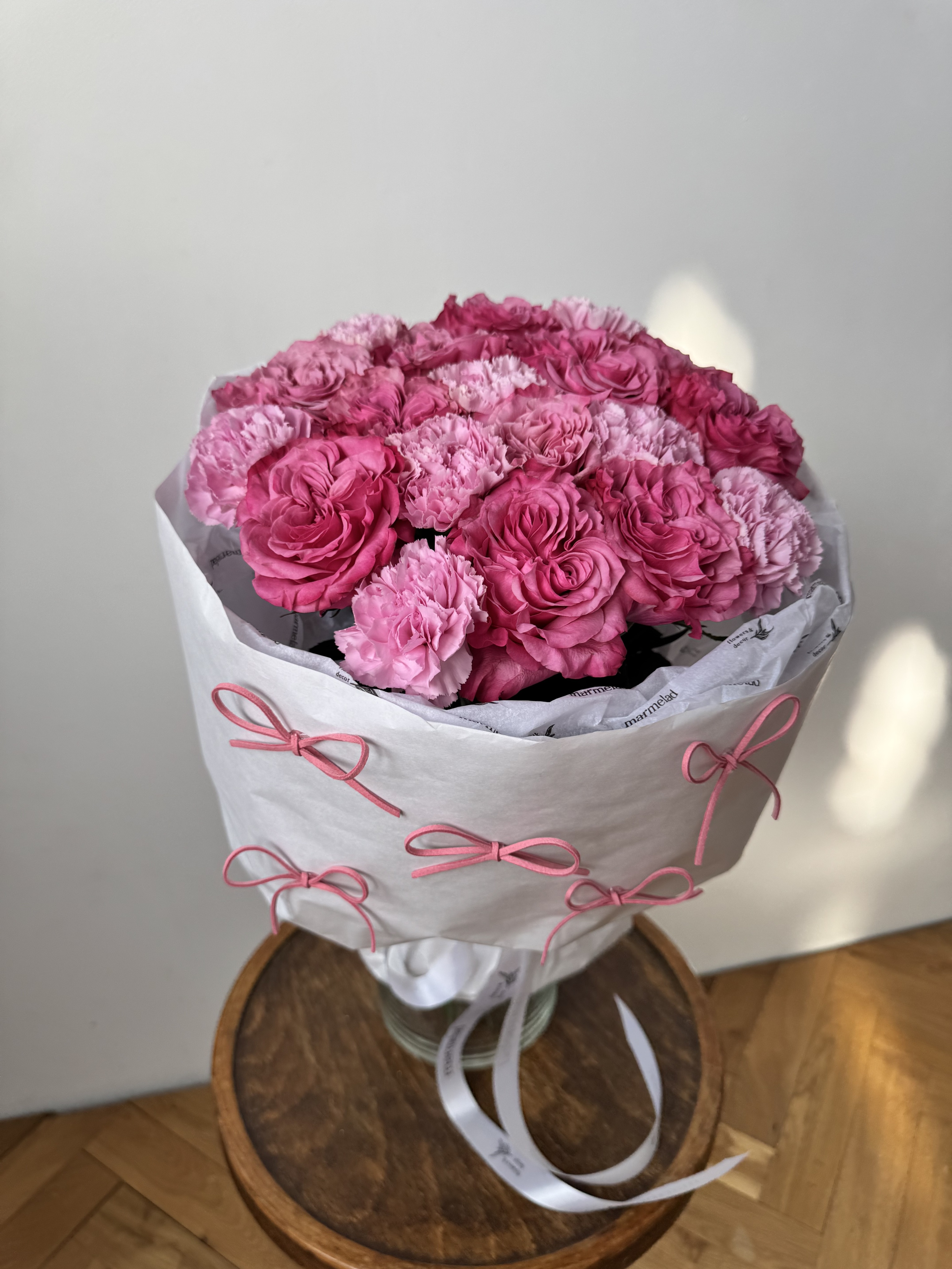 Мы пришлем вам фото готового букета, чтобы вы были уверены в своем заказе. Мы всегда стараемся чтобы фото не искажало размер и цвет