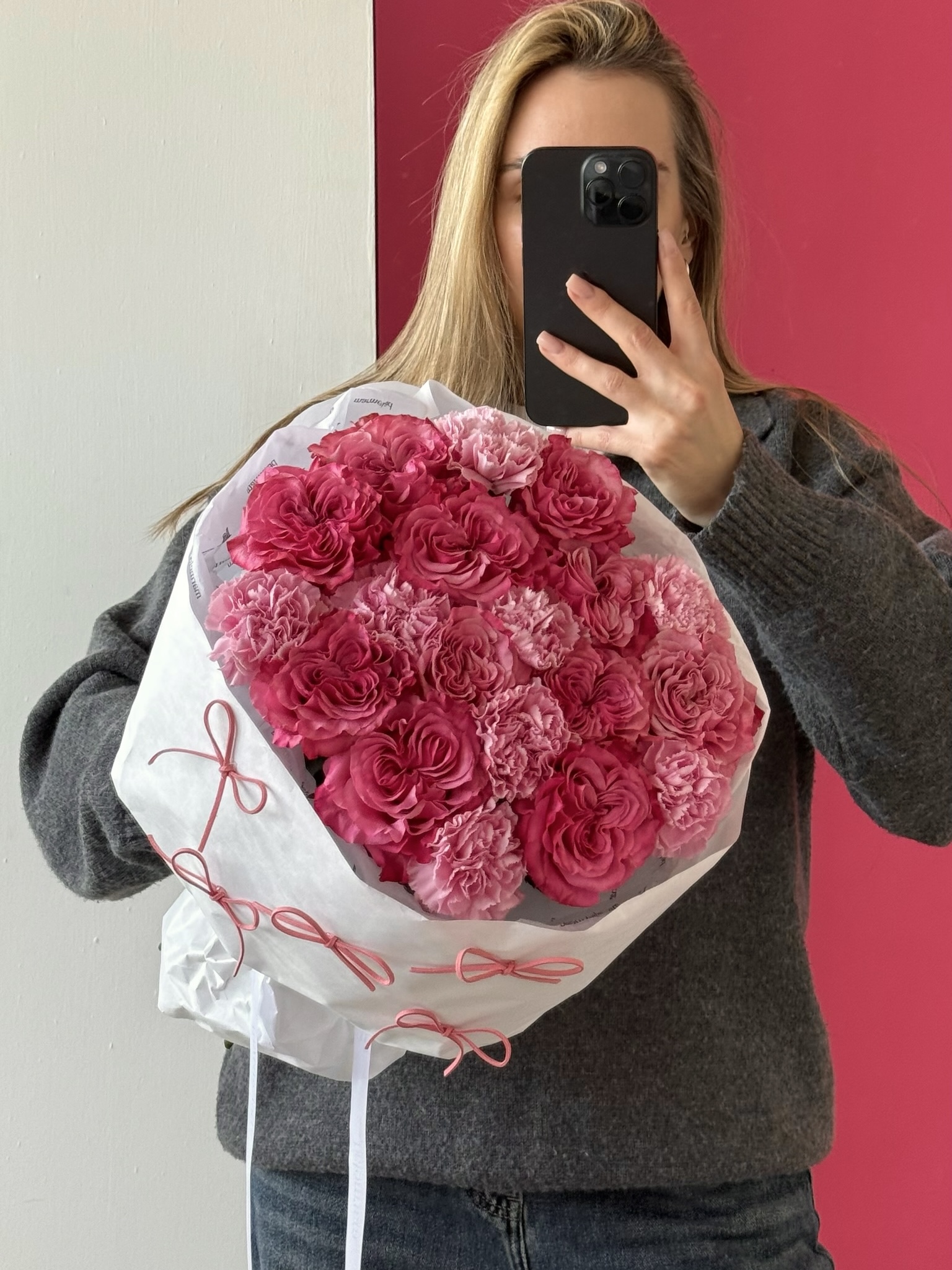 • Вы можете быть уверены в заказе, ведь по вашему желанию мы пришлем вам фото букета до и фото с доставки, где вы сможете увидеть эмоции близких вам людей, для этого просто напишите нам в WhatsApp