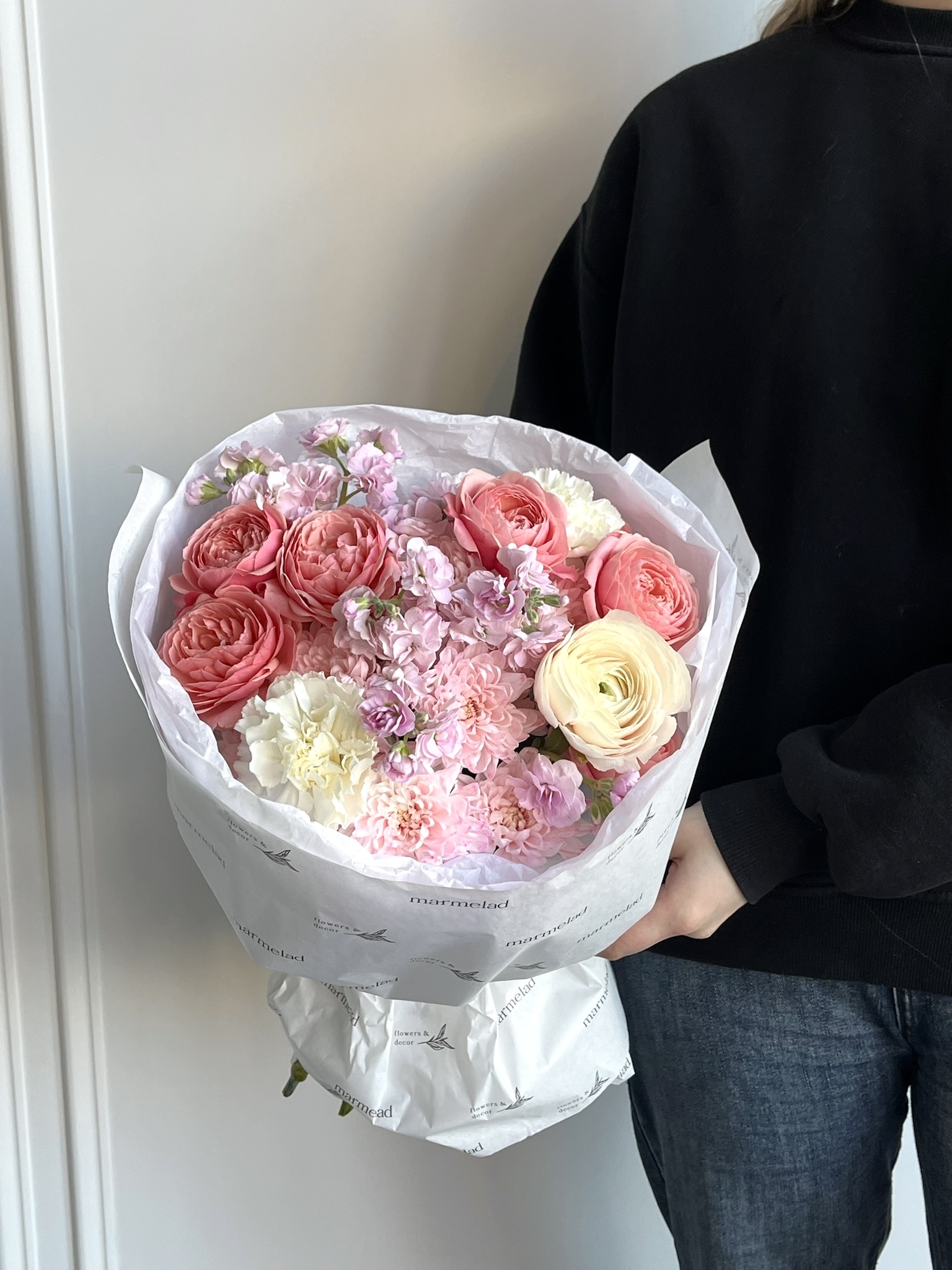 • 2 раза в неделю мы получаем свежие поставки цветов напрямую с голландских аукционов, так как очень трепетно и внимательно относимся к качеству.