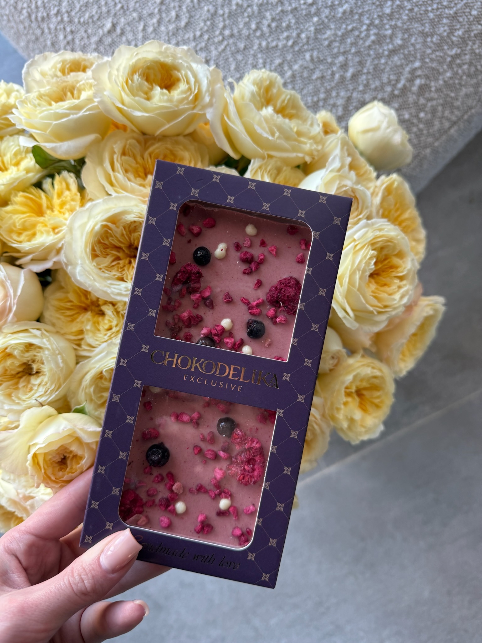 Шоколад ручной работы с малиной, клубникой и смородиной